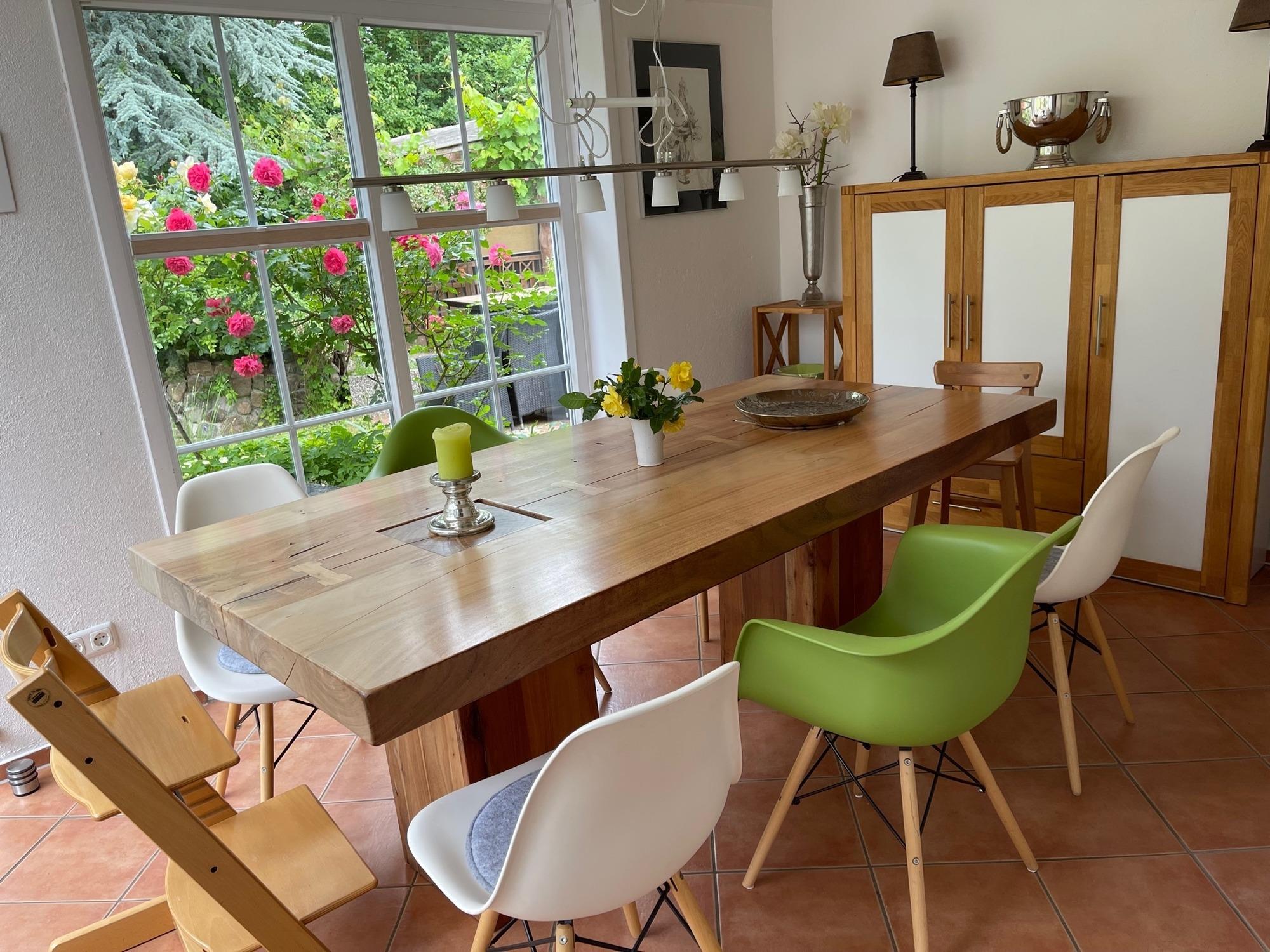 Im großen Garten können Ihre Kinder in einem Gartenhaus toben, schaukeln oder Tischtennis spielen. Auch ein Tischkicker ist vorhanden. Die überdachte Terrasse lädt zum Grillen ein. Hier können Sie auch Ihre Fahrräder abstellen.