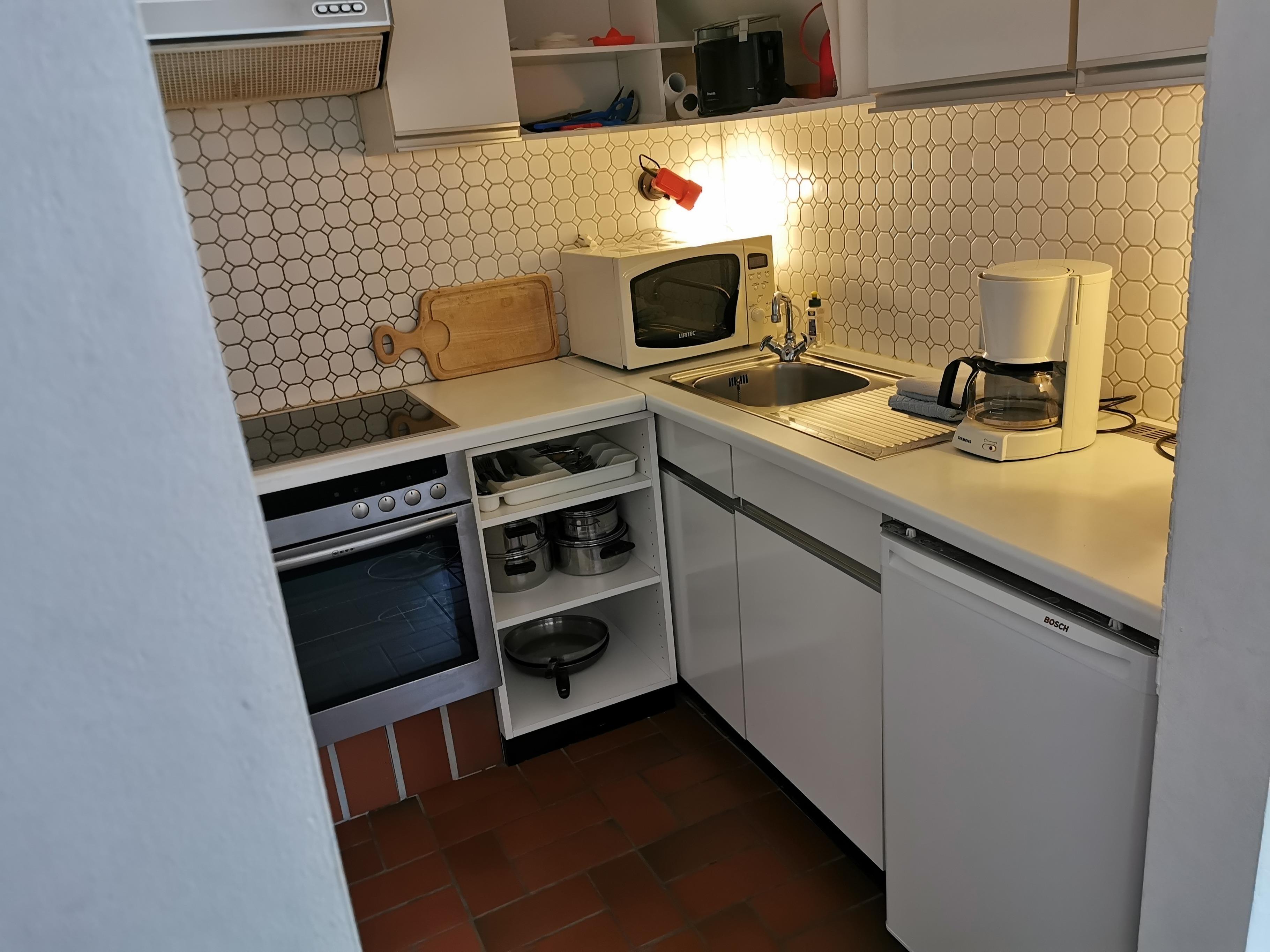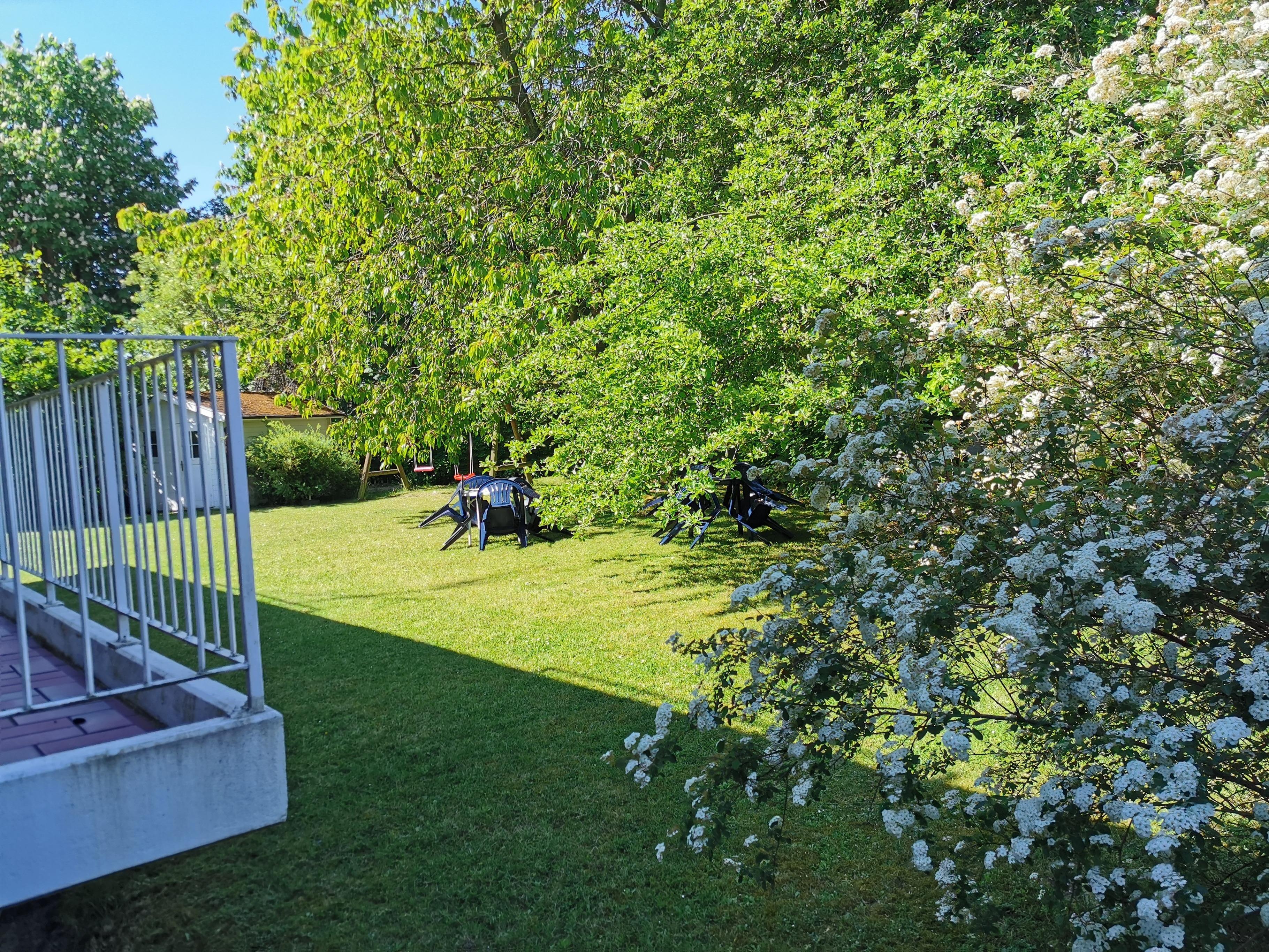 Sie können sich auch bei unbeständigem Wetter auf einem der beiden Balkone aufhalten, da er überdacht ist. Vom größeren Balkon haben Sie einen Blick in den Garten mit Spielwiese, Sandkasten und Schaukel. Die Wohnung ist mit einem blau/rot gemusterten Teppichboden ausgelegt. Die Wände sind weiß angelegt. Vom Essplatz können Sie über den Balkon in die Obstbäume und den Garten schauen. Das Kinderzimmer ist mit 2 Einzelbetten ausgestattet. Ein Kinderbett kann zugestellt werden. Im Schlafzimmer befindet sich ein 1,80 m breites Doppelbett. In der Küche befinden sich auch ein E-Herd mit Backofen und Ceranfeld und ein Kühlschrank mit TK-Fach. Auf Wunsch erhalten Sie Hochstuhl und Mikrowelle ohne Aufpreis. WLAN ist kostenlos verfügbar. Das Wohnzimmer ist auch mit einer großen, blauen Doppelschlafcouch möbliert. Der ausziehbare Tisch bietet einer Gruppe von max. 6 Personen Platz. Waschmaschine und Trockner im Waschraum werden über einen Münzautomaten abgerechnet. Unseren Garten können Sie zum Spielen, Grillen und Entspannen nutzen. Sandkasten und Schaukelgerät, Liegestühle und sonstige Gartenmöbel stehen Ihnen zur Verfügung. Ein Haustier (Hund) ist in der Nebensaison erlaubt, im Souterrain in der Hochsaison auch auf Anfrage.