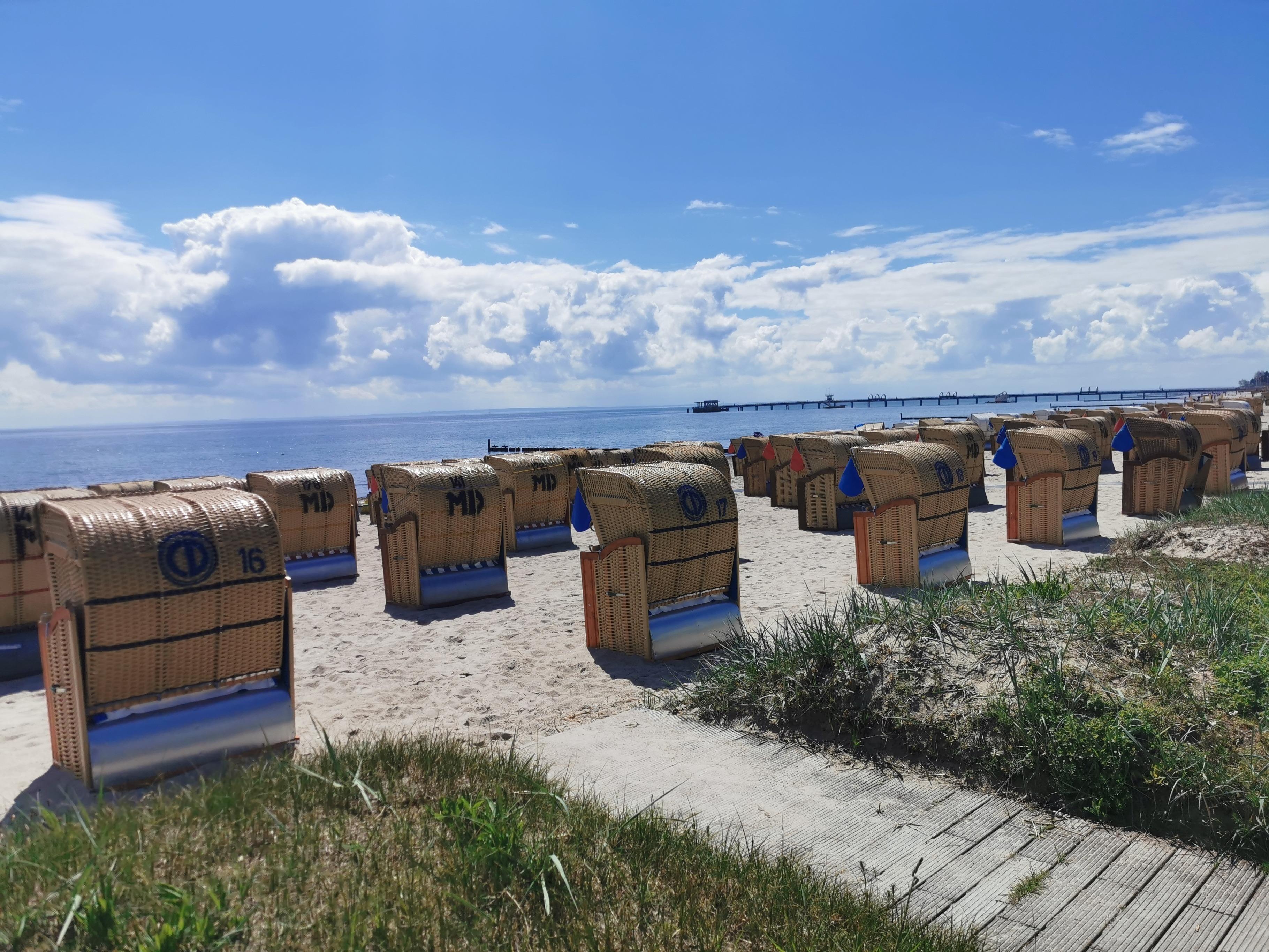 Die Dreizimmerwohnung (48 qm) W8 mit 2 Balkonen, liegt nach Südwesten im 1. OG ca. 500 m vom Meer entfernt.