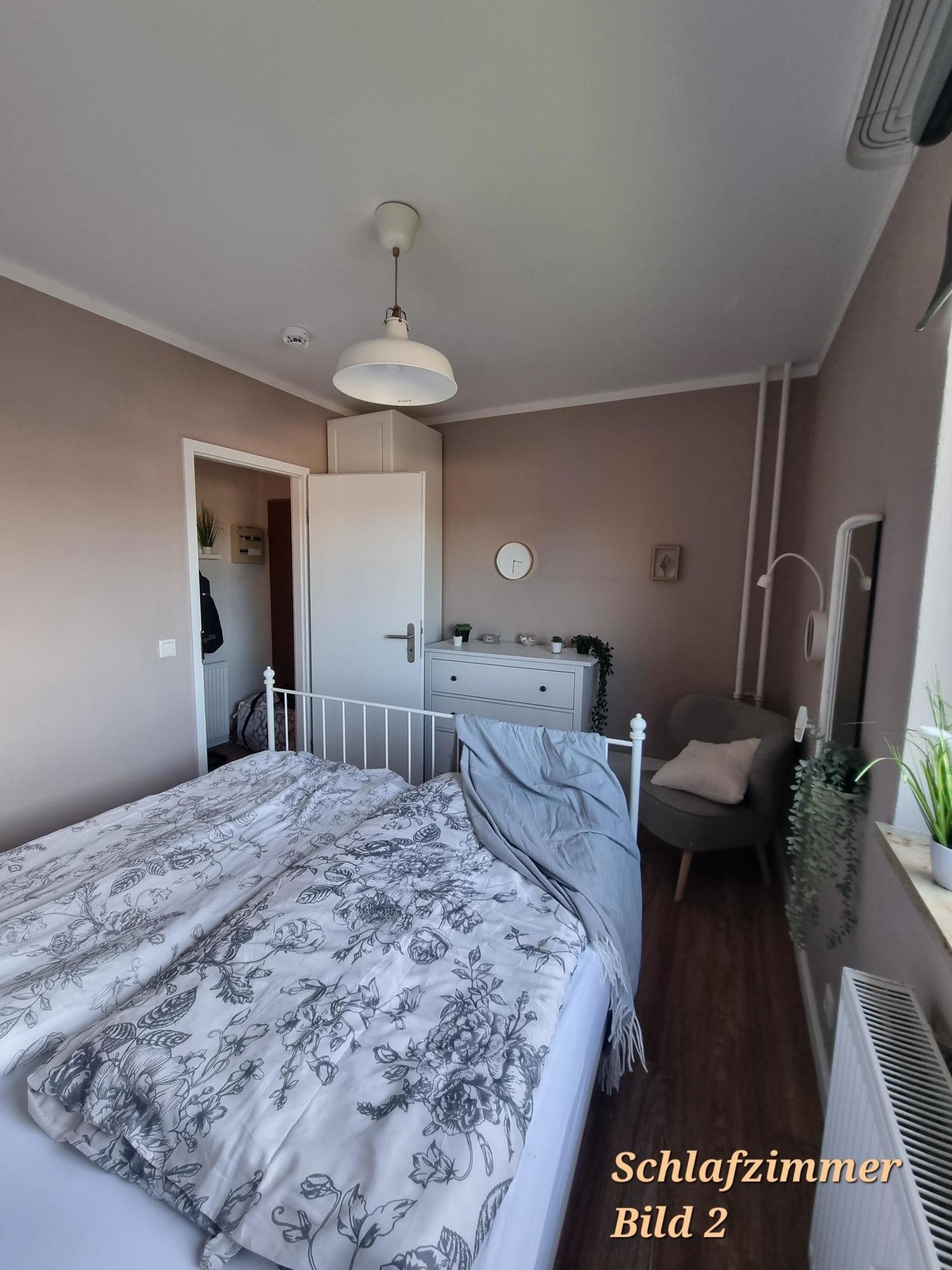 Das separate Schlafzimmer mit Doppelbett, Kommode und einem kl. Kleiderschrank bietet einen zusätzlichen Rückzugsort.