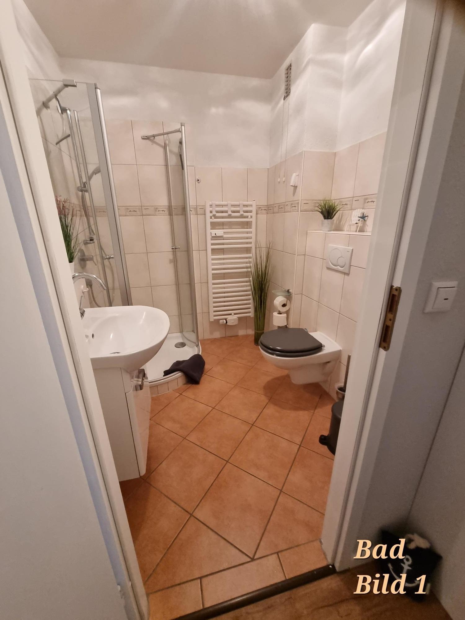 Außerdem verfügt das Appartement über ein schönes Badezimmer mit Dusche und WC.