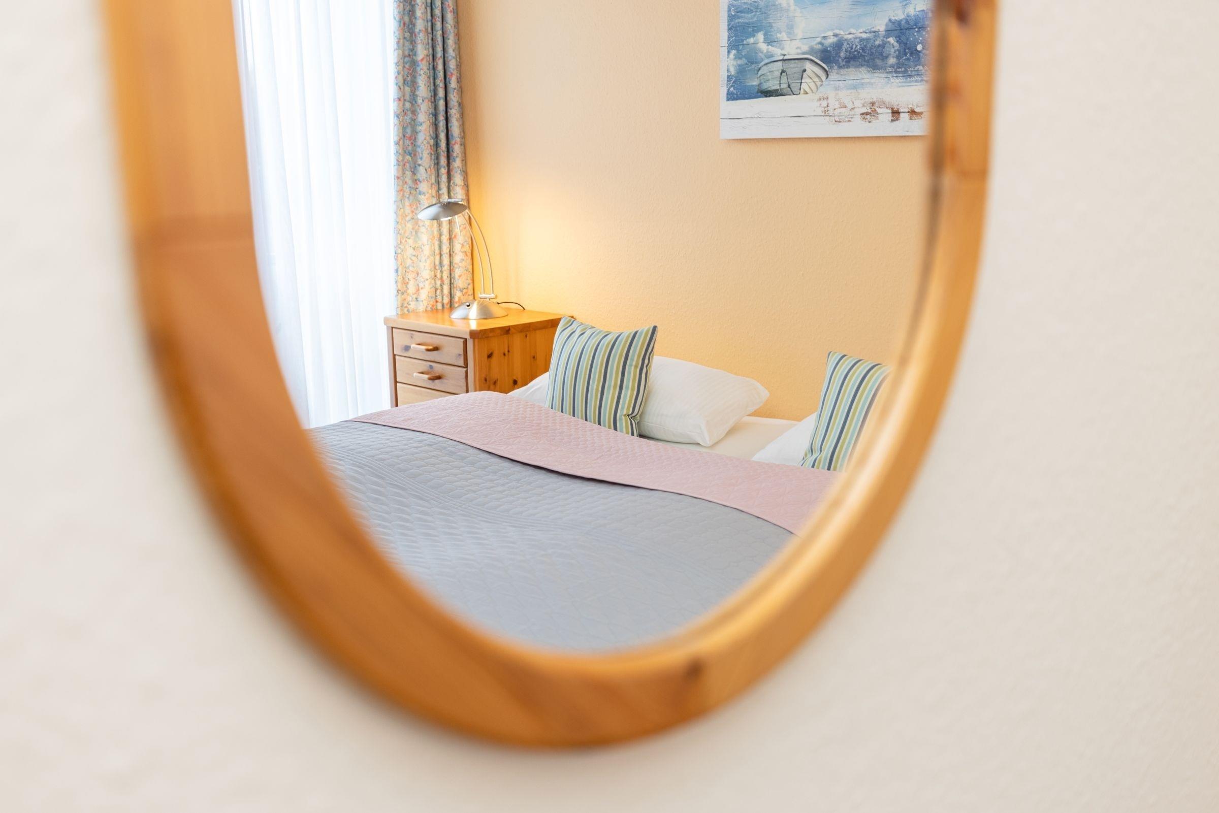 Ankommen und Wohlfühlen. Über ein paar Stufen erreichen Sie die gepflegte Ferienunterkunft im Wohnpark Kaiserhof – nur rund 65 Meter vom Ostseestrand entfernt. Ein kuscheliges Sofa sowie zwei bequeme Sessel laden Sie im Wohn/Essbereich zum Entspannen vor dem großen TV-Gerät ein. Gleich daneben haben Sie Zutritt auf die möblierte Terrasse. Diese ist zur Ostsee hin ausgerichtet und bietet einen schönen Blick ins Grüne. Sicher hören Sie von hier aus das Meer rauschen und können Ihre freie Zeit draußen wunderbar und bestens geschützt genießen. Die gut ausgestattete Küche mit Spülmaschine ist in den Wohnraum integriert. Ihre selbst zubereiteten Speisen können Sie in der kleinen Essecke zu sich nehmen. Nach einem tollen Tag an der Küste haben Sie für die Nacht die Auswahl: Zum einen lässt sich das Sofa im Wohnbereich in ein Doppelbett (ca. 150x200 cm) verwandeln. Zum anderen befinden sich im schicken separaten Schlafzimmer 2 Einzelbetten (je 90x200cm), die zu einem Doppelbett zusammengeschoben sind. Wir wünschen zauberhafte Träume. Das großzügige Bad mit Tageslicht verspricht einen angenehmen Start in den nächsten Urlaubstag.