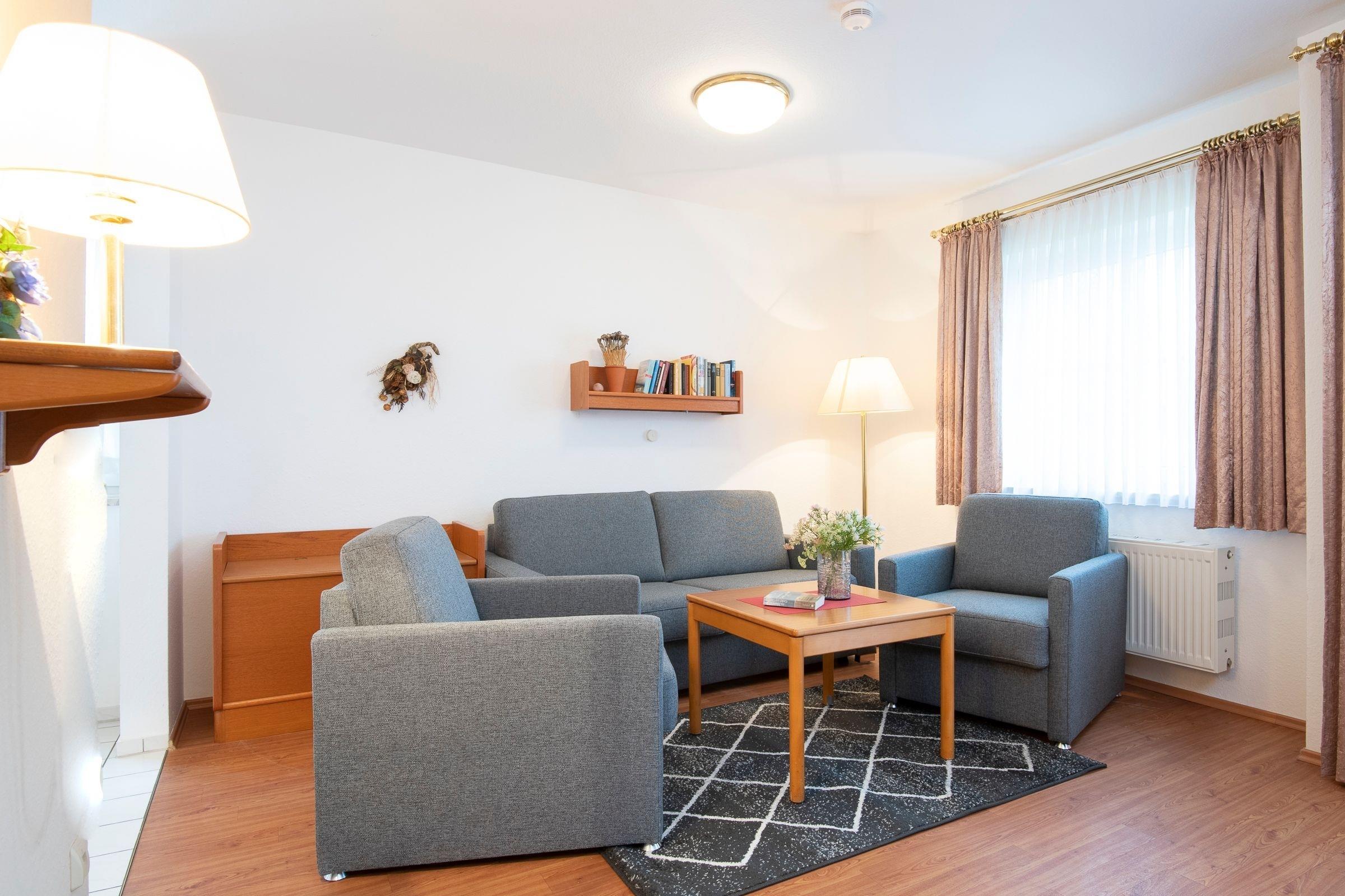 Wie wäre es gleich morgens mit einem Spaziergang am Strand? Die Ostsee ist nur rund 95 Meter von der Ferienwohnung Ostsee-Hering entfernt. Sie befindet sich im gepflegten Ferien-Wohnpark Kaiserhof und hat einiges zu bieten: Im Wohnbereich empfängt Sie ein gemütliches Sofa sowie 2 Sessel. Kommen Sie zur Ruhe und lesen Sie hier ein gutes Buch oder entspannen Sie vor dem TV-Gerät. Direkt daneben können Sie die geschützte Terrasse betreten. Ein lauschiges Plätzchen im Grünen mit bequemen Möbeln und Sonnenschirm. Die gut ausgestattete Küche ist offen gestaltet und verfügt über eine Spülmaschine. Hier lassen sich sämtliche Menüs mühelos zaubern. Nehmen Sie Platz in der Ess-Ecke und genießen Sie Ihre freie Zeit. Zum Schlafen stehen Ihnen 2 Möglichkeiten zur Verfügung: Bei dem Sofa im Wohnzimmer handelt es sich um ein Schlafsofa, dass sich in ein Doppelbett (ca. 160x200 cm) verwandeln lässt. Und das separate Schlafzimmer verfügt über ein Doppelbett (2x 90x200 cm). Das Duschbad ist hell gefliest.