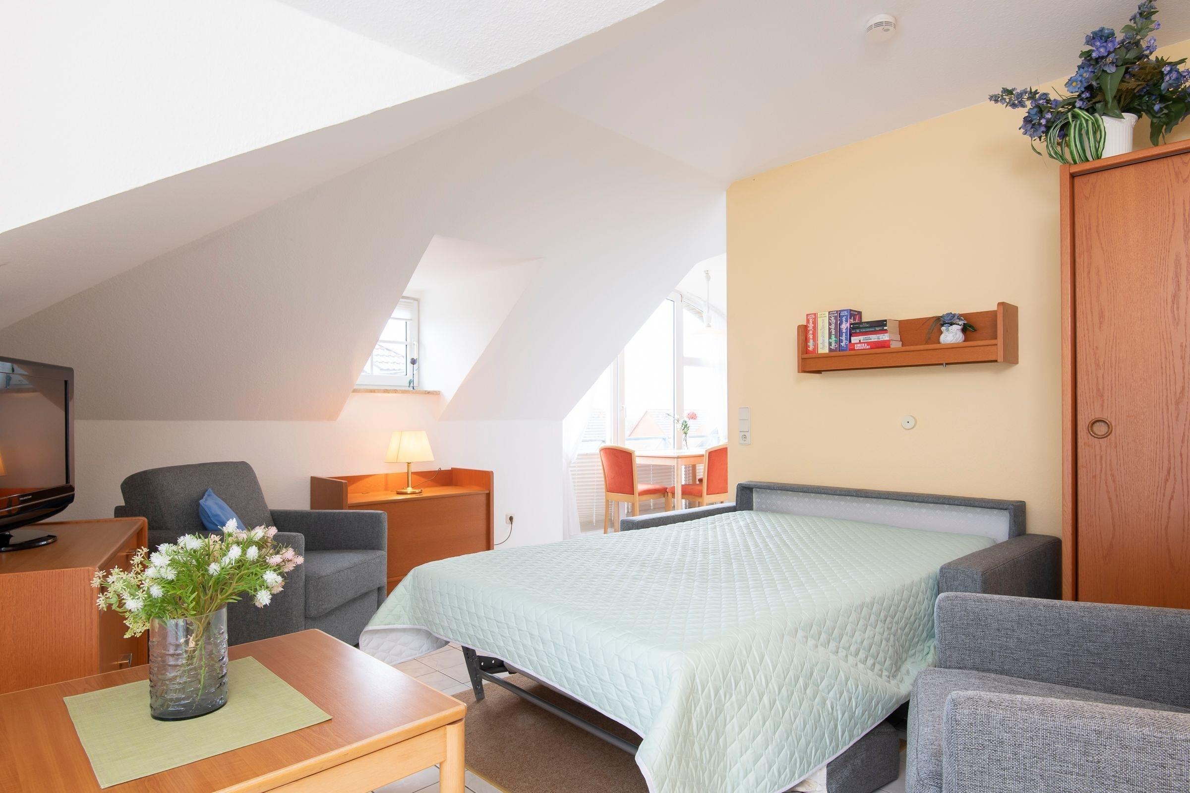 Wohnzimmer: 1 Schlafsofa (140x200 cm), Kleiderschrank