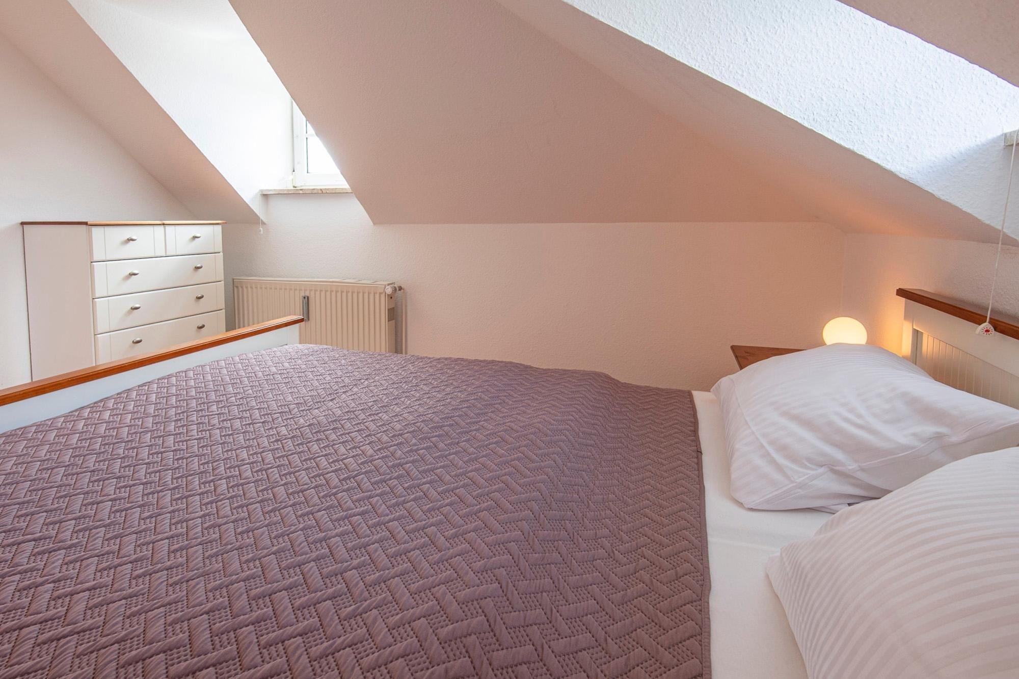 Schlafzimmer: 1 Doppelbett (2x 90x200 cm), Kleiderschrank, Verdunkelung