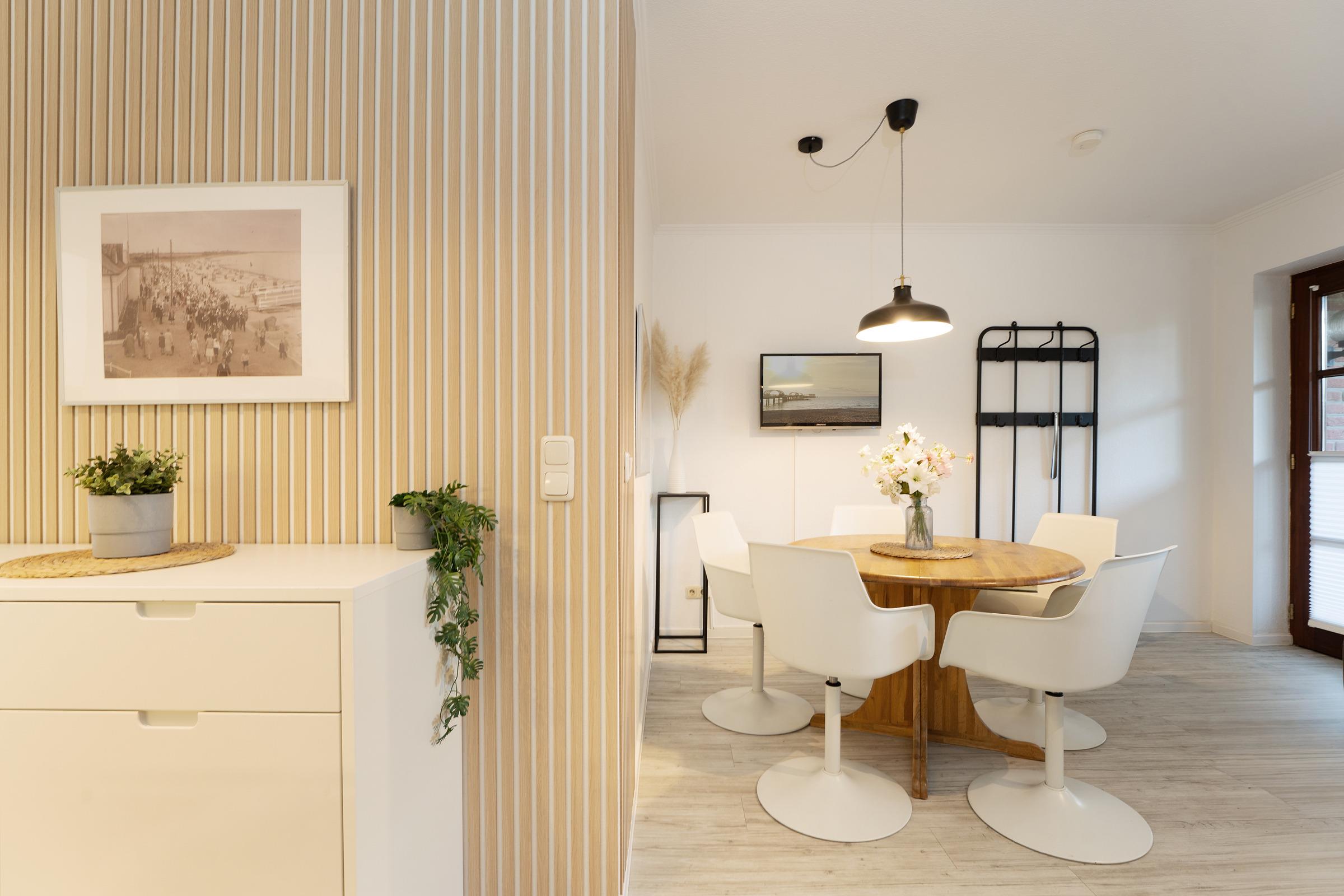 Charmante 3-Zimmer-Ferienwohnung in Kellenhusen im Erdgeschoss mit Terrasse und Gartenzugang. Das Objekt bietet mit 2 Schlafzimmern und einer Wohnfläche von ca. 51 m² genügend Platz für bis zu 4 Erwachsene und 1 Kind.