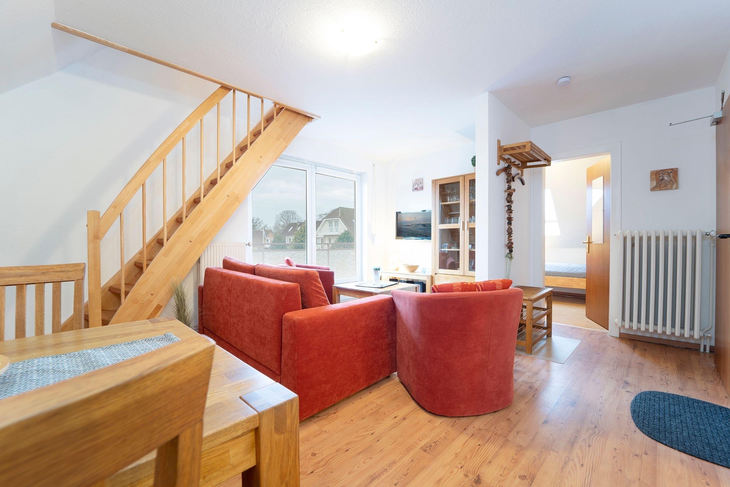 Verbringen Sie Ihren nächsten Ostseeurlaub in der 1. Reihe von Kellenhusen: strandnahe 3-Zimmer-Ferienwohnung im 1. Stock über 2 Ebenen mit Balkon und einer Wohnfläche von ca. 43 m² für bis zu 4 Personen.