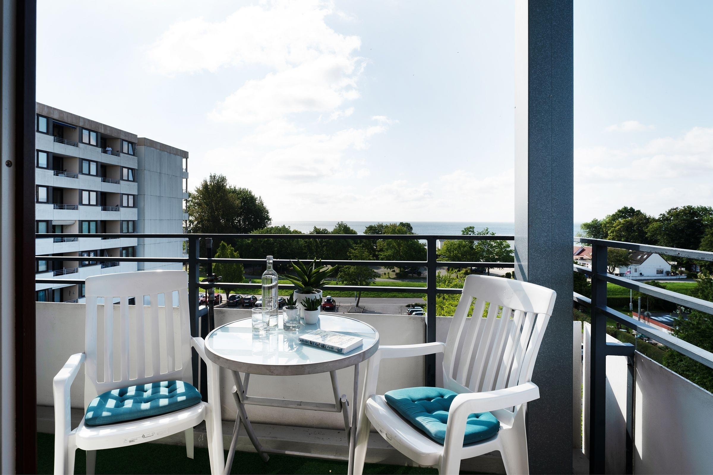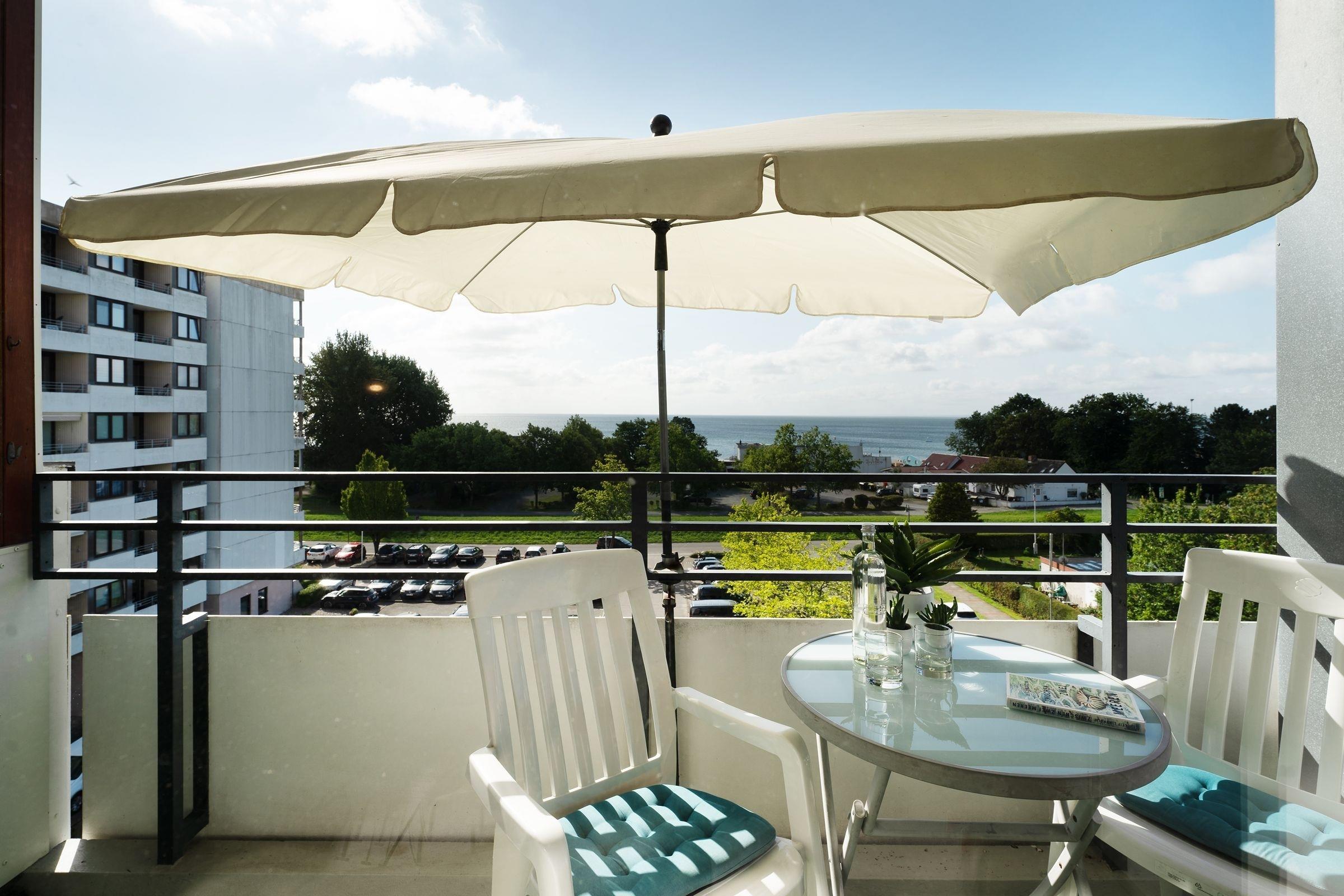 In bester Lage von Kellenhusen: charmante 1-Zimmer-Ferienwohnung im 5. Stock mit Balkon, Meerblick, Fahrstuhl und einer Wohnfläche von ca. 37 m² für bis zu 2 Personen.