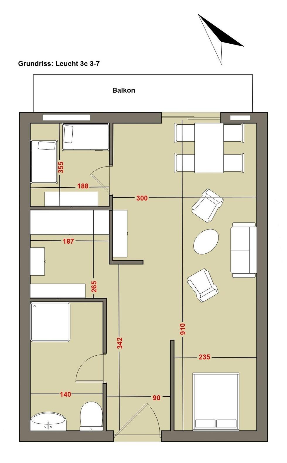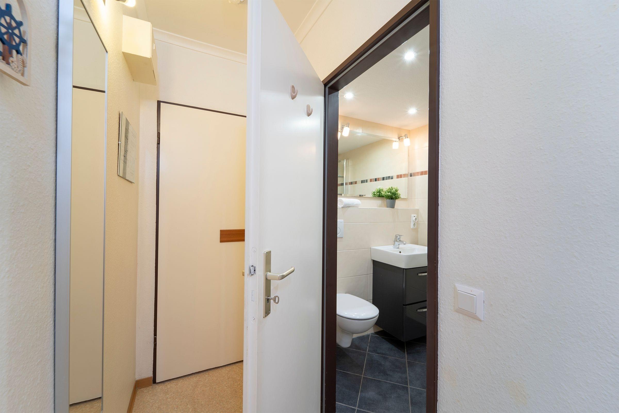 Hier wohnen Sie gleich hinter dem Deich. Nur ein paar Schritte - und Sie können den herrlichen Sandstrand genießen. Die Unterkunft besticht durch seine durchdachte Aufteilung: Im gemütlichen Wohn-/Schlafbereich finden Sie neben einer Essecke am Fenster und einer Couchgarnitur vor dem TV-Gerät im hinteren Bereich ein bequemes Doppelbett (2x 90x200 cm), das durch einen Vorhang abgetrennt werden kann. Hier haben Sie auch Zutritt auf die geräumige Balkon-Loggia, auf der Sie die Morgensonne genießen können. Die offene Küche ist mit Kochfeld, Spülmaschine und einer Kaffeefilter- und Kaffee-Kapselmaschine (Dolce Gusto) gut ausgestattet. Ein weiteres Zimmer bietet für die Nacht 2 Einzelbetten (je 90x200 cm). Und das moderne Bad verfügt über eine ebenerdige Dusche.