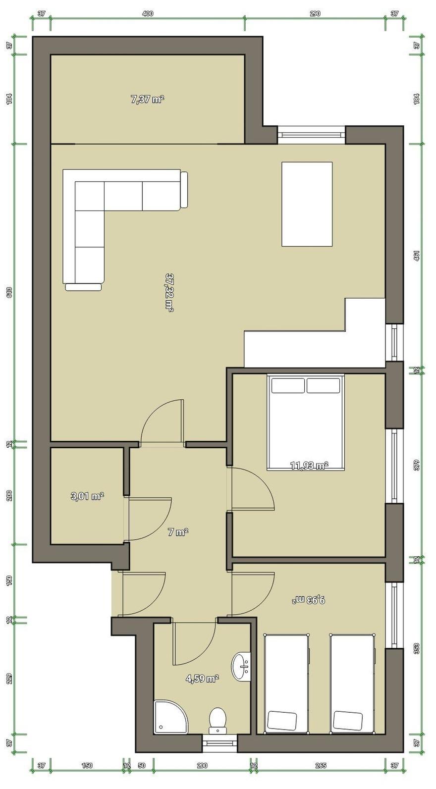 (1 Doppelbett 2x 90x200 cm und 2 Einzelbetten je 90x200 cm) laden zum Entspannen und Träumen ein. Ein modernes, tageslichthelles Duschbad rundet diese Ferienwohnung ab.