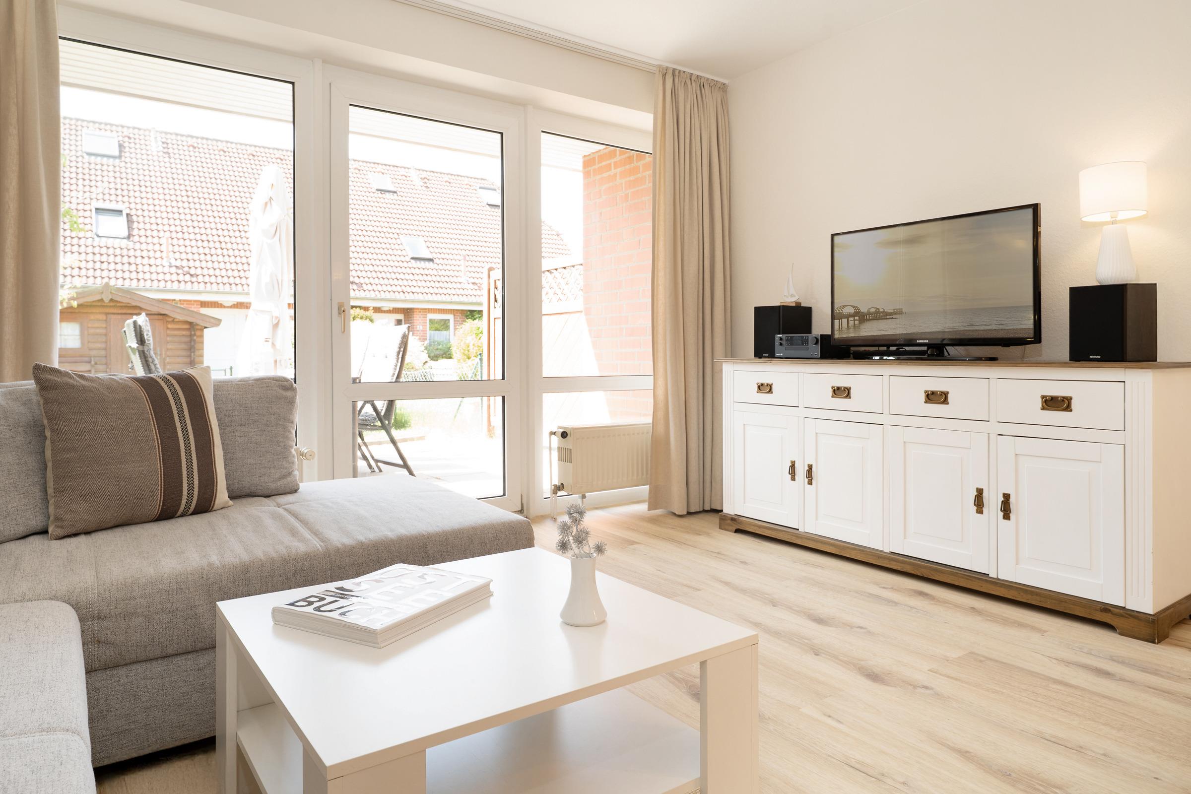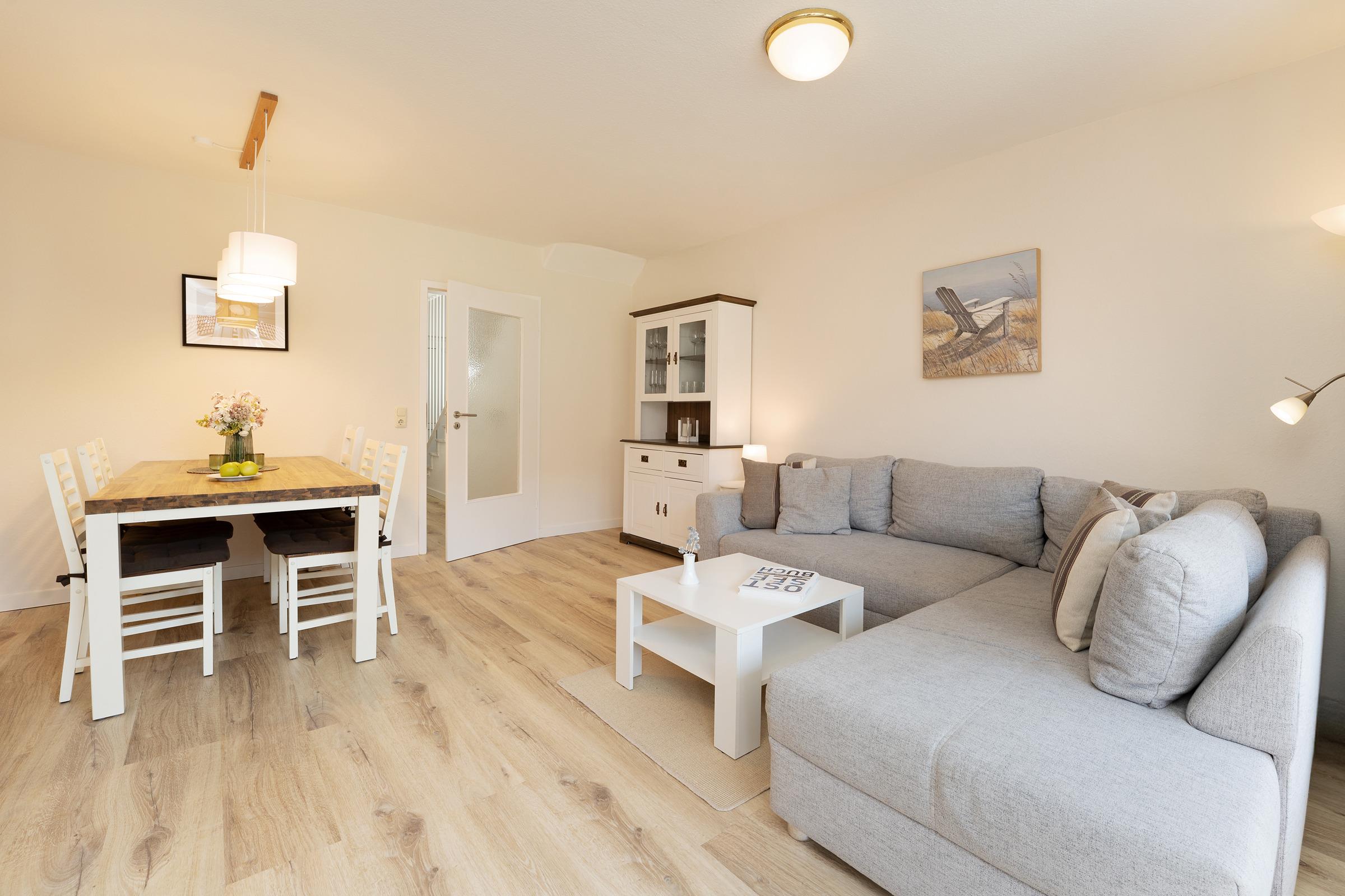 Herzlich Willkommen im Urlaub. Ihr Zuhause auf Zeit befindet sich im Ferien-Wohnpark Amselweg und bietet Ihnen viel Platz und Komfort. Hell und gemütlich präsentiert sich das moderne Haus, das sich über 2 Etagen erstreckt. Im Erdgeschoß befindet sich der großzügige Wohn- und Essbereich mit einem gemütlichen Sofa, das sich in einen Schlafplatz für 2 Gäste (120x200 cm) verwandeln lässt. Von dort gelangen Sie auch auf die möblierte Terrasse und in den Garten. Hier lässt es sich wunderbar entspannen und relaxen. Nutzen Sie tagsüber die Sonnenliegen und schmeißen Sie abends den Grill an. Der Garten ist vollständig eingezäunt, sodass Kinder und Hunde in sicherer Umgebung spielen können. Die separate Küche mit Geschirrspüler ist mit nahezu allen Annehmlichkeiten ausgestattet. Nach langen Tagen am Strand können Sie sich im Badezimmer im OG in der Badewanne erholen oder die Dusche im Badezimmer im EG nutzen. Für eine erholsame Nachtruhe stehen Ihnen im 1. Obergeschoss zwei Schlafzimmer zur Verfügung. Ein Schlafzimmer ist mit Kleiderschrank, einem Doppelbett (180x200 cm) und einem kuscheligen Schlafplatz für ein Kleinkind ausgestattet. Im zweiten Schlafzimmer erwarten Sie zwei Einzelbetten (je 90x200 cm) und ein Kleiderschrank. Praktisch: Waschmaschine und Trockner stehen Ihnen im Haus zur Verfügung.