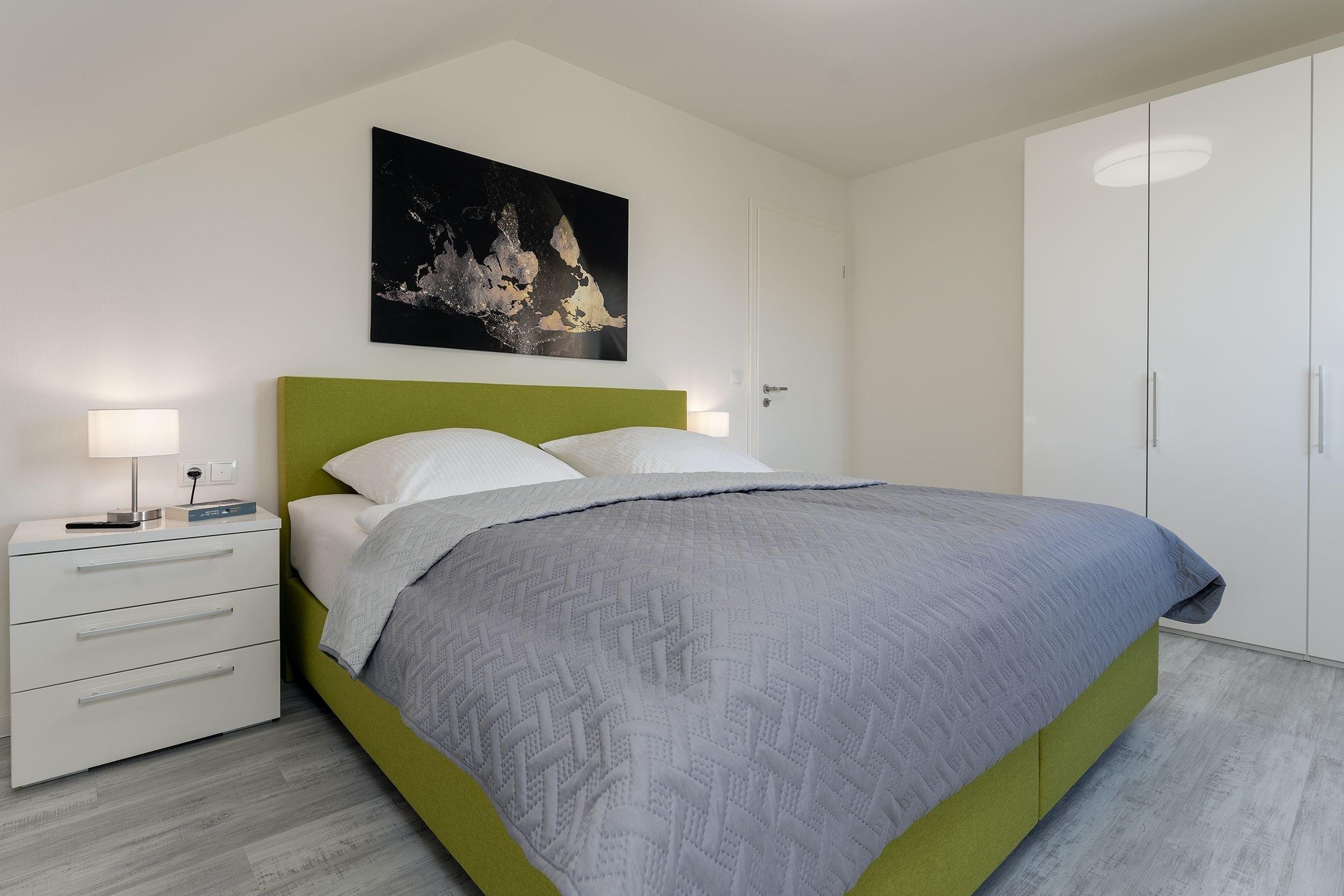 Das Herzstück dieser Wohnung bildet das Wohnzimmer mit Schlafsofa (130x200cm) und offener Küche, welche zum Verweilen und gemeinsamen Kochen einlädt. Von dort gelangen Sie auf den Balkon mit Südausrichtung, der mit Sonnenschirm und Balkonmöbeln ausgestattet ist. Für die Erholung im Urlaub gibt es ein separates Schlafzimmer, das sich mit Jalousien abdunkeln lässt, und mit eigenem TV und Boxspringbett (2x 90x200cm) überzeugt. Das Tageslichtbad verfügt über eine bodengleiche Dusche und Annehmlichkeiten wie einen Haartrockner und eine Handtuchheizung, damit es Ihnen an nichts fehlt, wenn Sie aus der eigenen Sauna kommen. Als weitere Besonderheit verfügt die gesamte Wohnung über eine angenehme Fußbodenheizung. Kostenfreies WLAN und ein Internetradio stehen hier zur Verfügung.