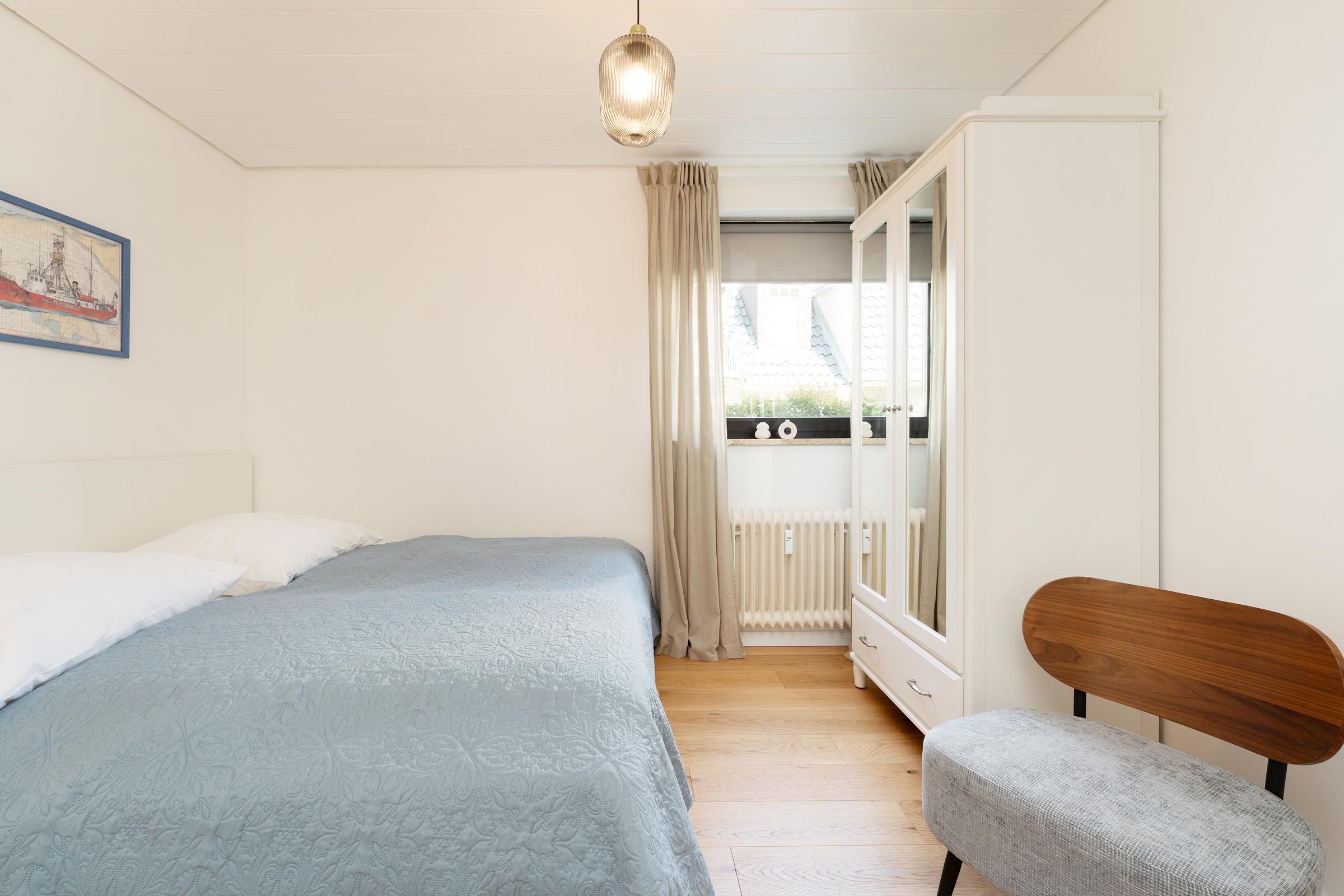 Schlafzimmer: 1 Doppelbett (2x 90x200 cm), Kleiderschrank, Verdunkelung: Rollo, Platz für Babybett vorhanden
