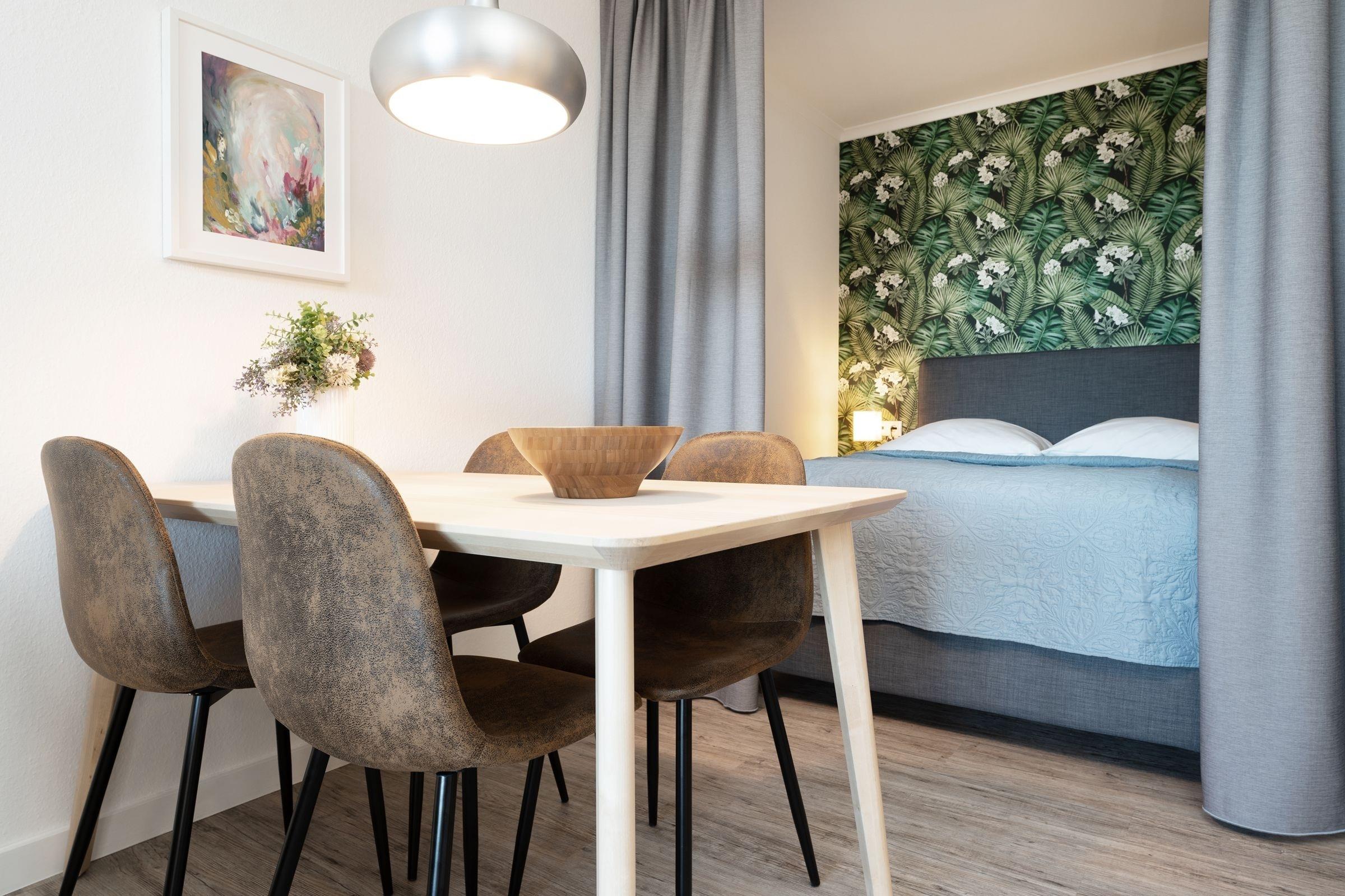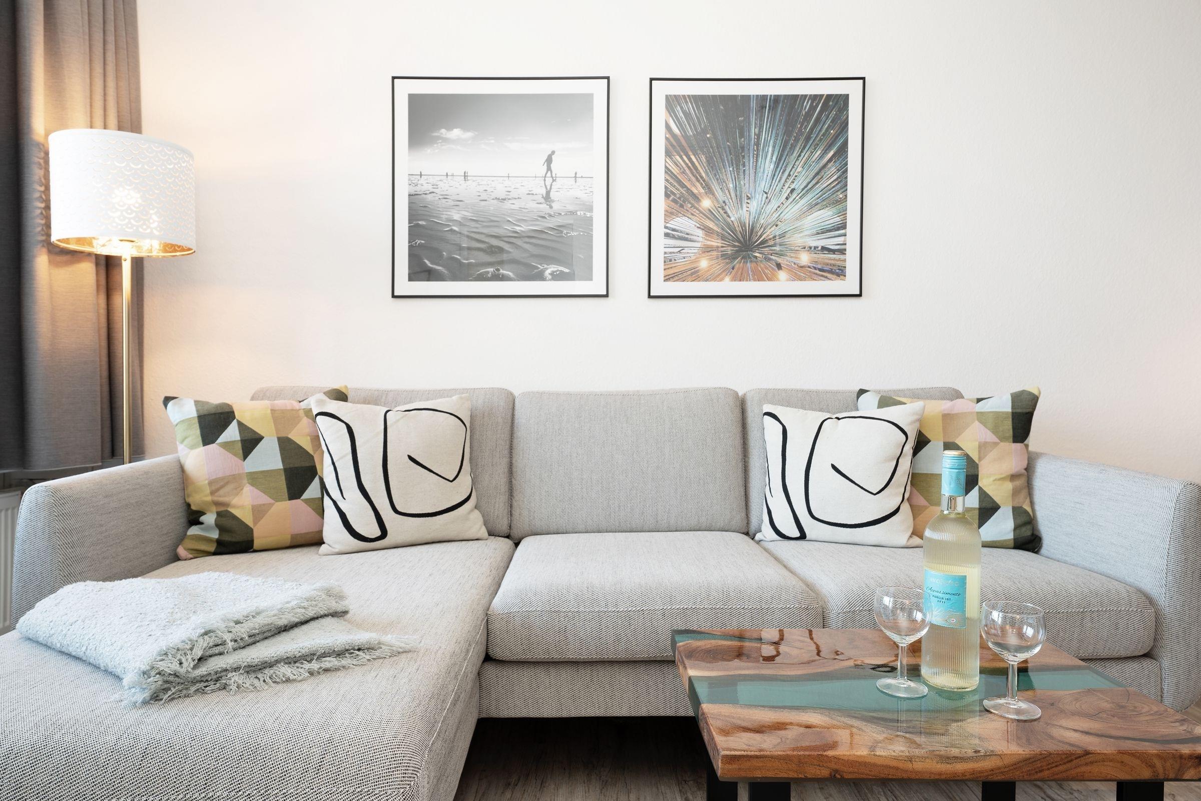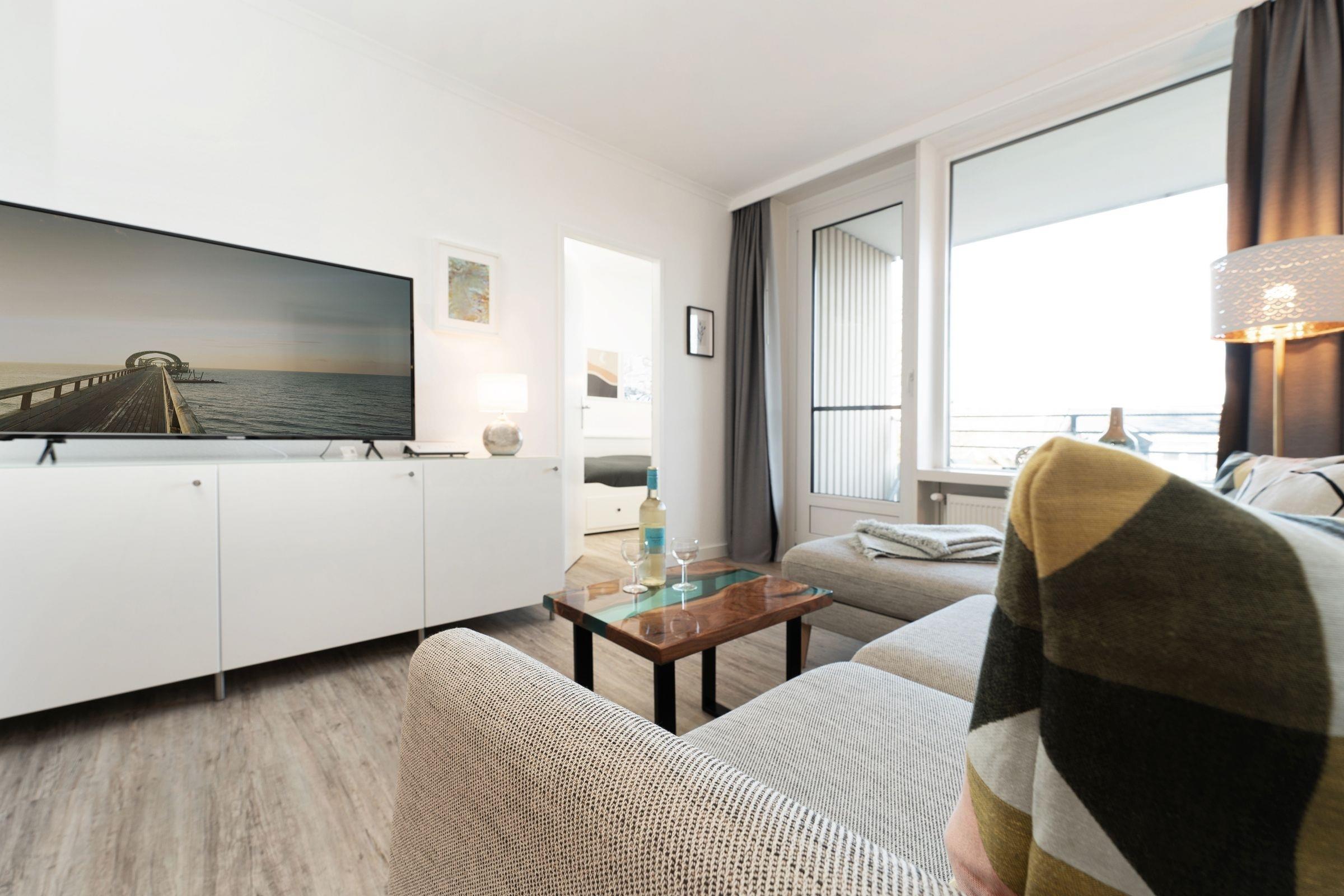 Der Name der Ferienwohnung Küstenquartier verrät es schon: Die Wohnung befindet sich ganz nah an der Küste, nur rund 100 Meter vom Ostseestrand entfernt. Die liebevoll ausgesuchte Einrichtung wird Sie sofort begeistern. Verbringen Sie Ihre wohlverdiente Auszeit im gemütlichen Wohn-/Schlafbereich mit Smart-TV (Streamingdienste zur Selbstanmeldung) oder an der frischen Seeluft auf dem möblierten, überdachten Balkon. Hobbyköche werden sich über die sehr gute Ausstattung der separaten, modernen Küche mit Induktionsherd, Nespresso-Maschine und Spülmaschine freuen. Nach einem gelungenen Abendessen verspricht das Doppelbett (140x200 cm) im Wohnzimmer angenehme Nachtruhe. Genauso das Kojenbett (2x 80x200 cm, ausziehbar) im Schlafzimmer. Das Duschbad punktet mit einem Föhn und einem Handtuchwärmer.