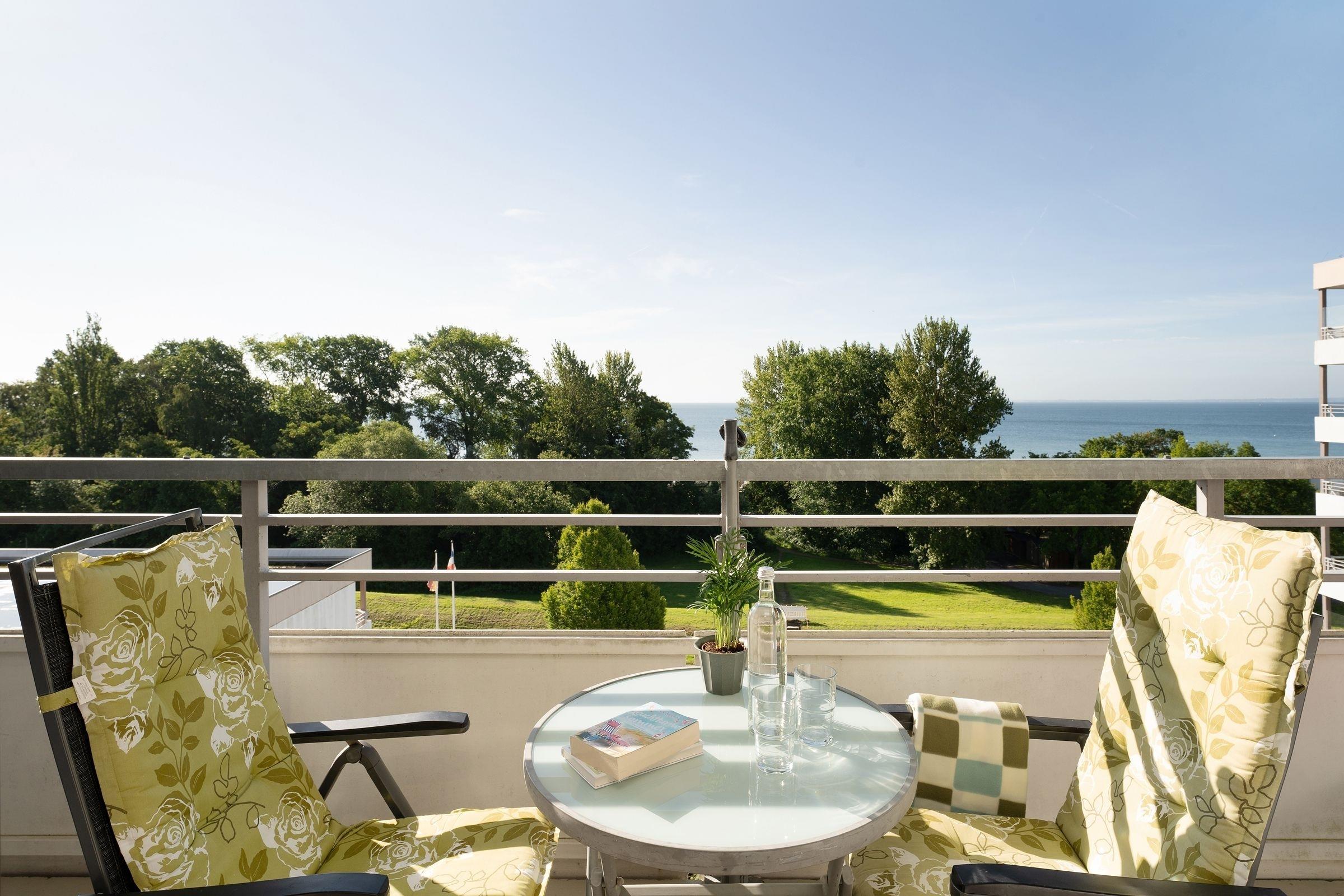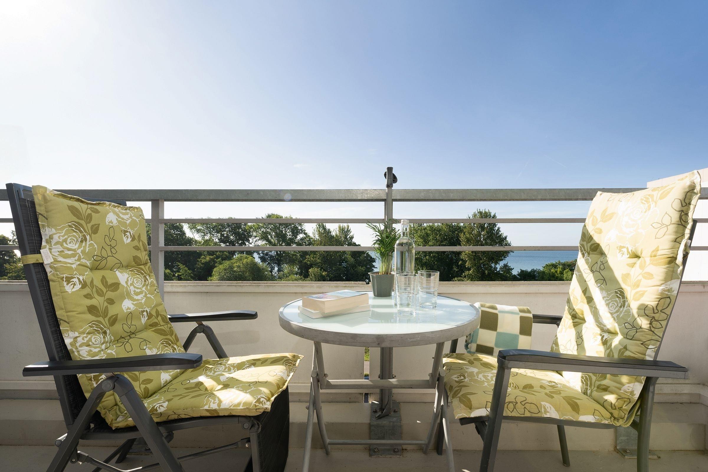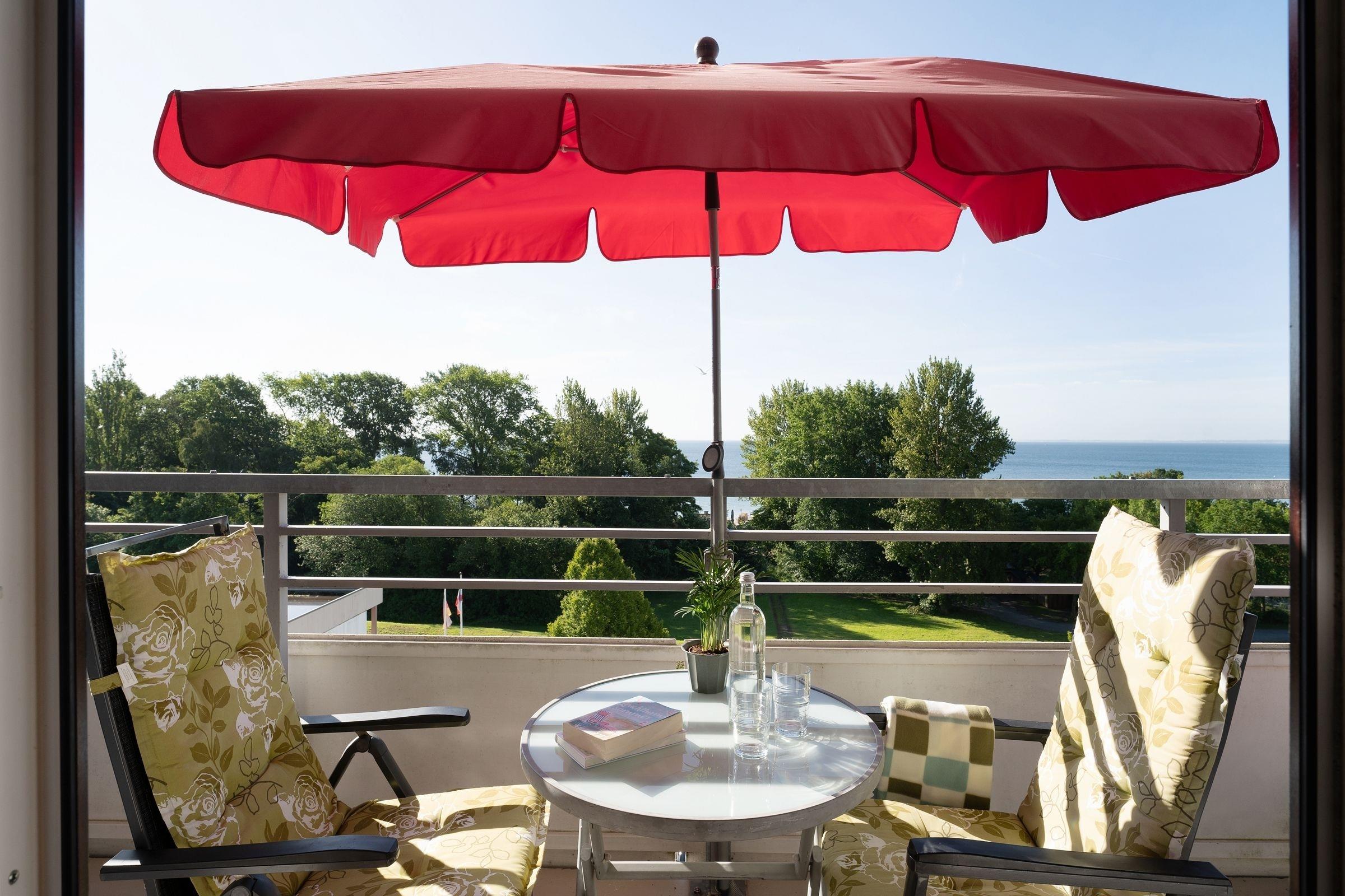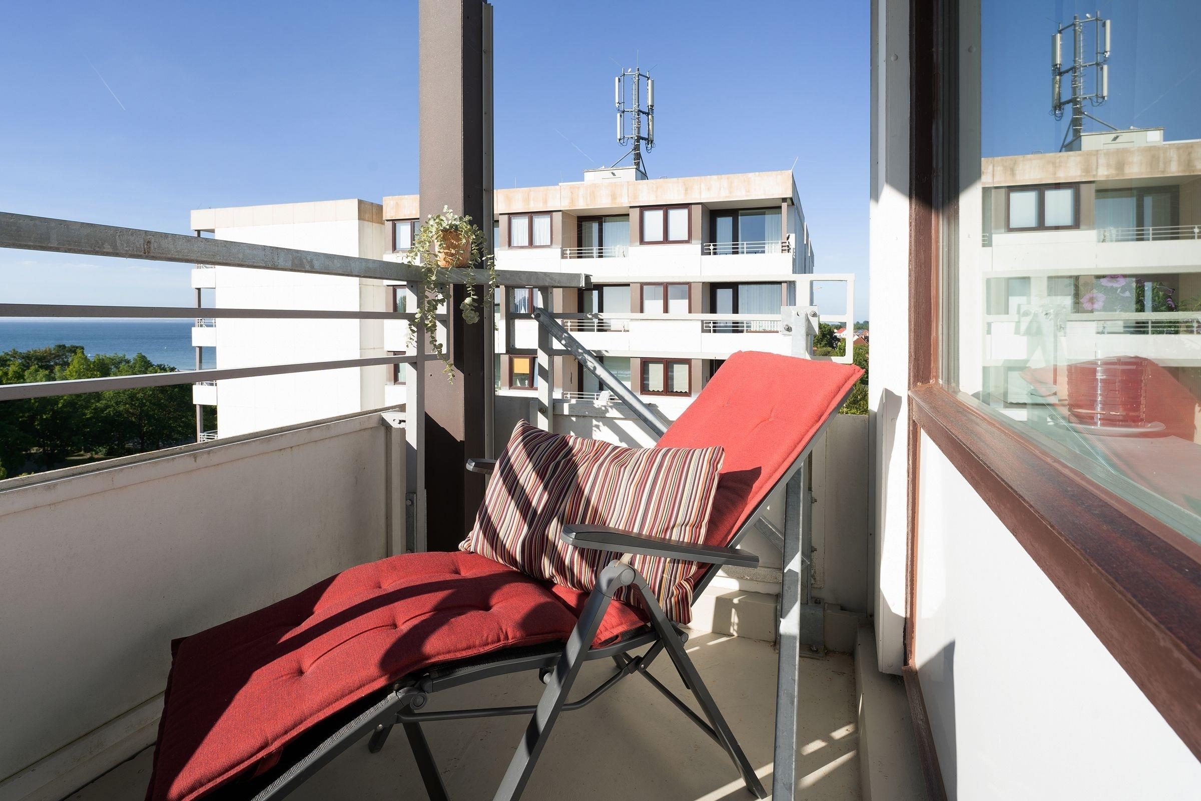In bester Lage von Kellenhusen: strandnahe 2-Zimmer-Ferienwohnung im 6. Stock mit Balkon und Meerblick und einer Wohnfläche von ca. 44 m² für bis zu 4 Personen.
