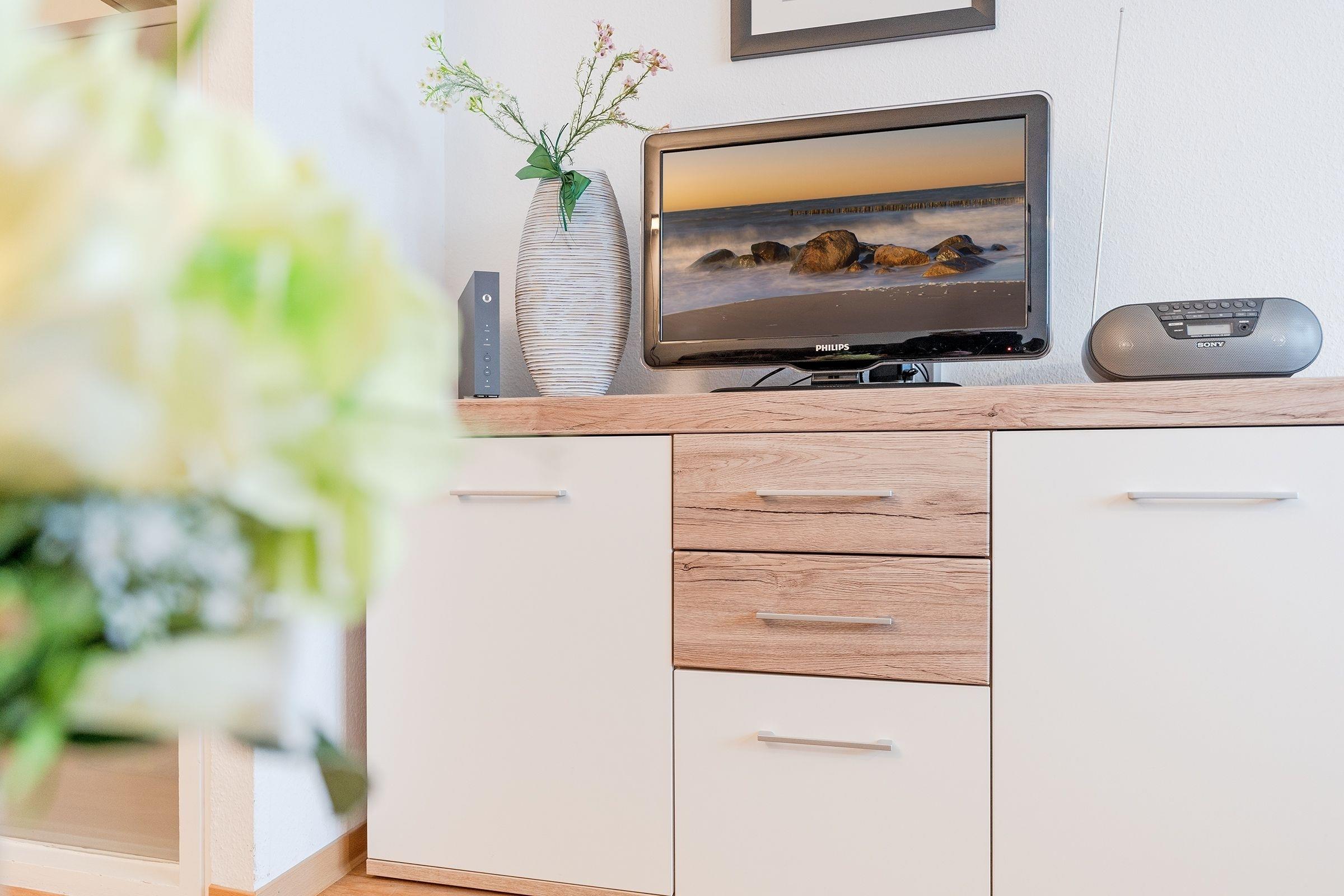 Wohnzimmer: 2 Einzelbetten (je 90 x 200cm), TV, Verdunkelungsmöglichkeit: Gardinen, kein Platz für Babybett