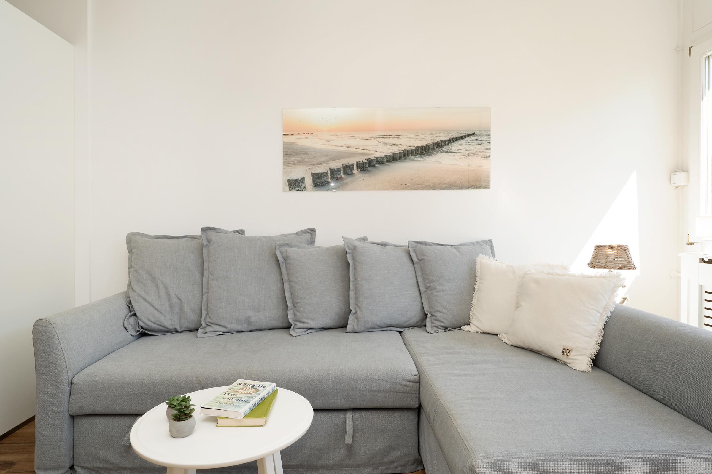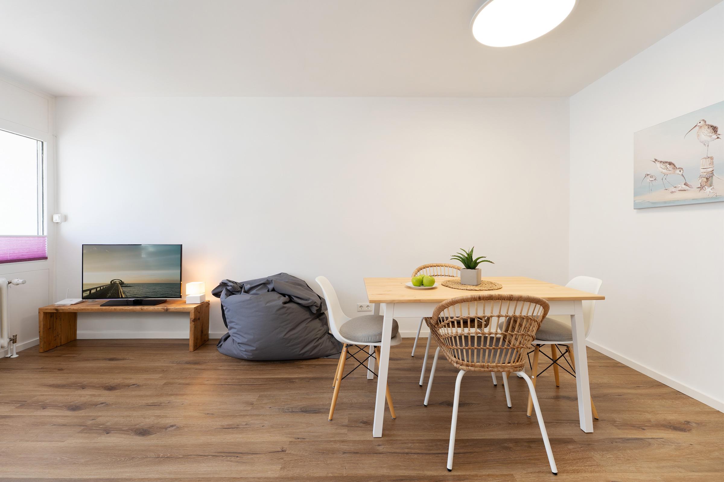 Diese liebevoll eingerichtete Ferienwohnung in Kellenhusen erwartet Sie nur 400?Meter vom feinsandigen Ostseestrand entfernt – ideal für entspannte Urlaubstage an der Küste. Auf 42?m² Wohnfläche bietet die Ferienunterkunft im 1. Stock alles, was es für einen komfortablen Aufenthalt braucht. Der gemütliche Wohnbereich lädt mit seiner Sitzecke, einem Flachbild-TV und Zugang zur überdachten Terrasse zum Wohlfühlen ein. Hier können Sie den Tag bei einem Frühstück im Freien beginnen oder bei einem Glas Wein ausklingen lassen. Die offene Küche ist modern ausgestattet mit Cerankochfeld, Backofen, Kühlschrank mit Gefrierfach, Spülmaschine, Kaffeemaschine, Wasserkocher und Toaster – ideal für Selbstversorger. Der Essbereich bietet ausreichend Platz für gemeinsame Mahlzeiten. Im separaten Schlafzimmer sorgt ein komfortables Doppelbett (2x 80x200 cm) für erholsamen Schlaf. Zwei weitere Schlafplätze befinden sich im Wohnbereich in Form einer bequemen Schlafcouch (160x200 cm). Das Badezimmer verfügt über eine Dusche, Haartrockner und beheizbarem Handtuchhalter – perfekt für einen angenehmen Start in den Tag.