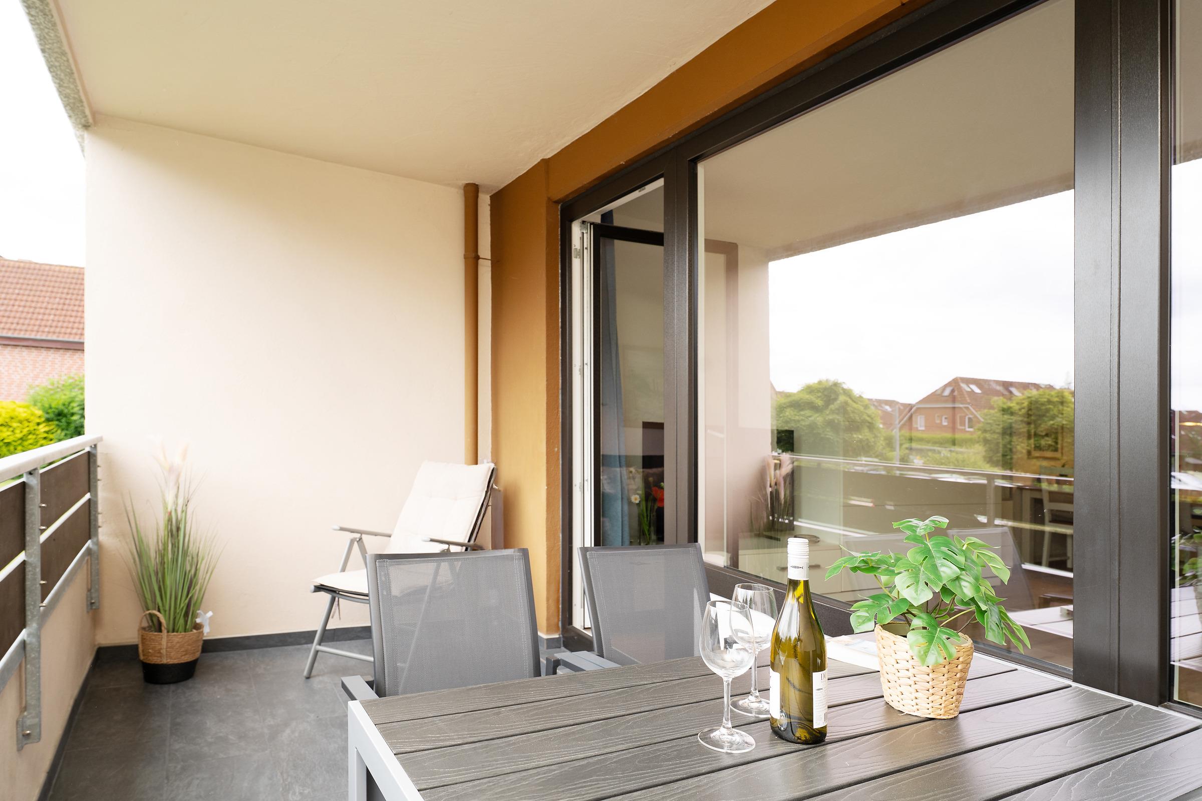 Starten Sie den Tag mit einem Frühstück auf dem möblierten Balkon – perfekt zum Abschalten und Auftanken.