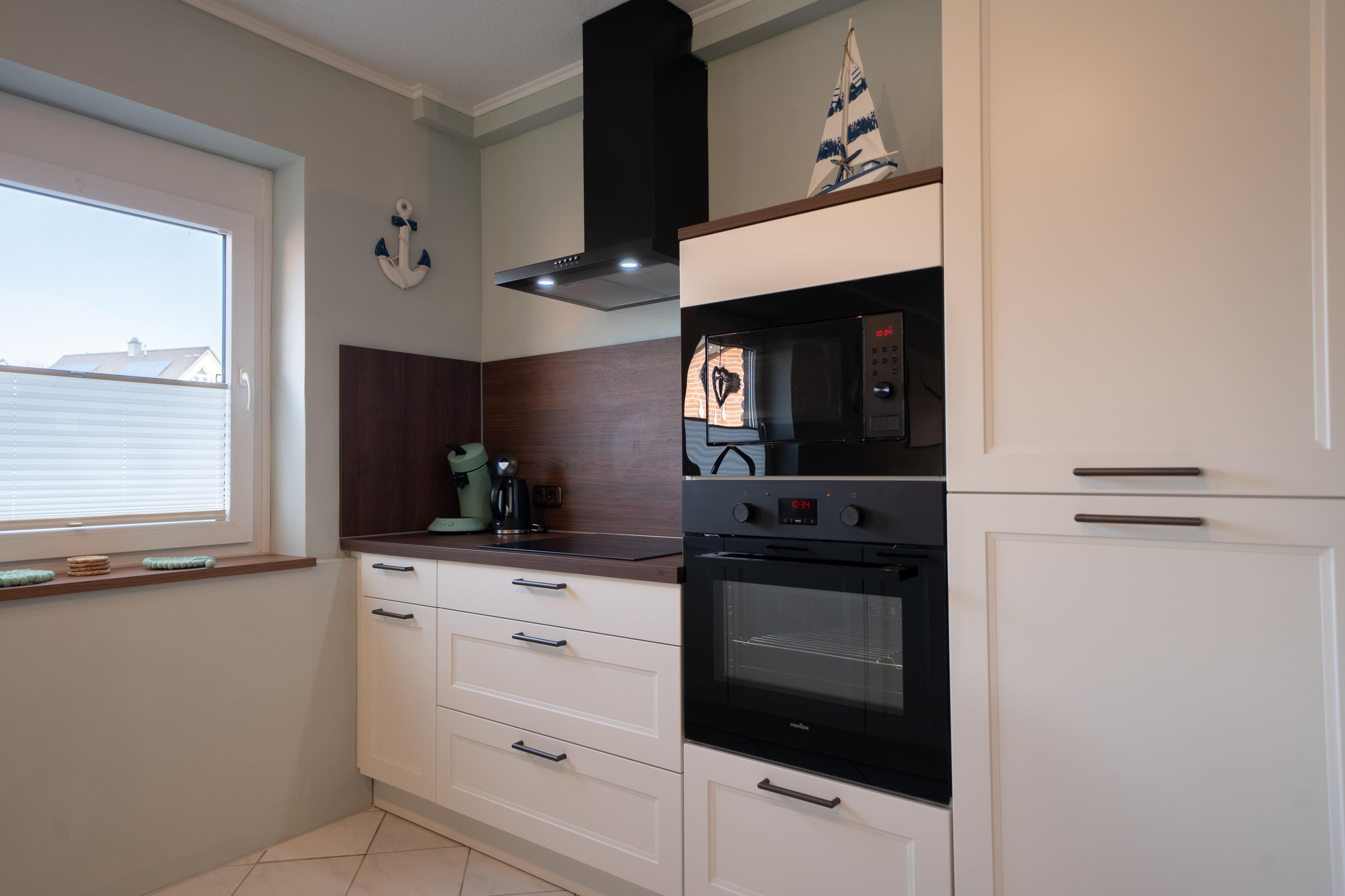Cerankochfeld, Geschirrspüler, Backofen, Mikrowelle und einem Kühlschrank sowie Gefrierschrank ausgestattet.