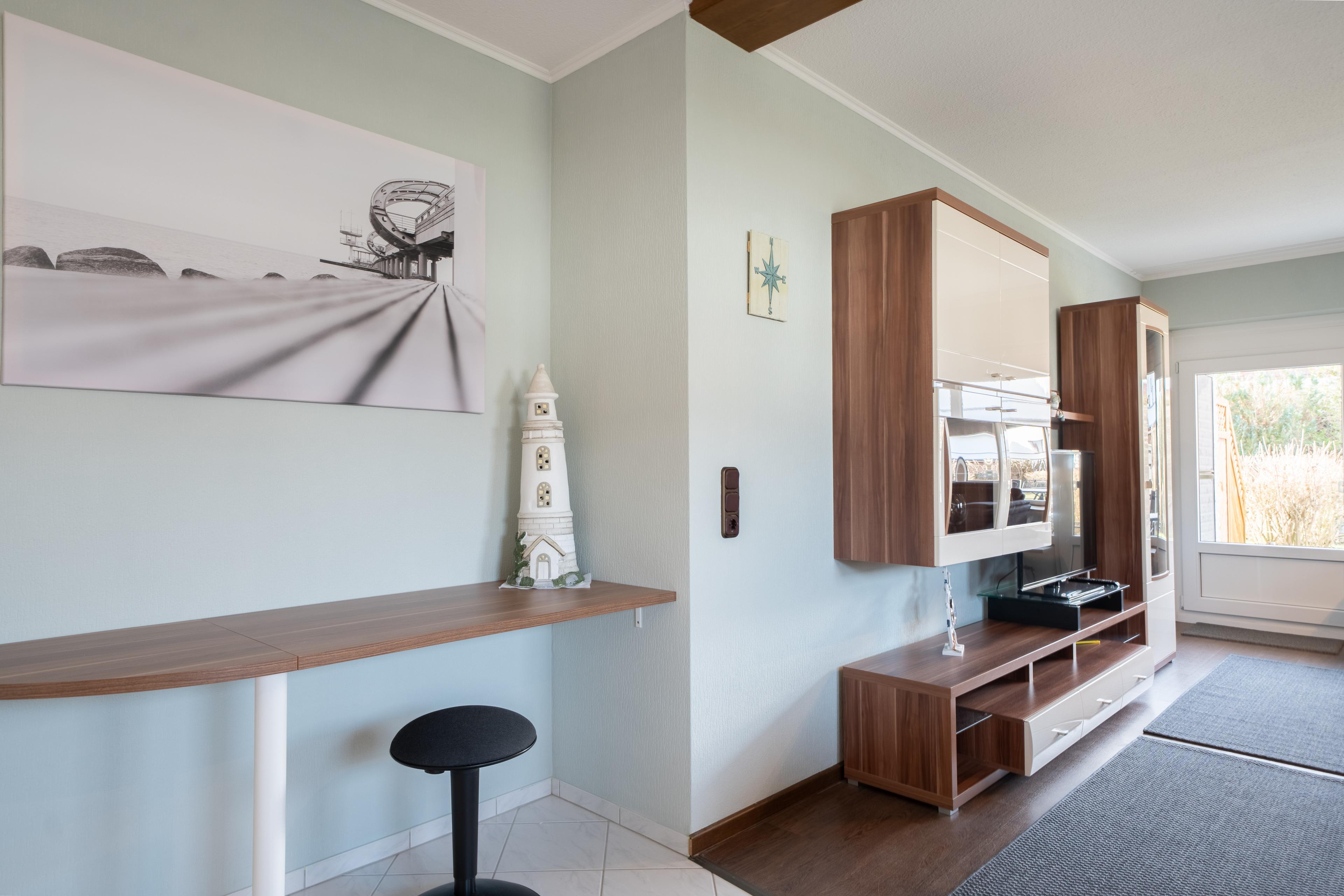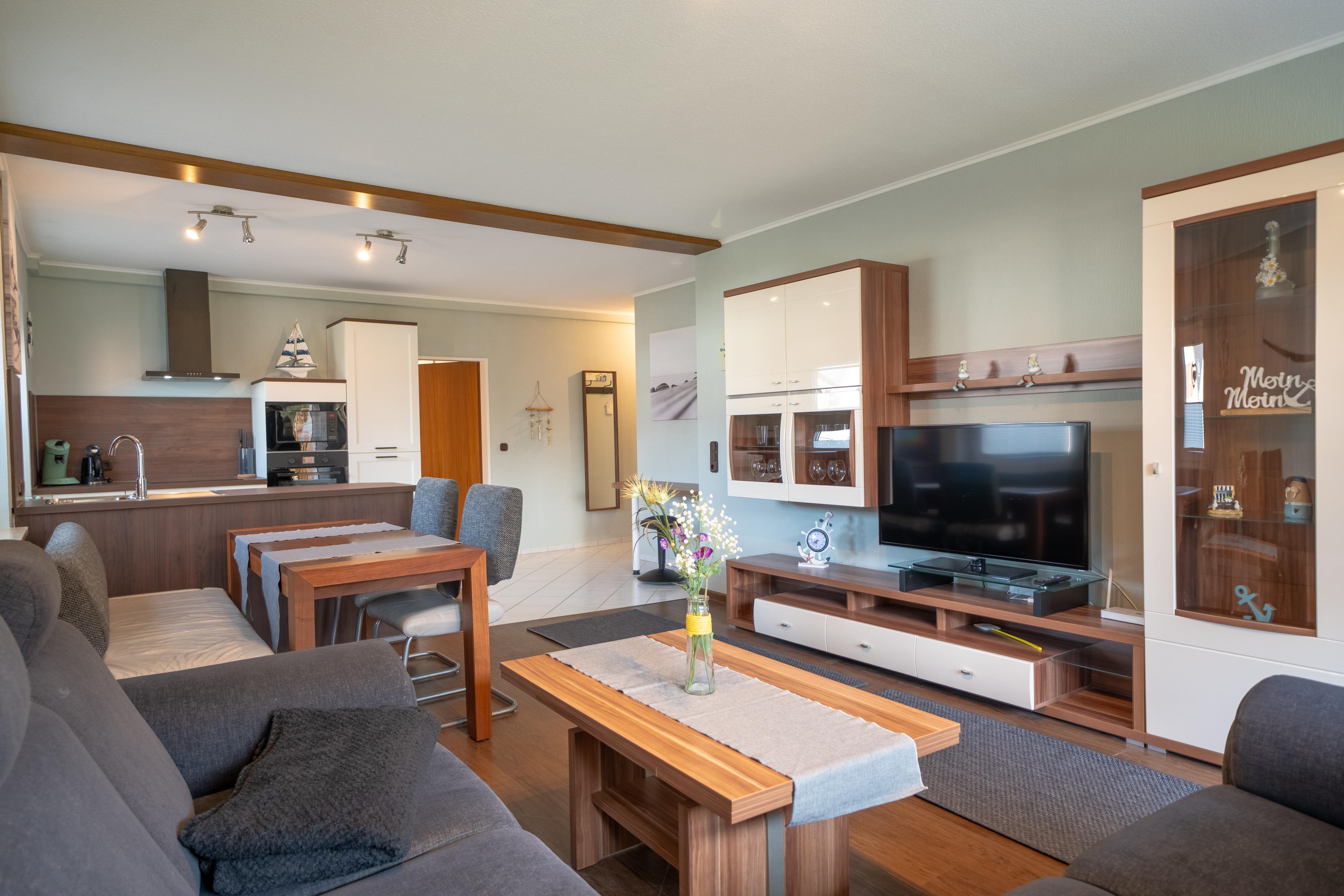 Der Essbereich befindet sich im Wohnzimmer, dort können Sie am Esstisch Ihre Speisen zu sich nehmen.