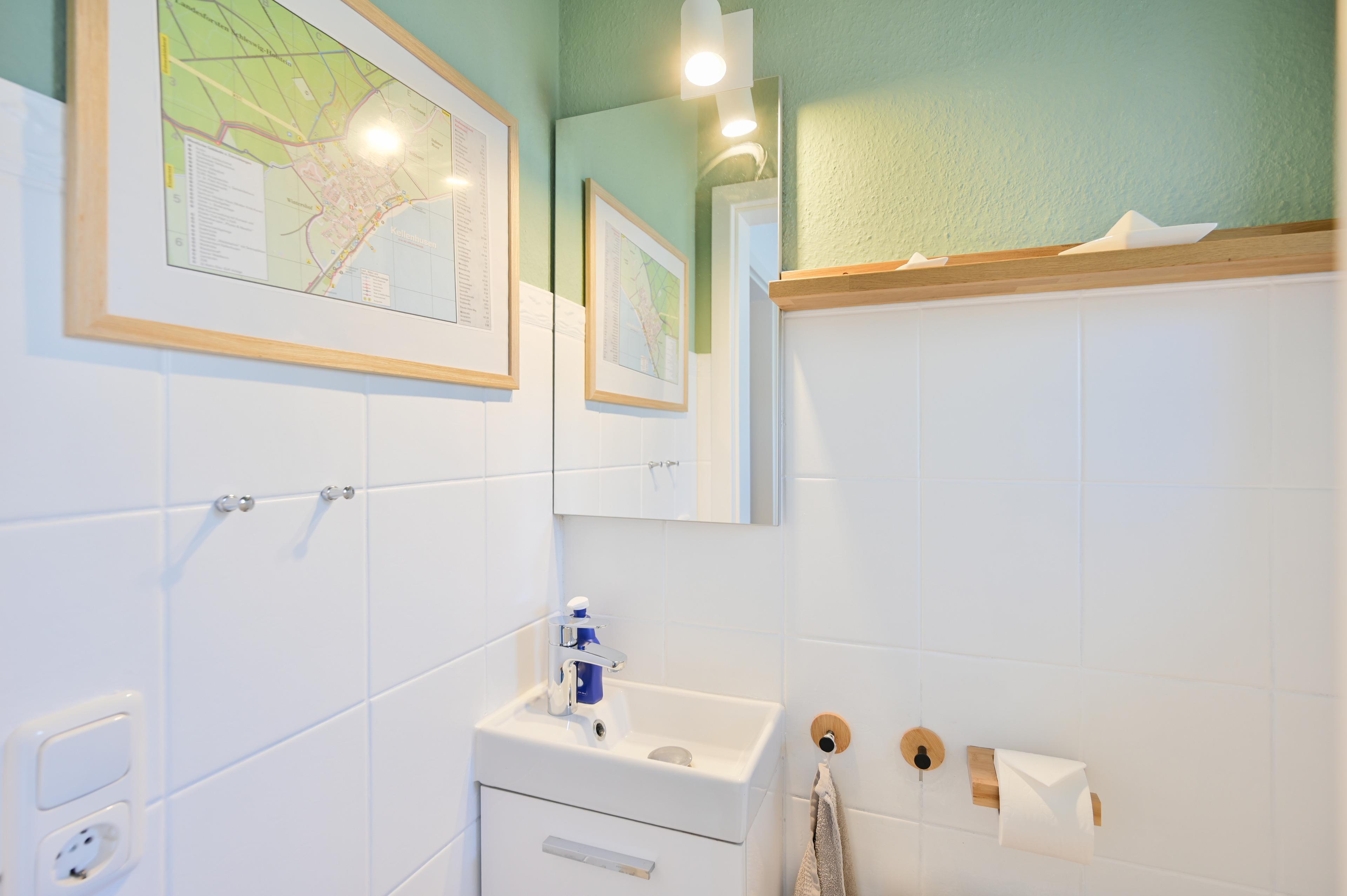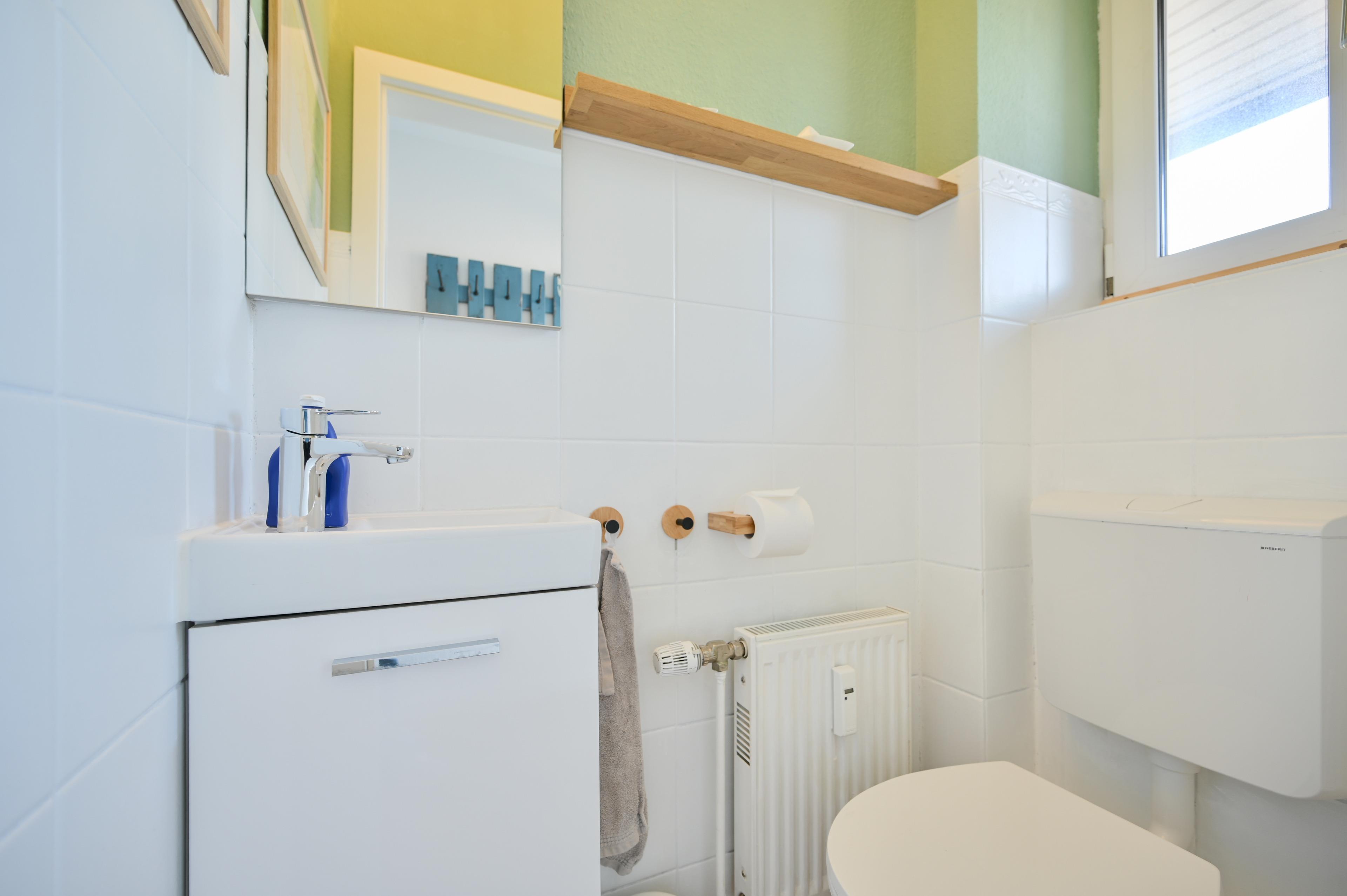 ein großer Flachbild-TV (SAT und smart TV Funktionalität) sind selbstverständlich vorhanden. Ein Gäste-WC im