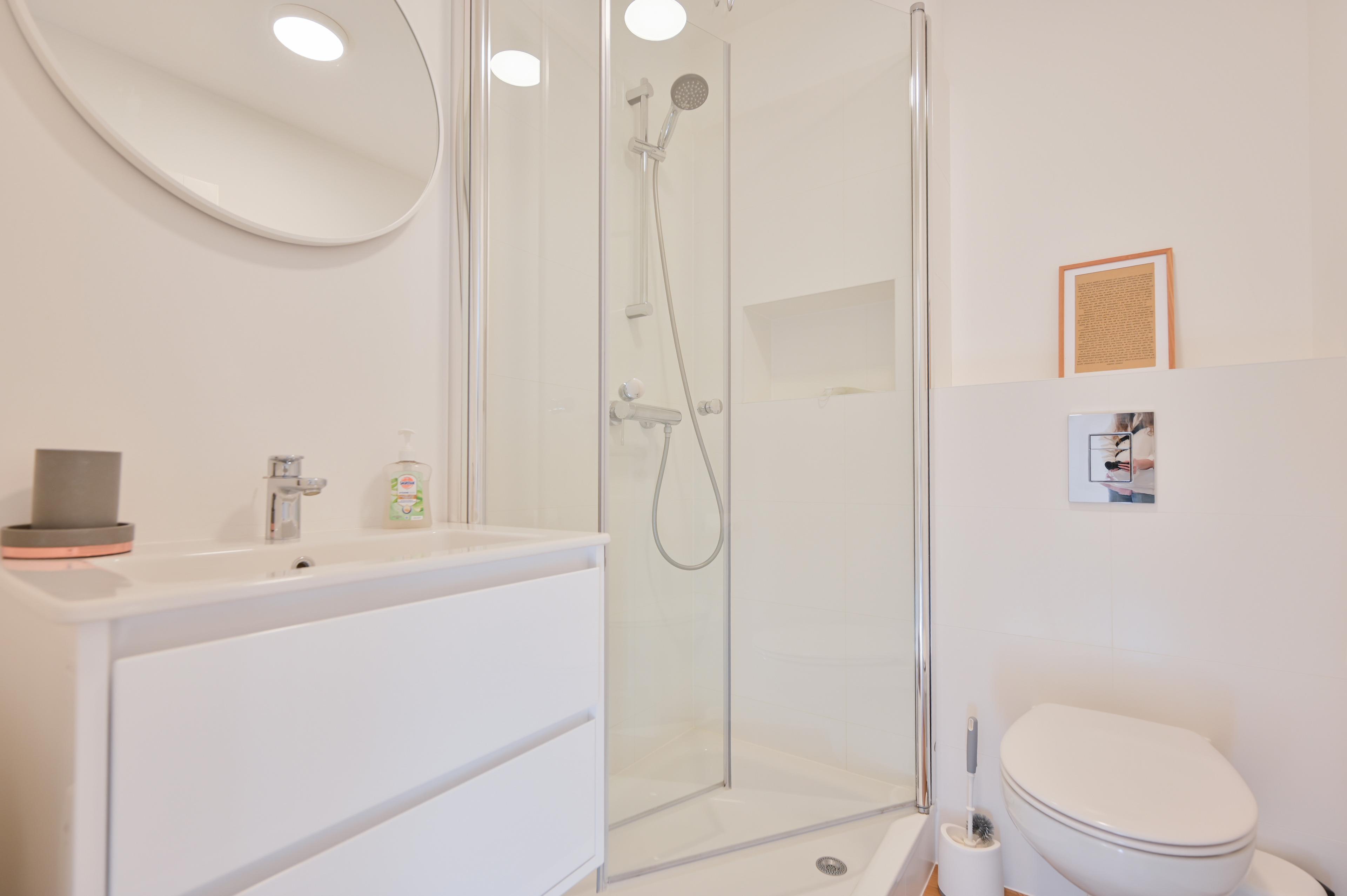 Dusche (Achtung, der Einstieg in die Dusche ist "nur" 45 cm breit - siehe Fotos). Das