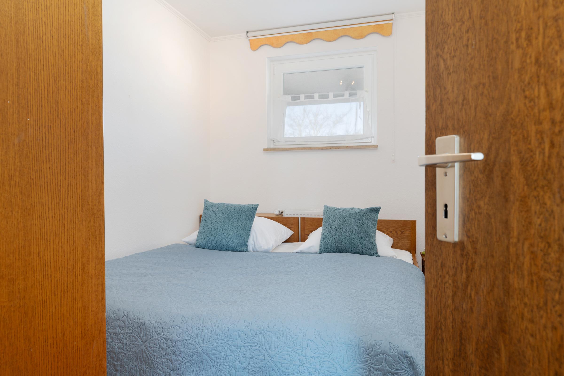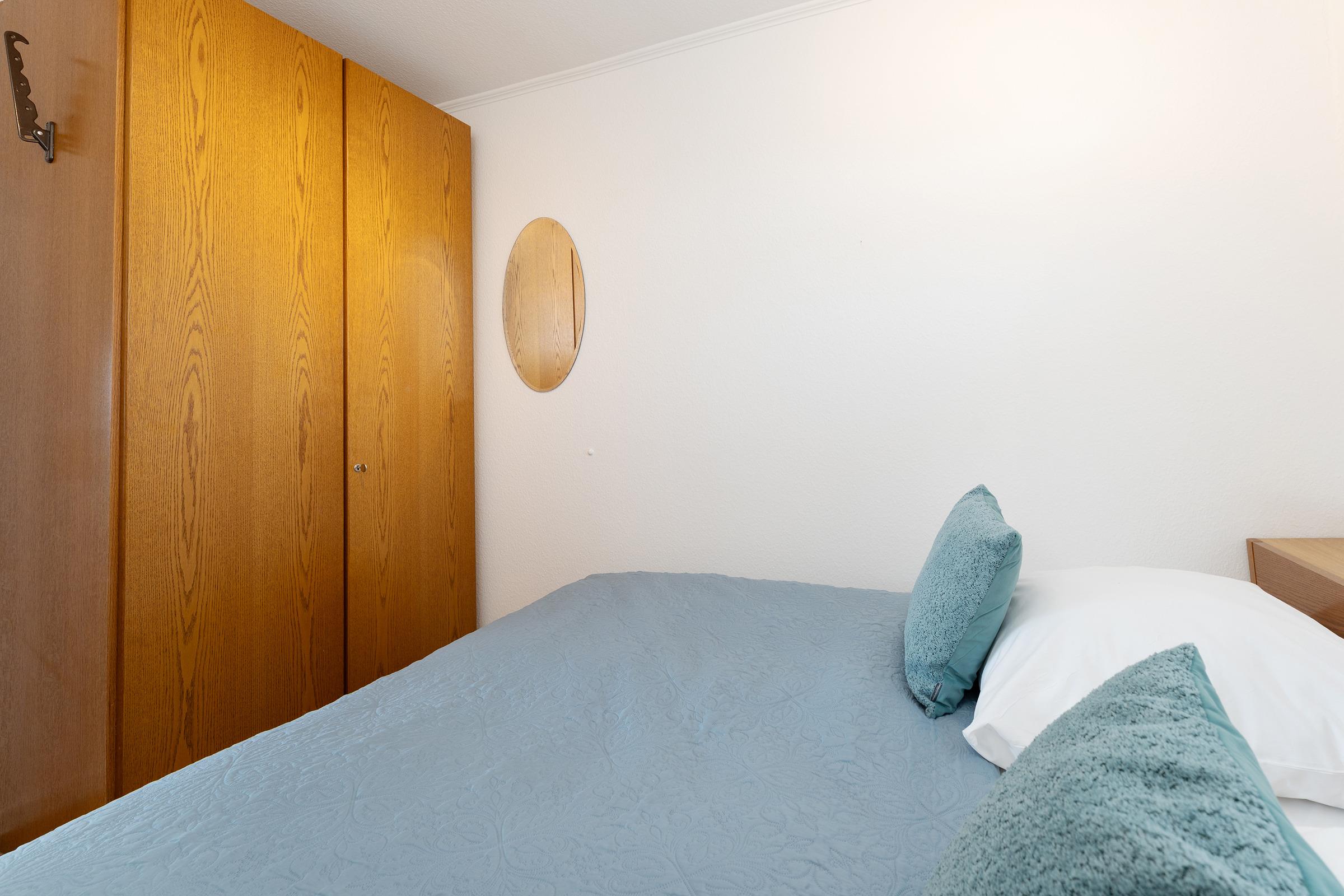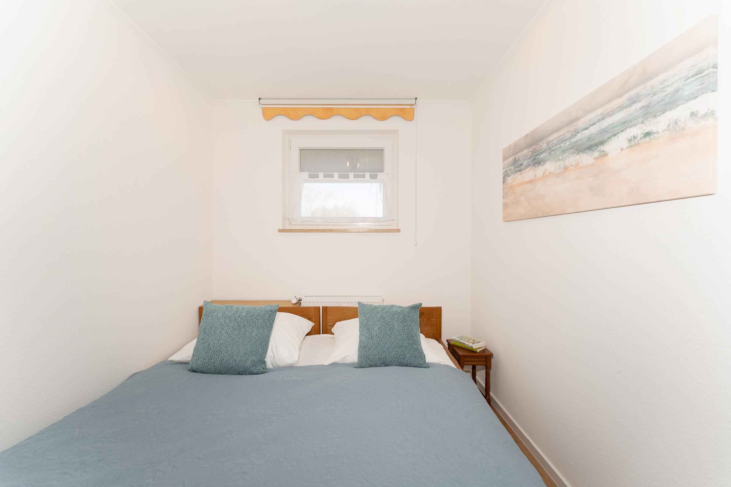 Schlafzimmer 1: 1 Doppelbett (2x 90 x 200 cm), Kleiderschrank, Verdunkelung: Jalousien, Platz für ein Babybett vorhanden