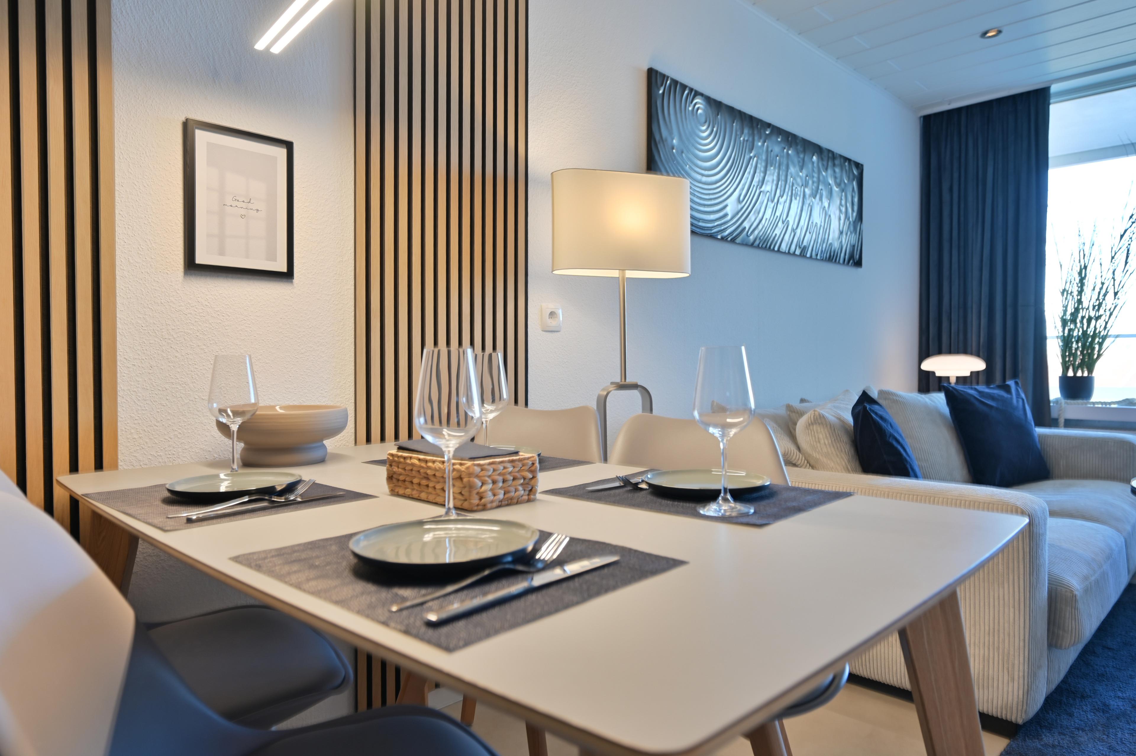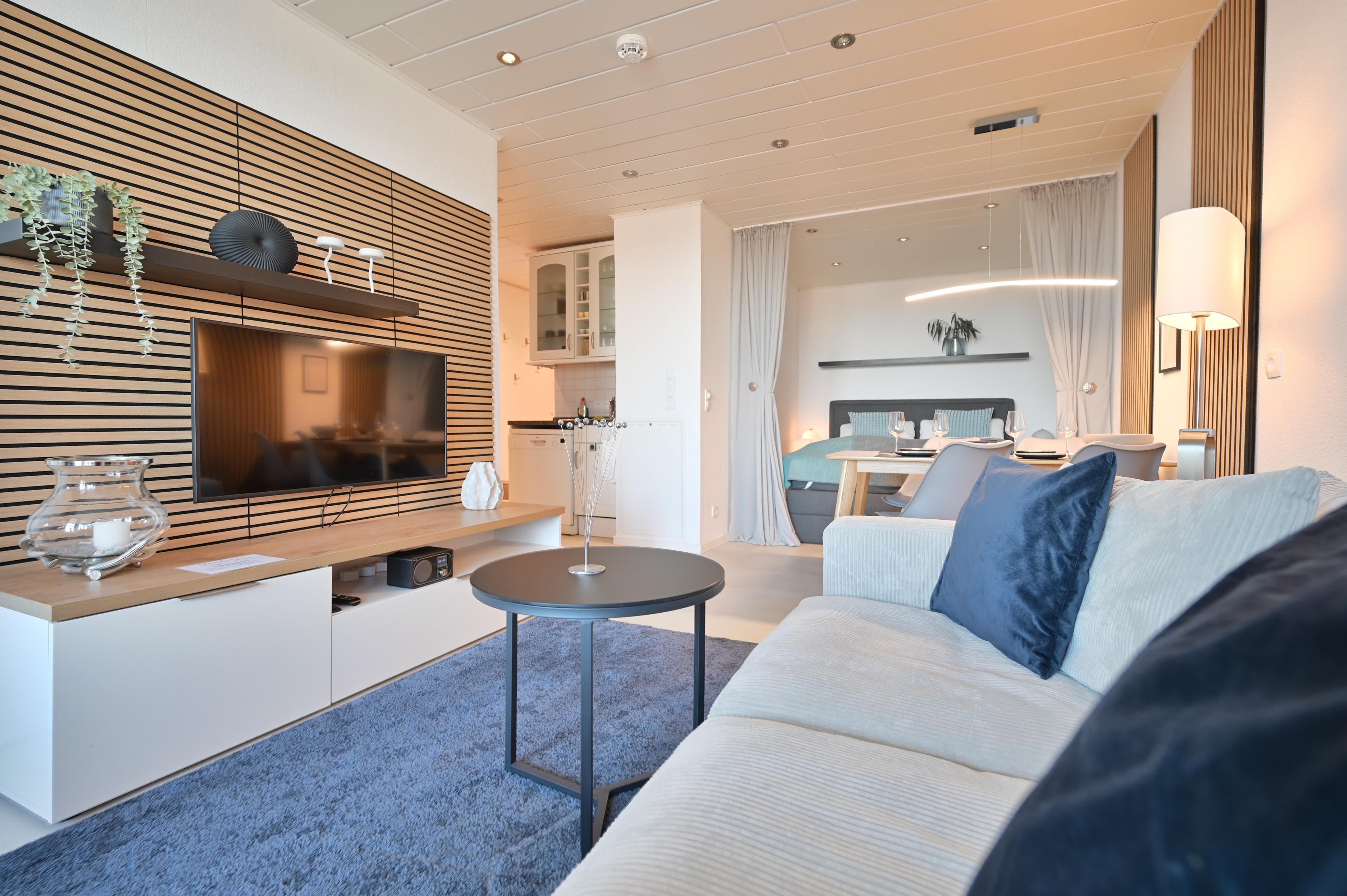 Die Promenade mit verschiedenen Restaurants und gastronomischen Angeboten ist fußläufig erreichbar. Die Umgebung bietet gute Möglichkeiten für Radtouren entlang der Küste und durch die Natur.