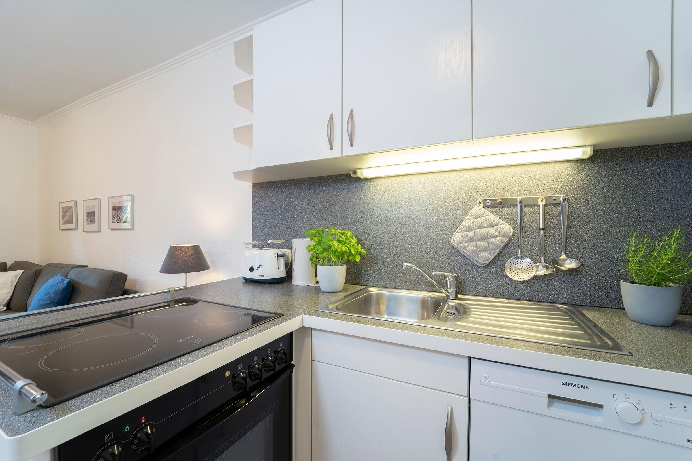 Erleben Sie die schönsten Tage des Jahres in der strandnahen und trotzdem ruhig gelegenen Ferienwohnung. Das modern und hochwertig eingerichtete Objekt bietet viel Platz und besticht durch seine praktische Raumaufteilung. Das Wohnzimmer präsentiert sich mit Essplatz und gemütlicher Sitzgruppe mit TV-Gerät. Hier haben Sie auch Zutritt auf die anliegende möblierte Südterrasse. Die offen gestaltete Küche mit Geschirrspülmaschine und allen notwendigen Küchenutensilien lässt Sie mühelos Ihre Lieblings-Menüs zubereiten. Nach einem schönen Urlaubstag an der Küste stehen Ihnen zwei Schlafräume zur Verfügung: Ein Zimmer verfügt über ein Doppelbett (180x200 cm) und einen Kleiderschrank, in dem anderen Zimmer stehen ein Einzelbett (90x200 cm) und ein Kleiderschrank. Das großzügige Duschbad ist hell gefliest.