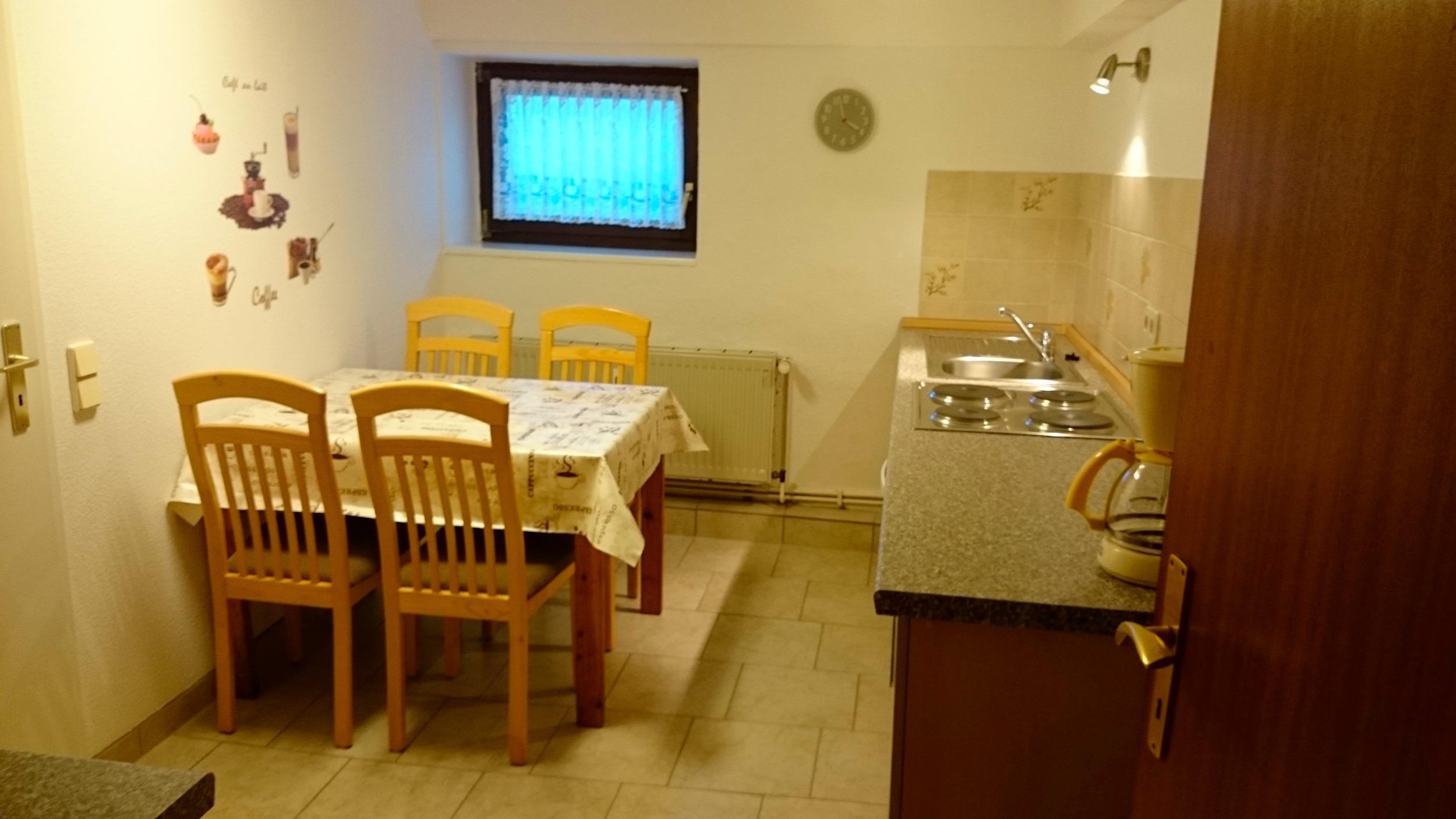 1 Wohnraum mit Radio, TV, Video. Dusche/WC. Küche mit Backofen, Toaster, Kaffeemaschine, Wasserkocher, Mikrowelle und Kühlschrank mit Gefrierfach. Bettwäsche und Handtücher können auf Wunsch ausgeliehen werden (20,- € p.P.). Gartennutzung mit Gartenmöbeln, Grillecke, Tischtennisplatte und Spielplatz mit Schaukel und Sandkasten, Pkw-Stellplatz vor dem Haus, Haustiere auf Anfrage, dann kostet die Endreinigung 40 €. Die Unterkunft befindet sich in der Waldstraße 23, von hier aus sind es ca. 5-6 Fuß-Minuten bis in den Ortskern und ca. 10 Minuten bis zum Strand.