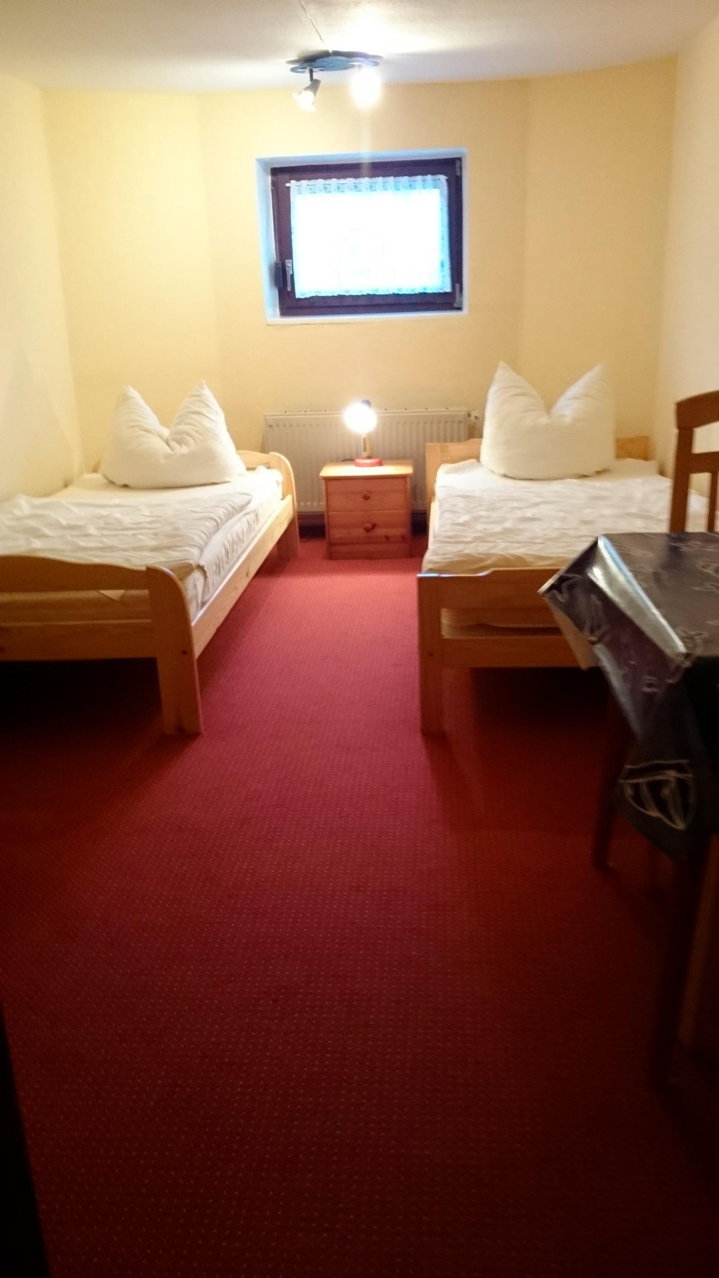 Ein Schlafraum mit 2 Einzelbetten und ein Schlafraum mit Doppelbett, ein Kinderbett ist vorhanden.