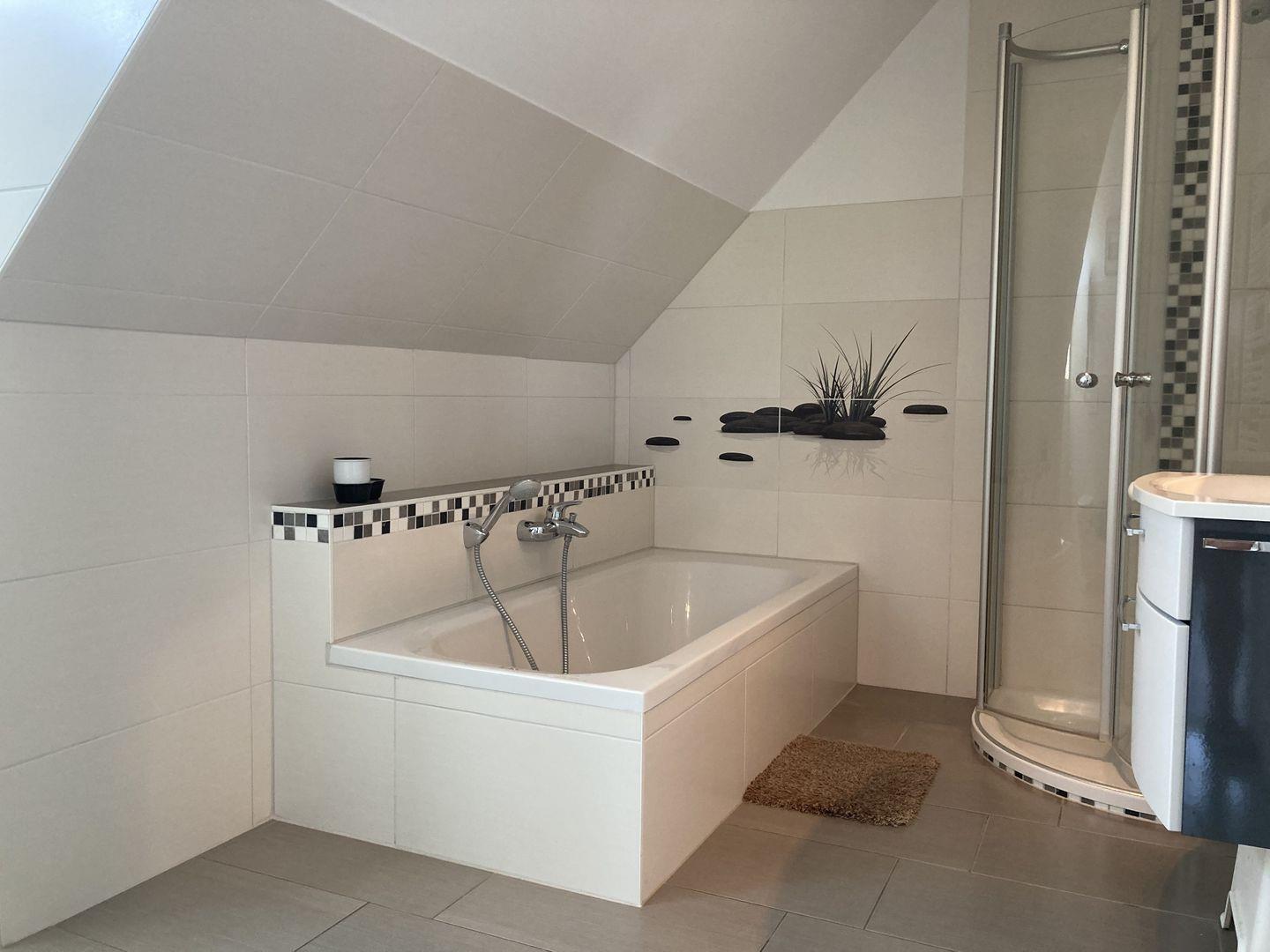 - Badezimmer mit Dusche, WC und Waschmaschine