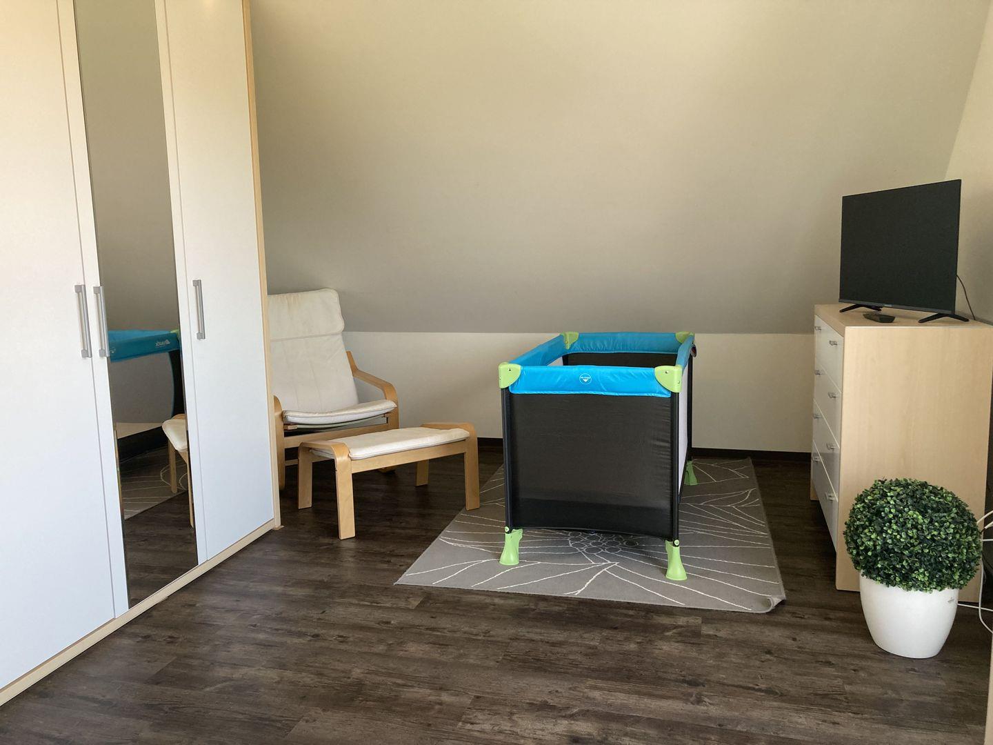 - direkter Zugang vom Wohnbereich zur möblierten Terrasse (Strandkorb, Sonnenschirm, Tisch und Stühle) und Garten