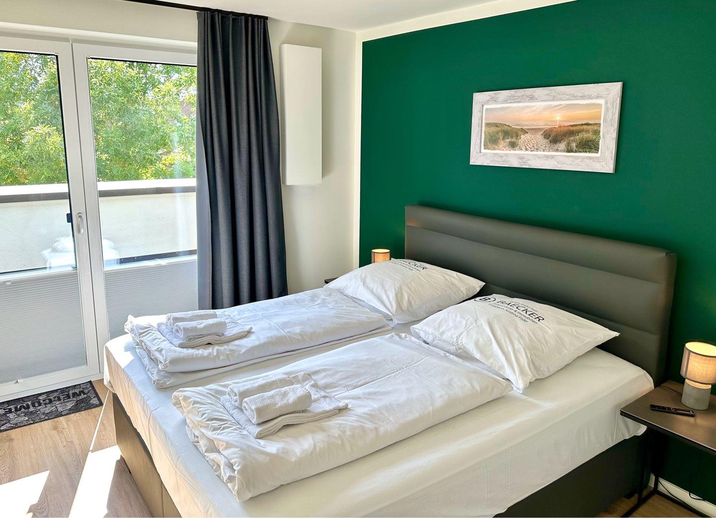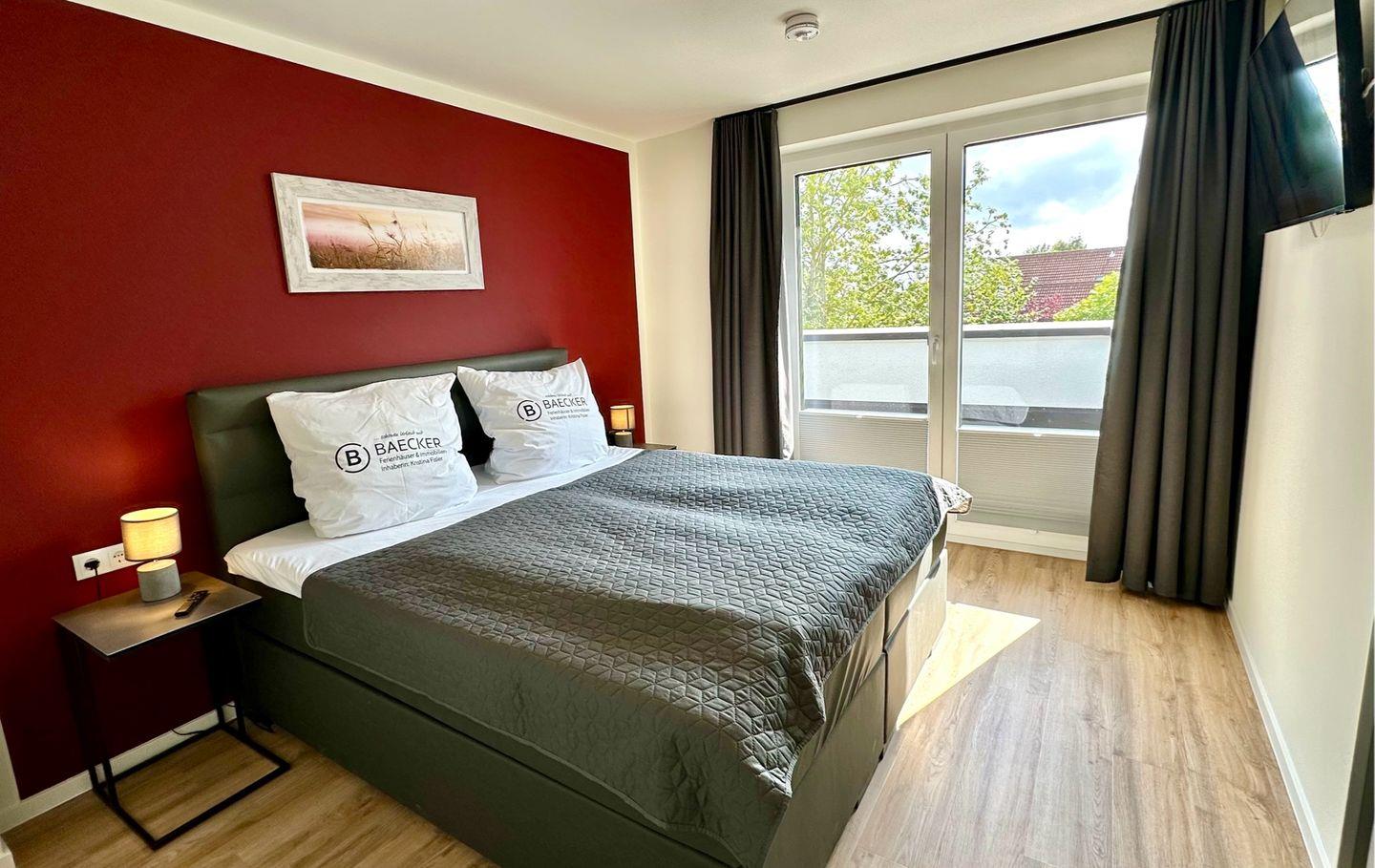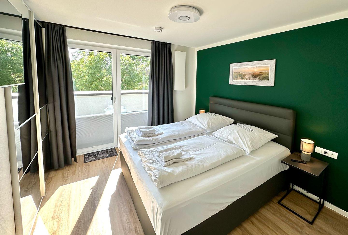 Die Schlafzimmer sind mit hochwertigen Boxspringbetten (180x200 cm) und zusätzlichen TV- Geräten eingerichtet. Verdunklungsplissees und Schals sorgen für die vollständige Verdunkelung der Schlafzimmer und somit für einen erholsamen Schlaf. Geräumige Kleiderschränke, mit ausreichend Stauraum, befinden sich in den Schlafräumen.