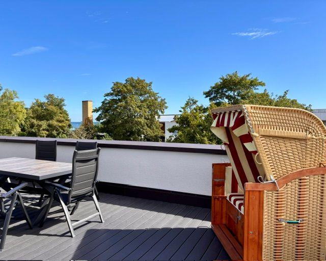 Es erwartet Sie ein hochwertig eingerichtetes und bestens ausgestattetes Penthouse mit bodentief verglasten Fensterflächen, die für lichtdurchflutete Räumlichkeiten sorgen, um in einem schönen Ambiente einen entspannten Ostseeurlaub zu verleben. Highlight ist die Sauna und die riesige Dachterrasse in Ost-Süd-Westausrichtung. Diese ist mit Gartenmöbeln ausgestattet und wird vom Frühstück in der Morgensonne bis zum Sundowner am Abend garantiert Ihr Lieblingsplatz sein.