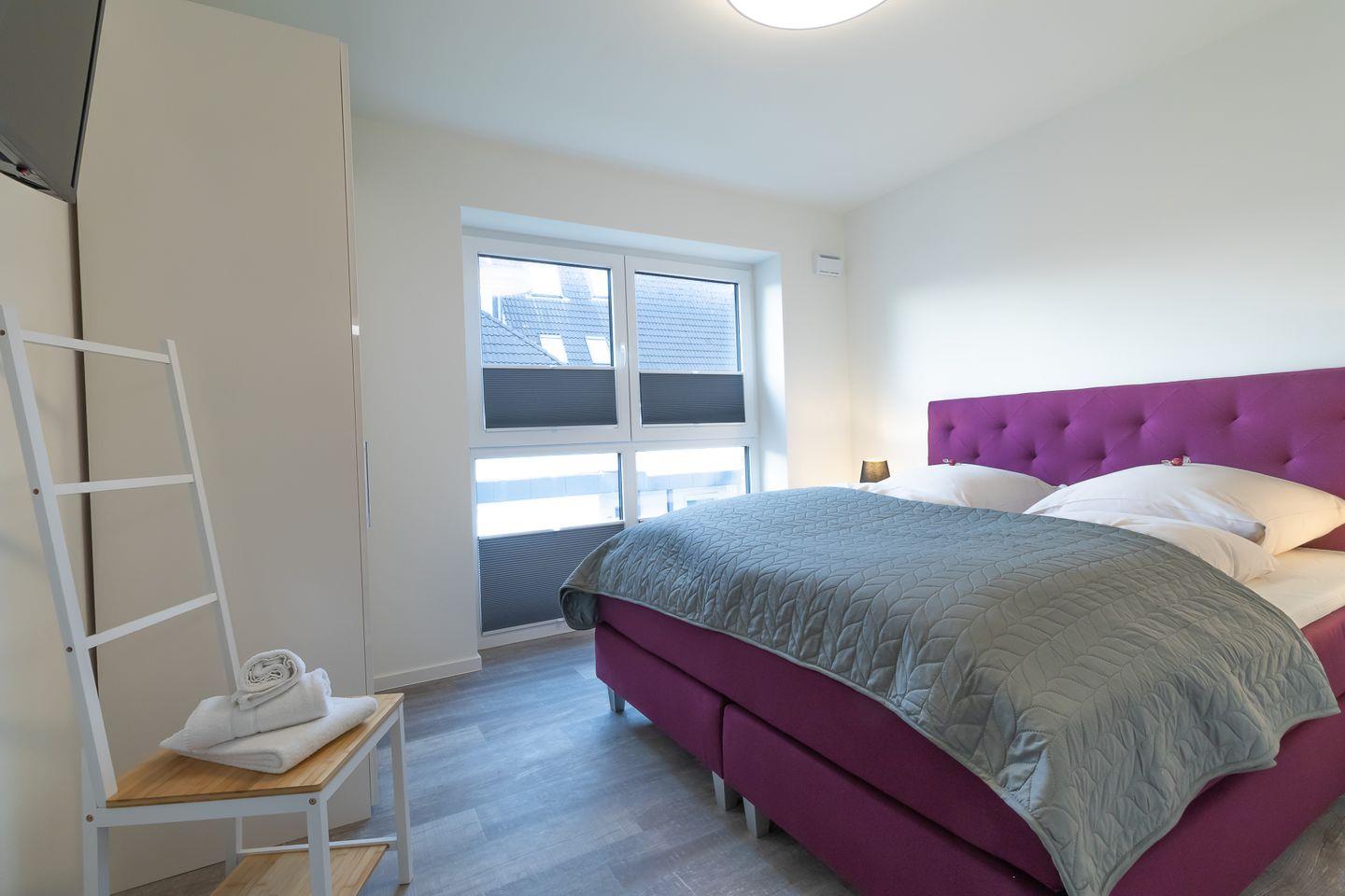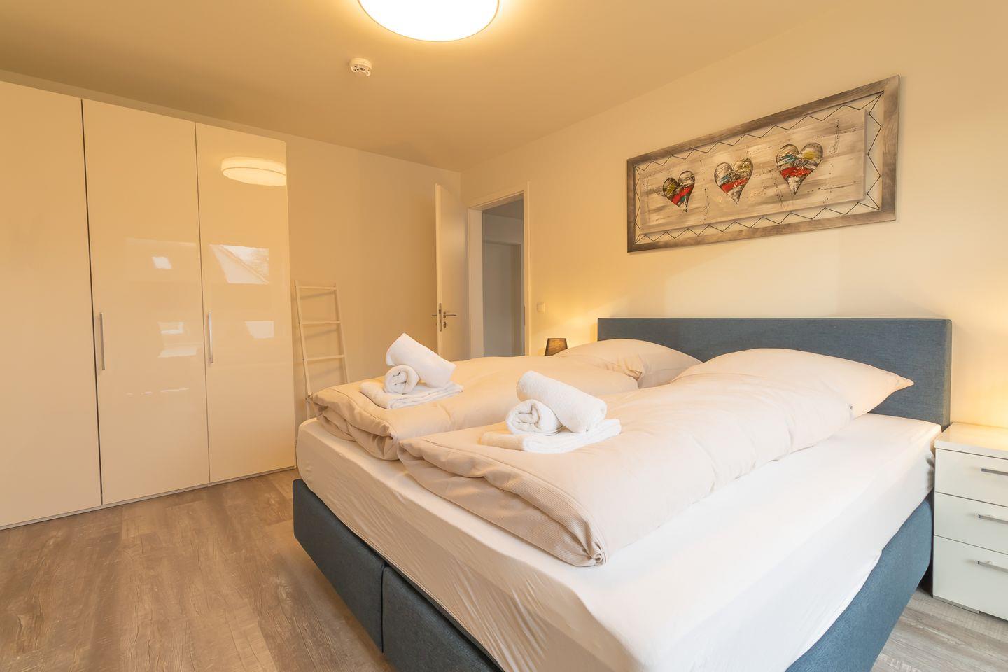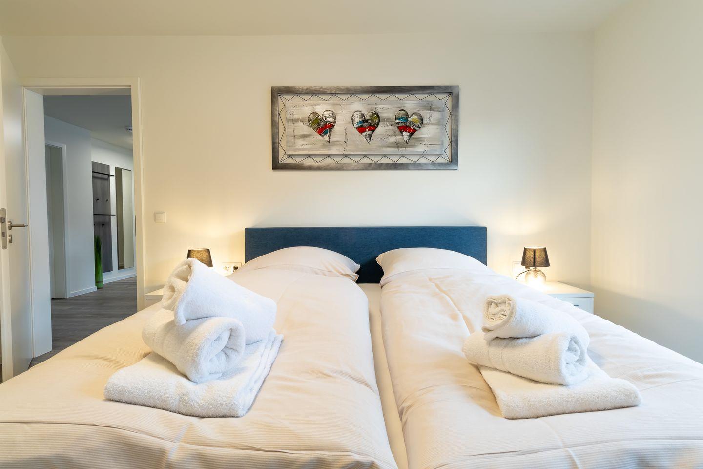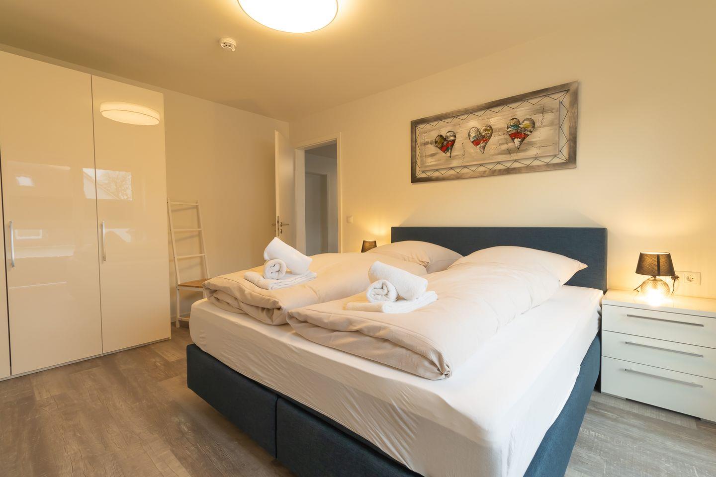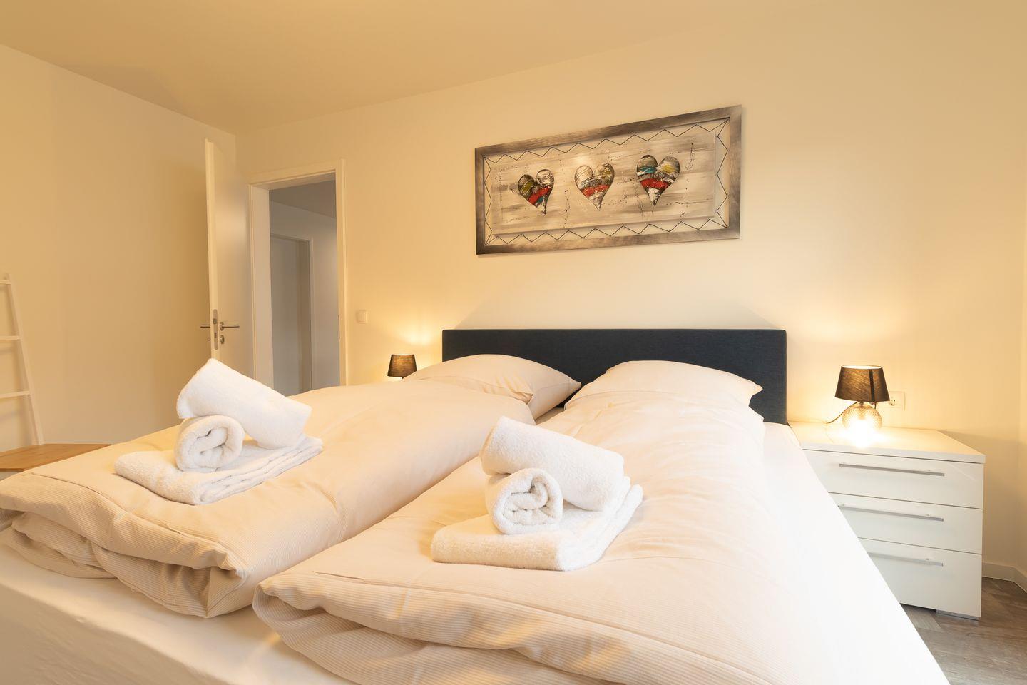 Zwei Schlafzimmer mit hochwertigen Boxspringbetten und eigenem TV sorgen für erholsame Nächte. Verdunkelungsplissees garantieren eine ruhige Schlafumgebung – perfekt für Paare, Freunde oder Familien.