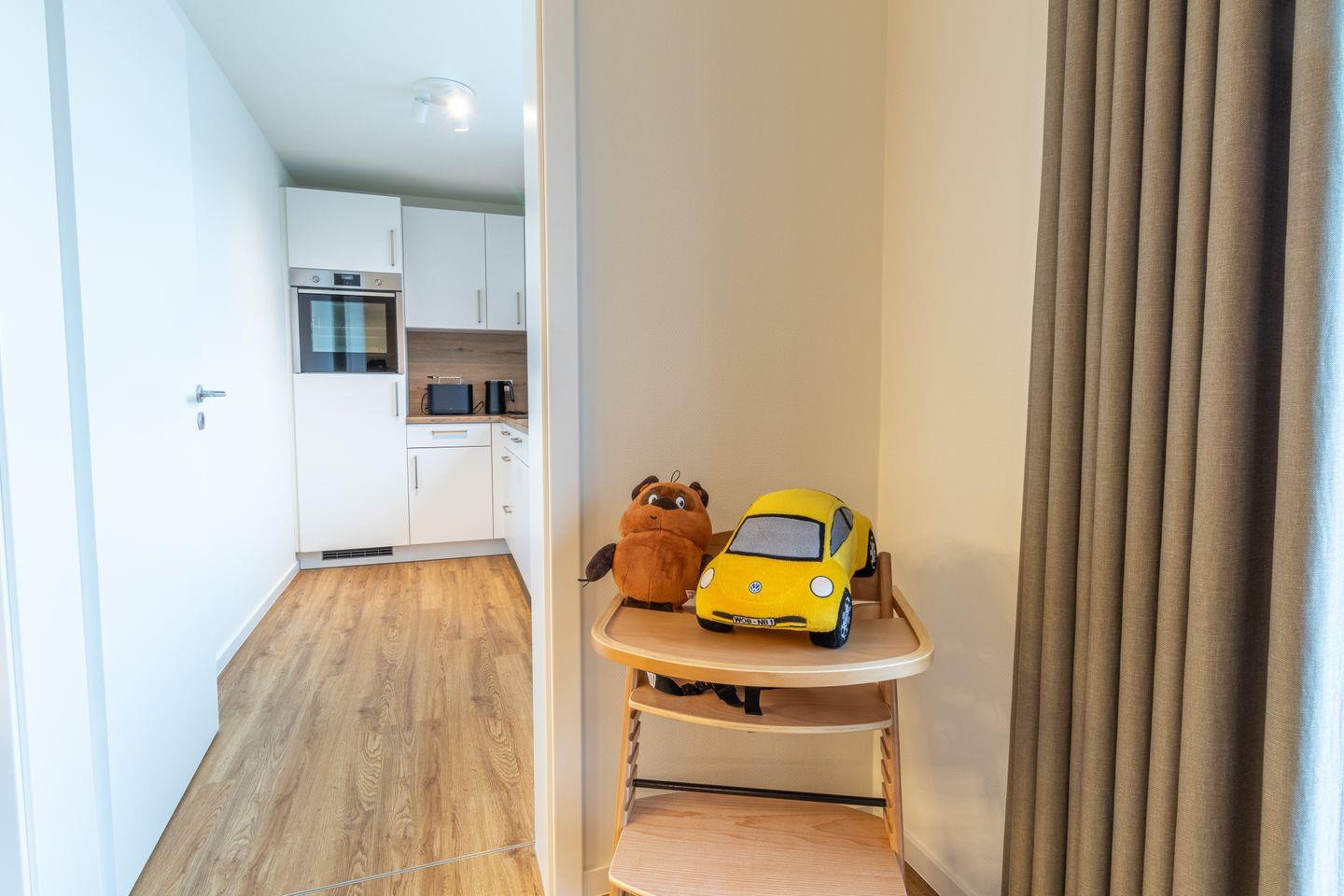Du reist mit Baby oder Kleinkind an. Ein Reisebett und ein Hochstuhl stehen bereit. Spiele und Bücher sorgen für Abwechslung. Die Wohnung eignet sich gut für den Urlaub mit Familie.