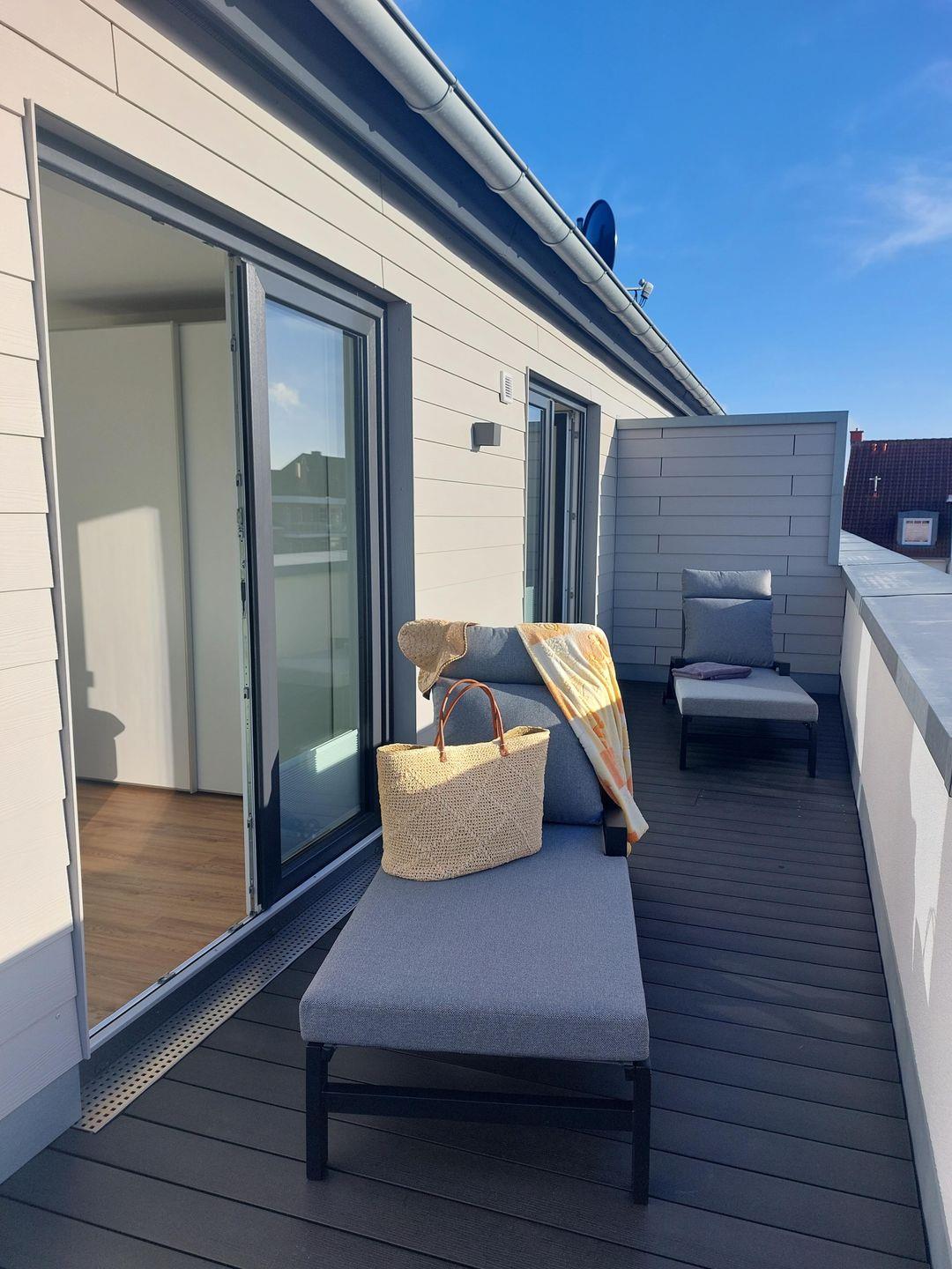 Willkommen im Herz von Kellenhusen 17. Du beziehst eine moderne Penthousewohnung mit viel Platz, klarer Gestaltung und hochwertiger Ausstattung. Die Wohnung liegt ruhig und zentral zugleich. Strand, Promenade und Seebrücke erreichst du bequem zu Fuß.