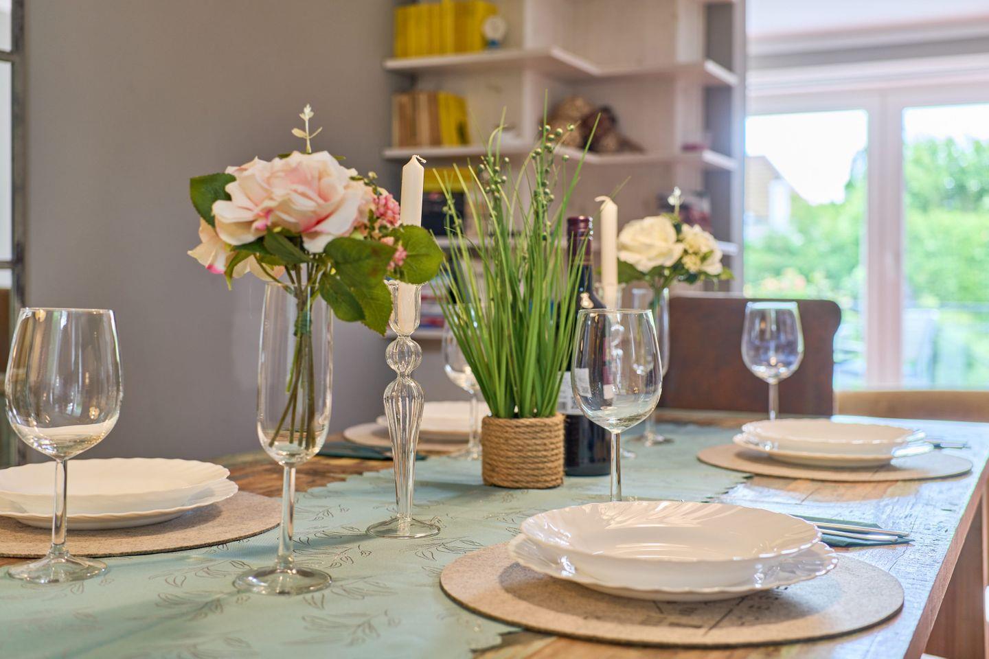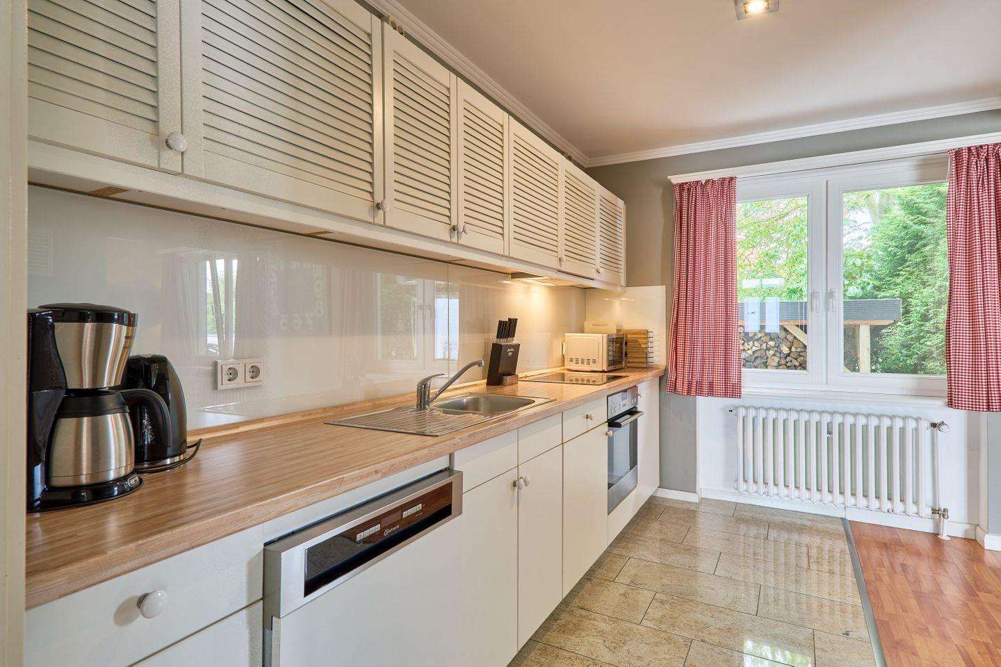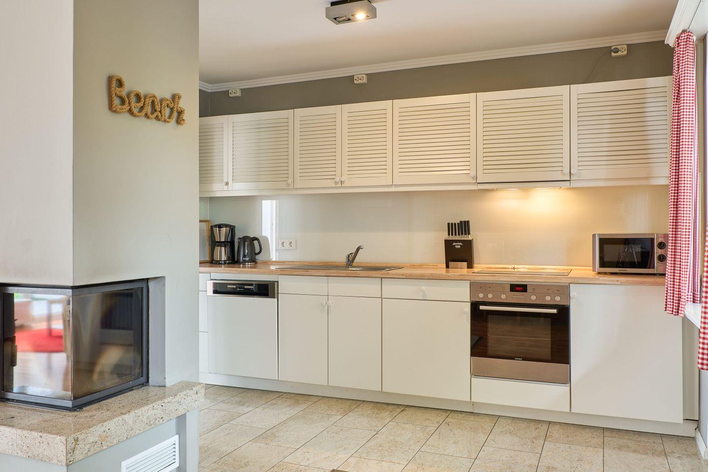 Die Küche ist mit hochwertigem Ceranherd, Backofen, Mikrowelle, Kühlschrank mit Gefrierfach, Spülmaschine, Kaffeemaschine sowie allen notwendigen Küchenutensilien ausgestattet. Hier können Sie Ihre Lieblingsgerichte zubereiten und am Esstisch mit der Familie oder Freunden genießen. Zum Entspannen steht Ihnen ein gemütliches Sofa zur Verfügung, auf dem Sie sich nach einem aufregenden Tag zurücklehnen können. Ein TV sorgt zudem für Unterhaltung in den entspannenden Abendstunden.