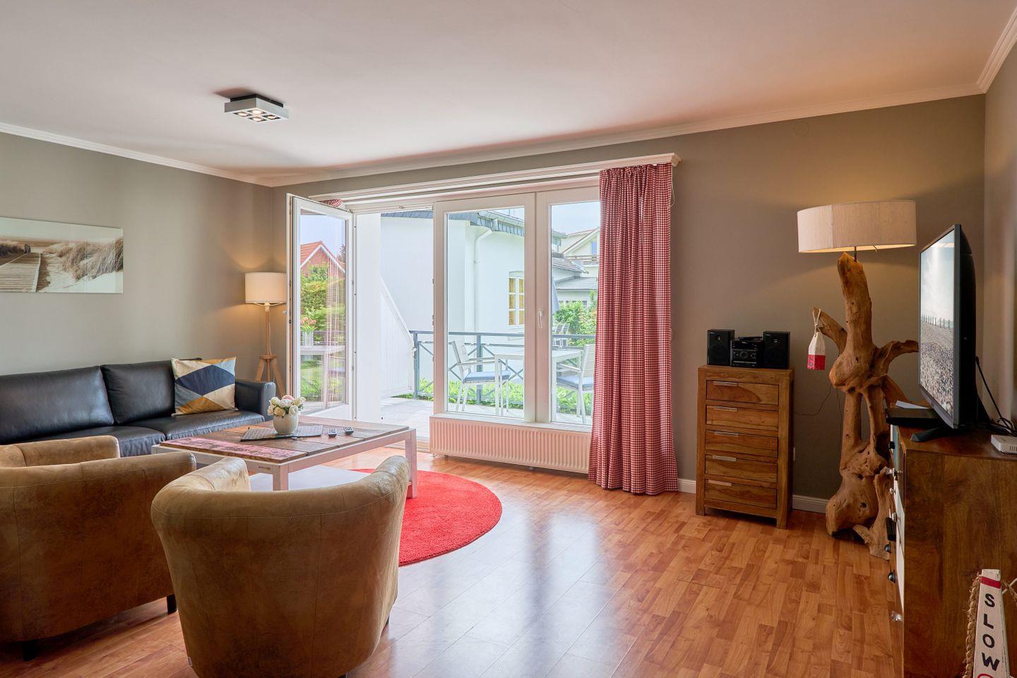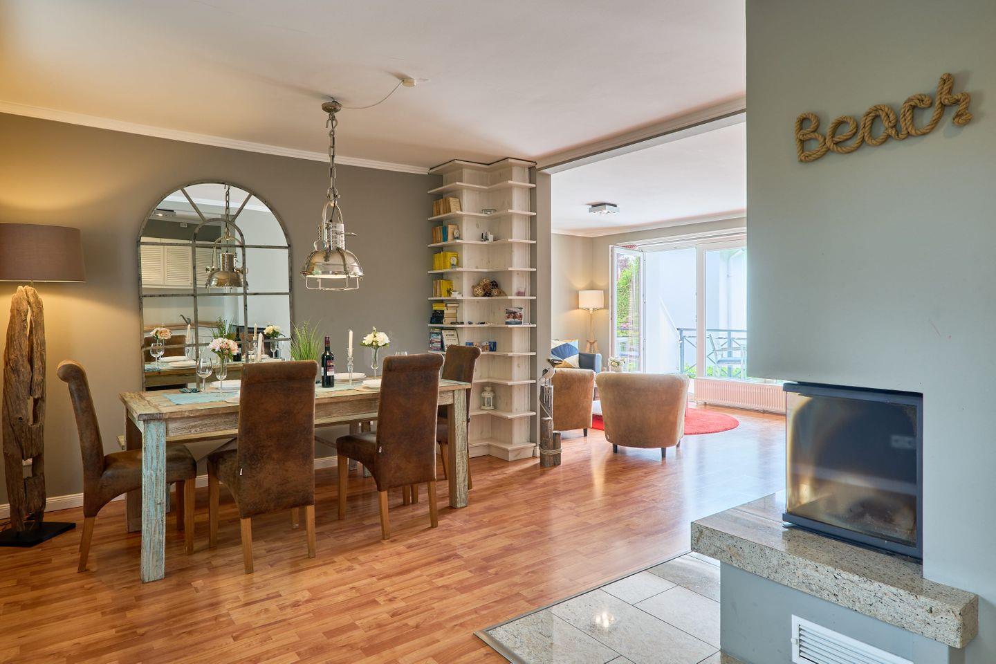 Bei schönem Wetter werden Sie sicherlich die Vorzüge des Balkons zu schätzen wissen. Genießen Sie die frische Ostseebrise und die Aussicht auf die Umgebung. Kühlen Sie Ihre Getränke im Kühlschrank und verbringen Sie unvergessliche Stunden im Freien. Für zusätzliche Gemütlichkeit sorgt der Kamin, der eine wohlige Wärme verbreitet und besonders an kühlen Abenden einladend ist.