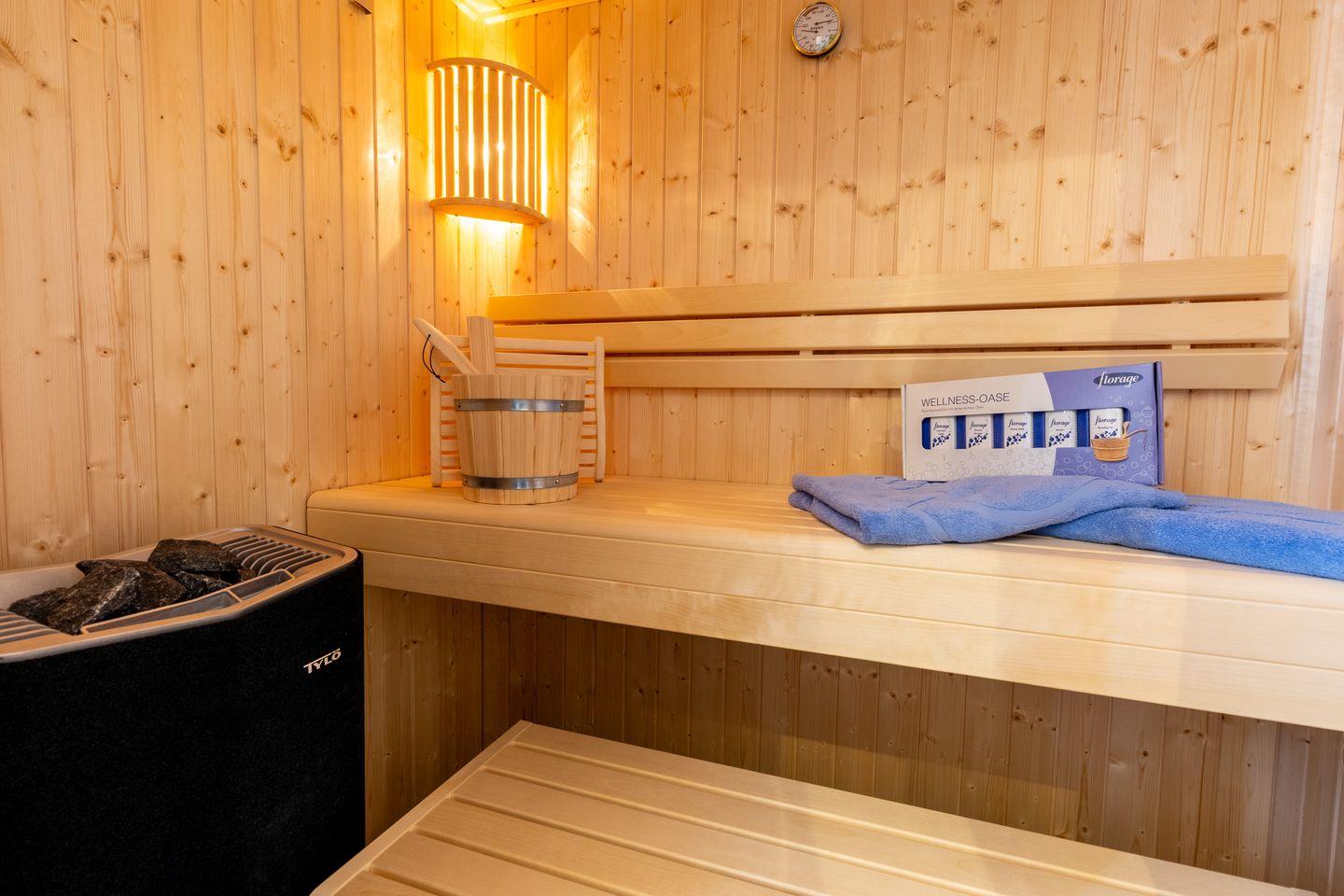 Nach einem Strandtag oder einem Ausflug ins Grüne wartet deine eigene Sauna auf dich – für ganz private Wellnessmomente. Ergänzt wird der Komfort durch eine moderne Ausstattung und ein durchdachtes Raumkonzept.