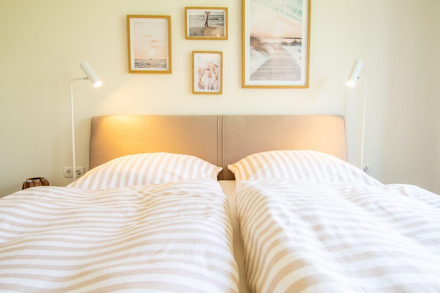 Zwei separate Schlafzimmer mit hochwertigen Betten sorgen für erholsamen Schlaf – ideal für Paare, Familien oder kleine Gruppen. Freu dich auf deine wohlverdiente Auszeit an der Ostsee.