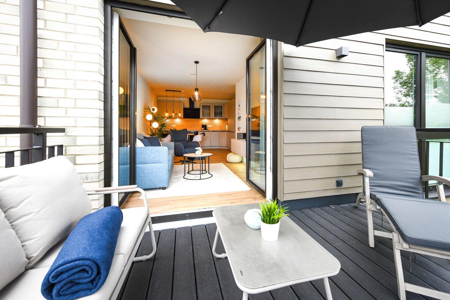 Dock 8 – Balkon. Sauna. Strandnah. Komfort für die ganze Familie.