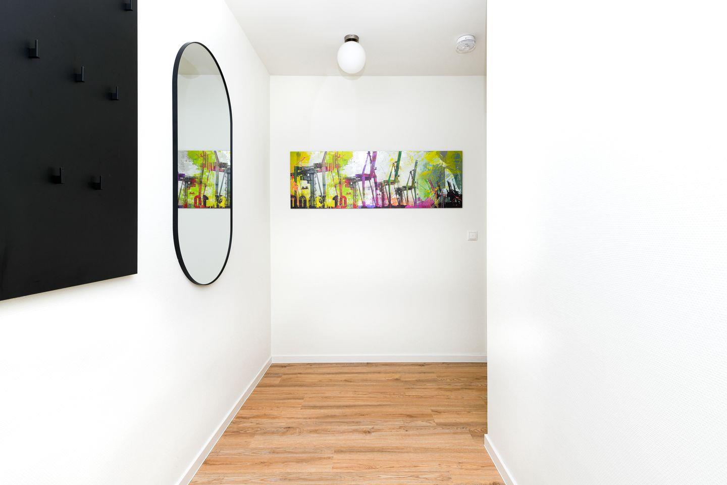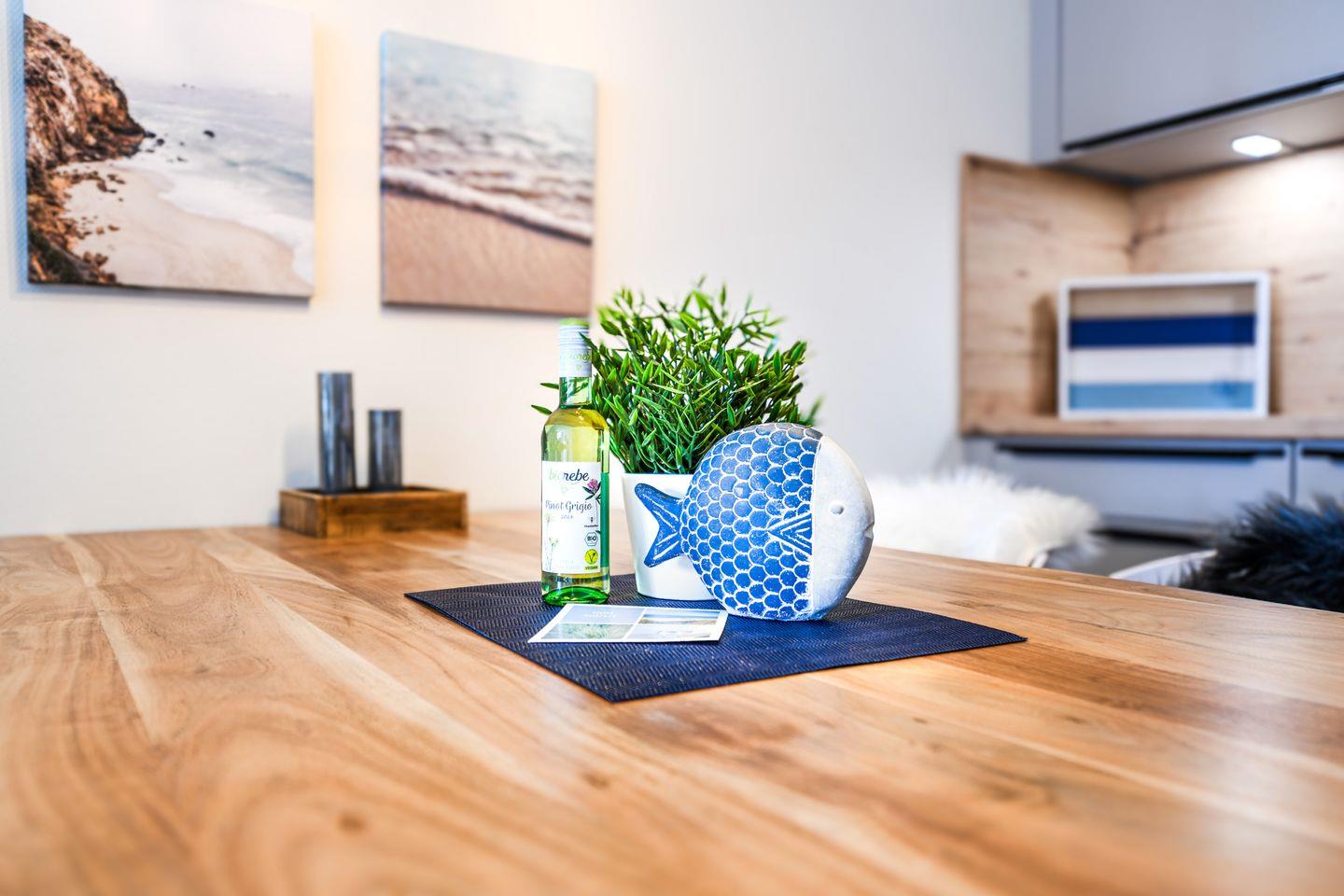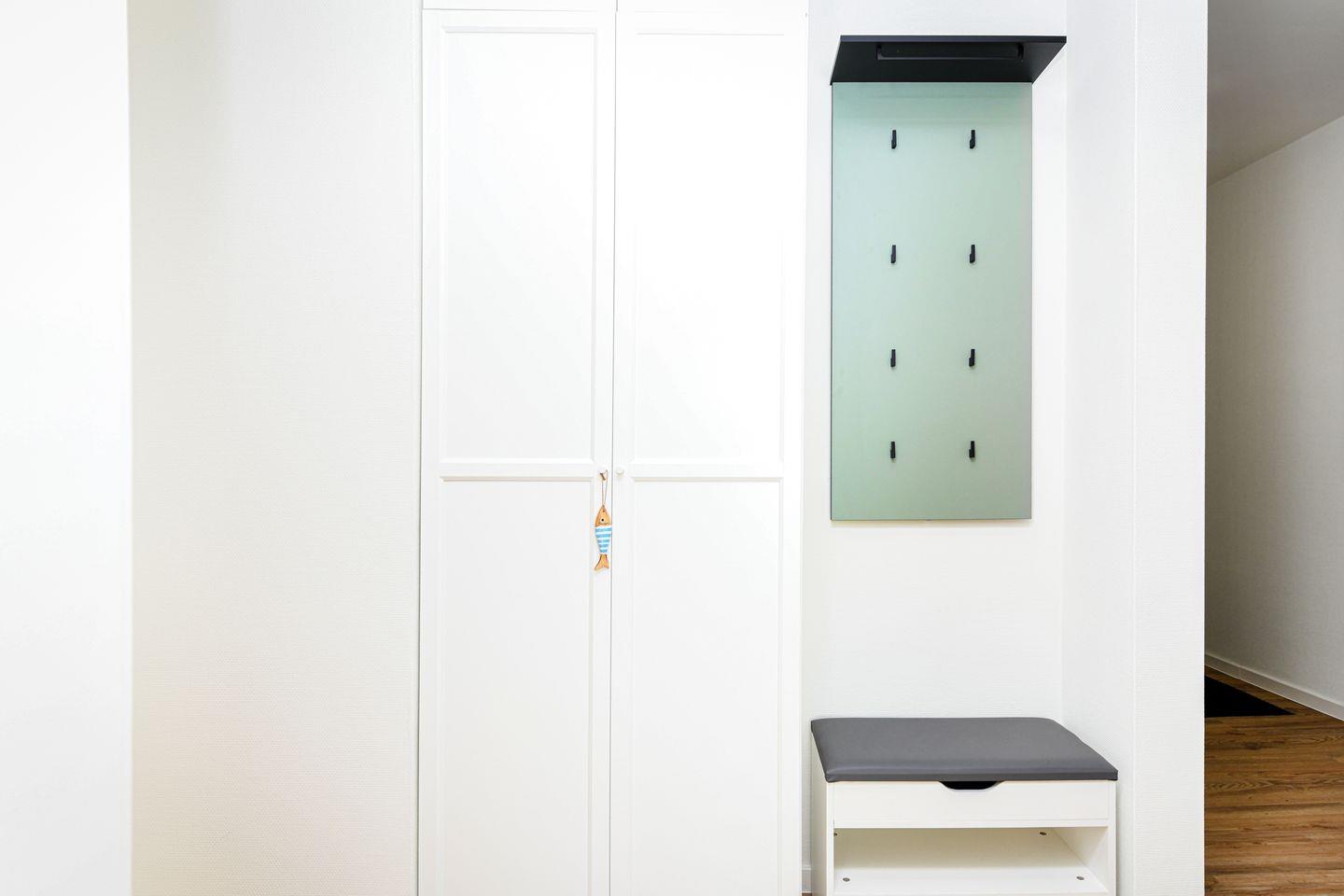 Zur Wohnung gehört ein Tiefgaragenstellplatz (Durchfahrtshöhe 2,15 m). Vor dem Haus findest du eine E-Ladestation für dein Elektroauto. Fahrräder und Sportausrüstung haben Platz im abschließbaren Fahrradraum. Der kontaktlose Check-in über Schlüsseltresor sorgt für maximale Flexibilität bei der Anreise. Ein praktischer Abstellraum liegt direkt neben der Wohnung – ideal für Rollator, Kinderwagen oder Strandutensilien. Zusätzlich steht dir in der Wohnung ein Waschtrockner zur Verfügung.