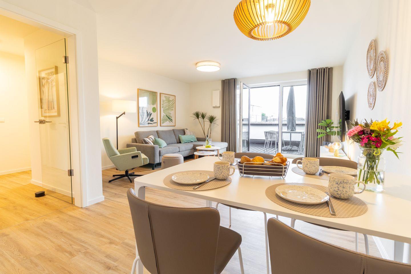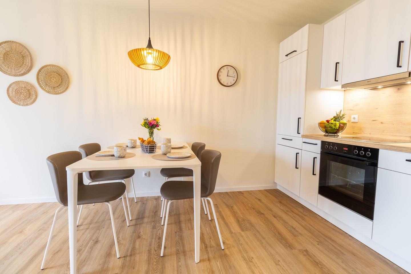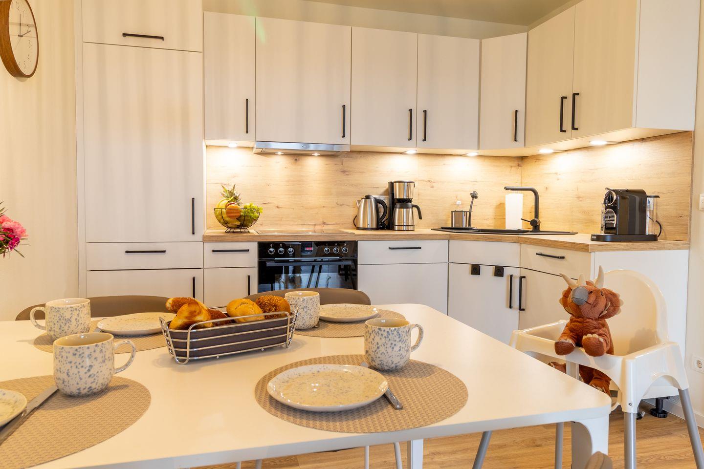 Der lichtdurchflutete Wohnbereich mit 65-Zoll-Smart-TV ist dein gemütlicher Mittelpunkt – offen, modern und mit direktem Zugang zur rund 26?m² großen Dachterrasse. Hier genießt du Sonne, Meerluft und Entspannung im eigenen Strandkorb. Zusätzlich lädt eine windgeschützte Nische mit Tisch zur Kaffeepause am Morgen ein. Die offene Küche ist hochwertig ausgestattet – ideal für genussvolle Mahlzeiten und gesellige Abende. Für wohlige Wärme sorgt eine Fußbodenheizung, die Lüftungsanlage mit Wärmerückgewinnung garantiert ein angenehmes Raumklima.