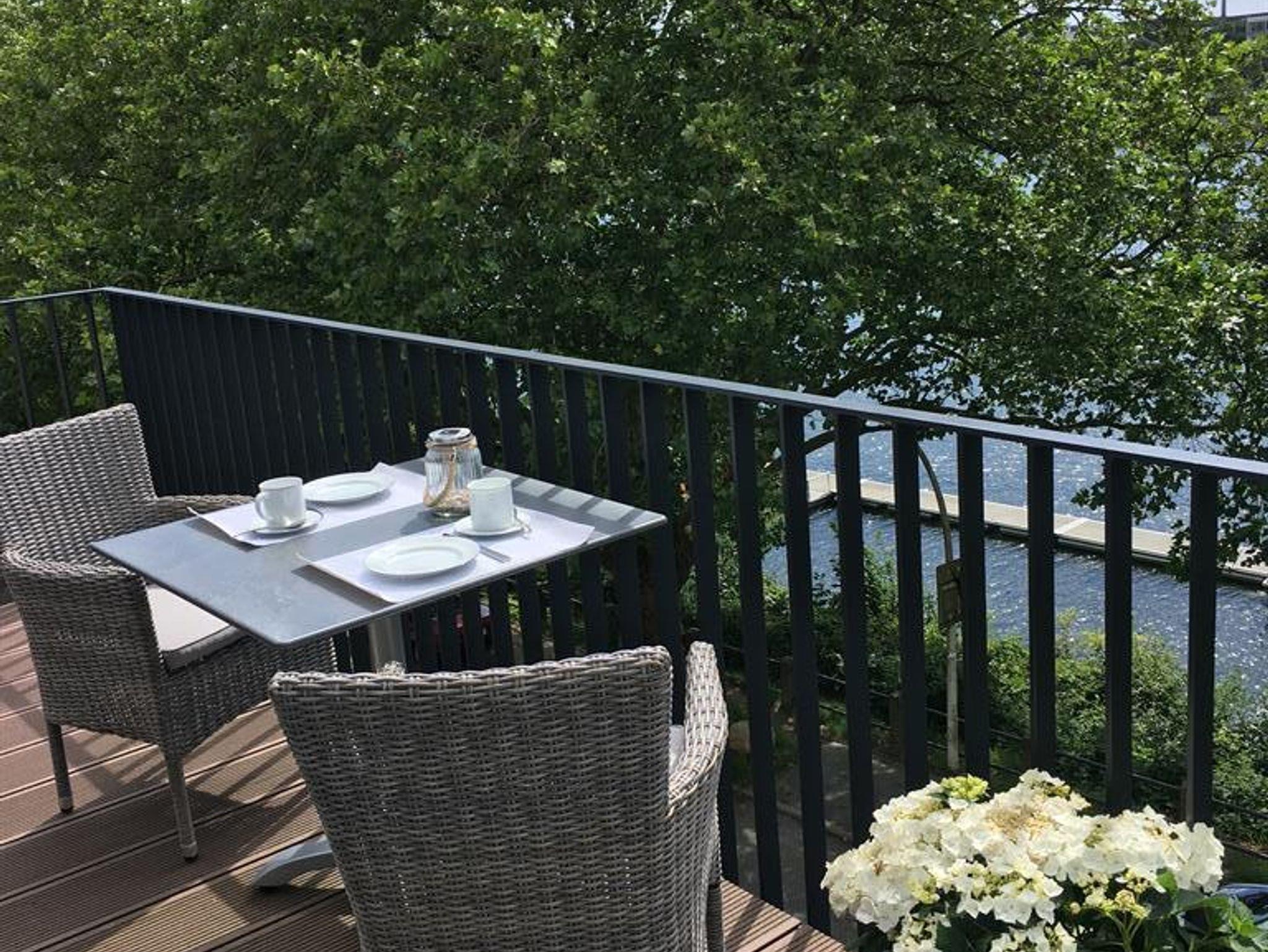 Dieser liegt in Süd/Westausrichtung und hat direkten Blick auf den Nord-Ostsee-Kanal. Hier können Sie ihr Frühstück mit Blick auf die weltweit meist befahrene künstliche Wasserstraße für Seeschiffe genießen.