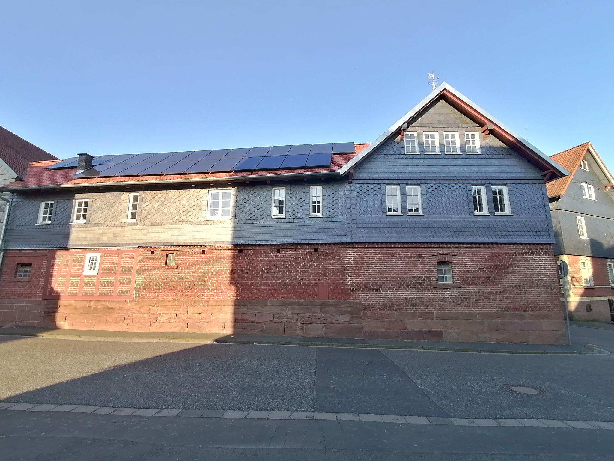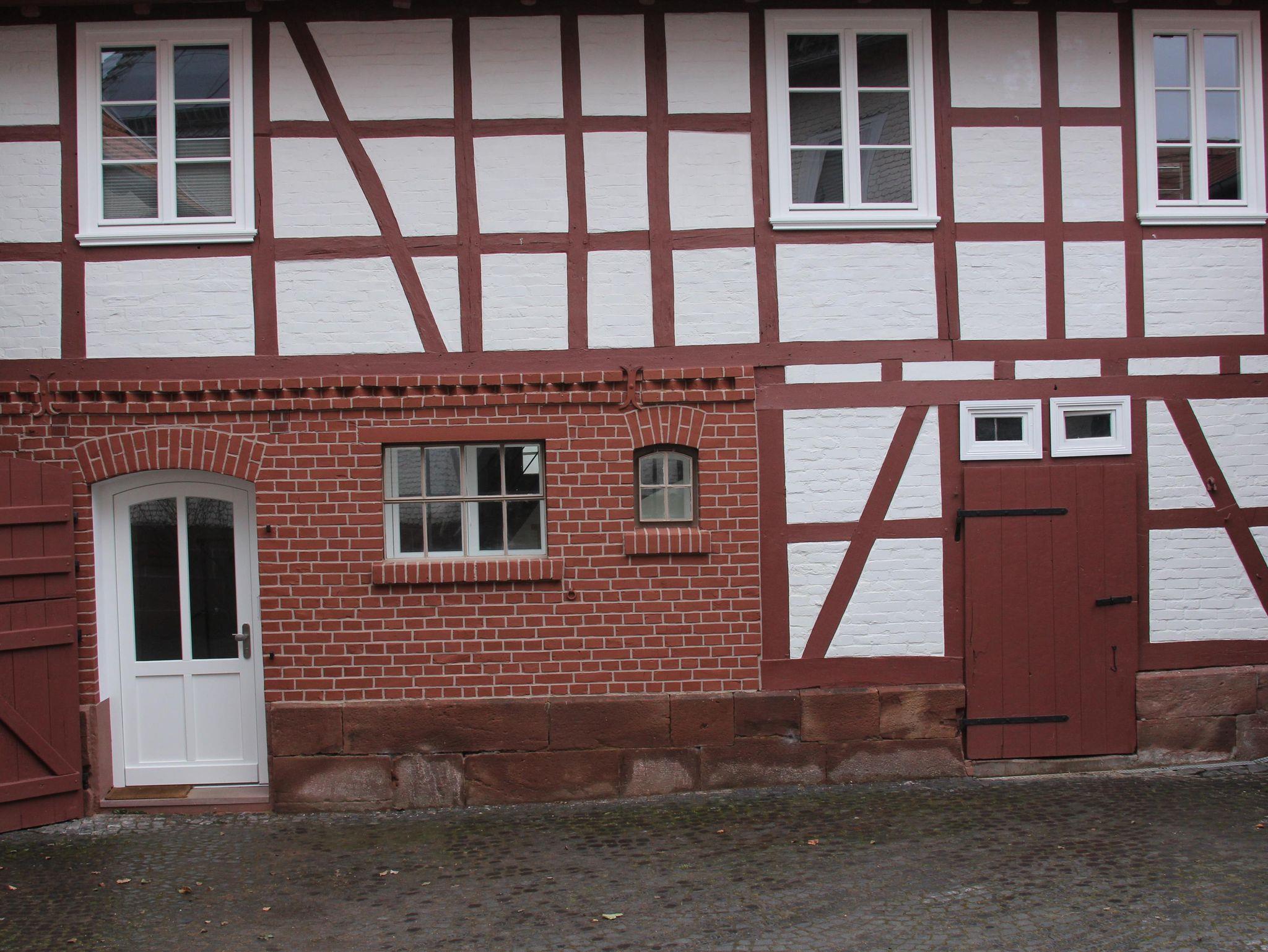 Denkmalgeschützter Vierseitenhof von 1860 mitten in Großseelheim, 2 Ferienwohnungen (65 bzw. 55 qm) mit jeweils einer Galerie (60 bzw. 40 qm), die über den ehemaligen Stallungen neu gebaut und 2023 vollendet wurden. Die Stallungen wurden zu Eingangsbereichen und einem Technikraum umgebaut. Die Beheizung erfolgt über eine Wärmepumpe mit Fussbodenheizung und Photovoltaik.