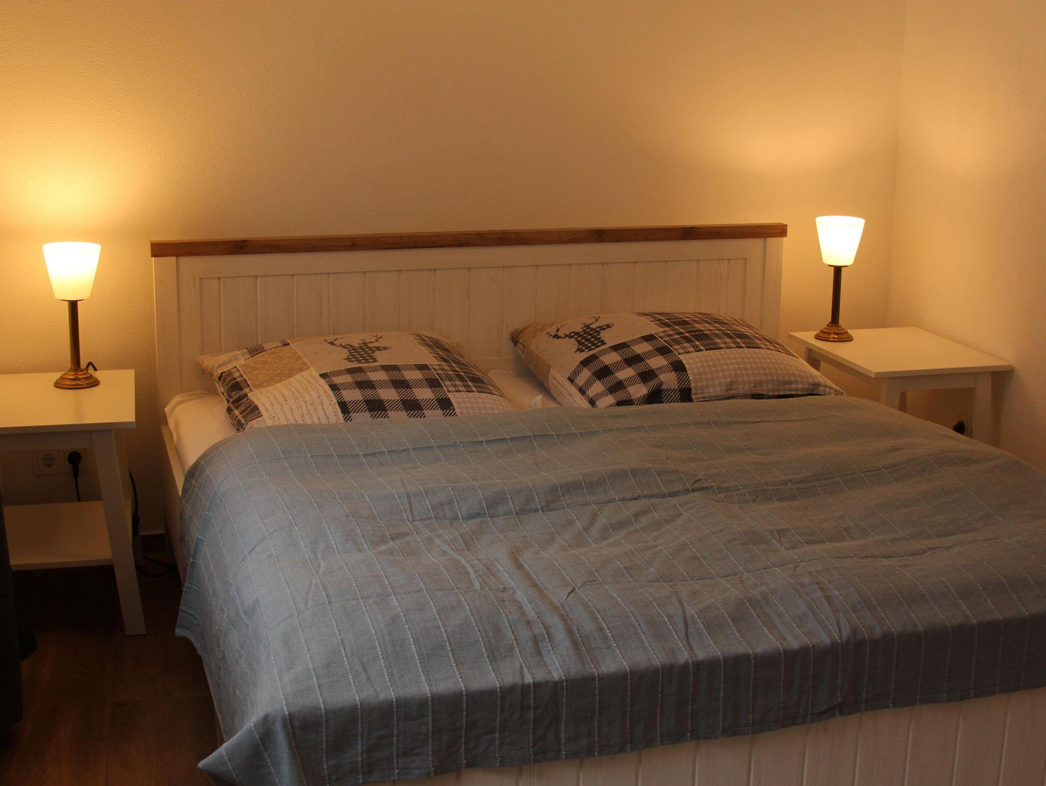 65 qm Wohnfläche mit 60 qm Galerie. Moderne Elektrik mit W-LAN und neuen modernen Bädern(Föhn inklus.) mit barrierefreier Dusche und WC, 1 Schlafzimmer mit Doppelbett 180x200 cm, 1 Wohnzimmer mit Flachbildschirm und Sitzecke, 1 komplett eingerichtete Küche mit Spülmaschine, Backofen, Induktionsfeld, Kühlschrank mit Gefriereinheit, Mikrowelle, Kaffeevollautomat, Toaster, Wasserkocher etc. In der Galerie befinden sich 2 weitere Einzelbetten (jeweils 90x190 cm) und eine Sitzecke mit weiterem Flachbildschirm. Alle Räume haben Tageslicht.