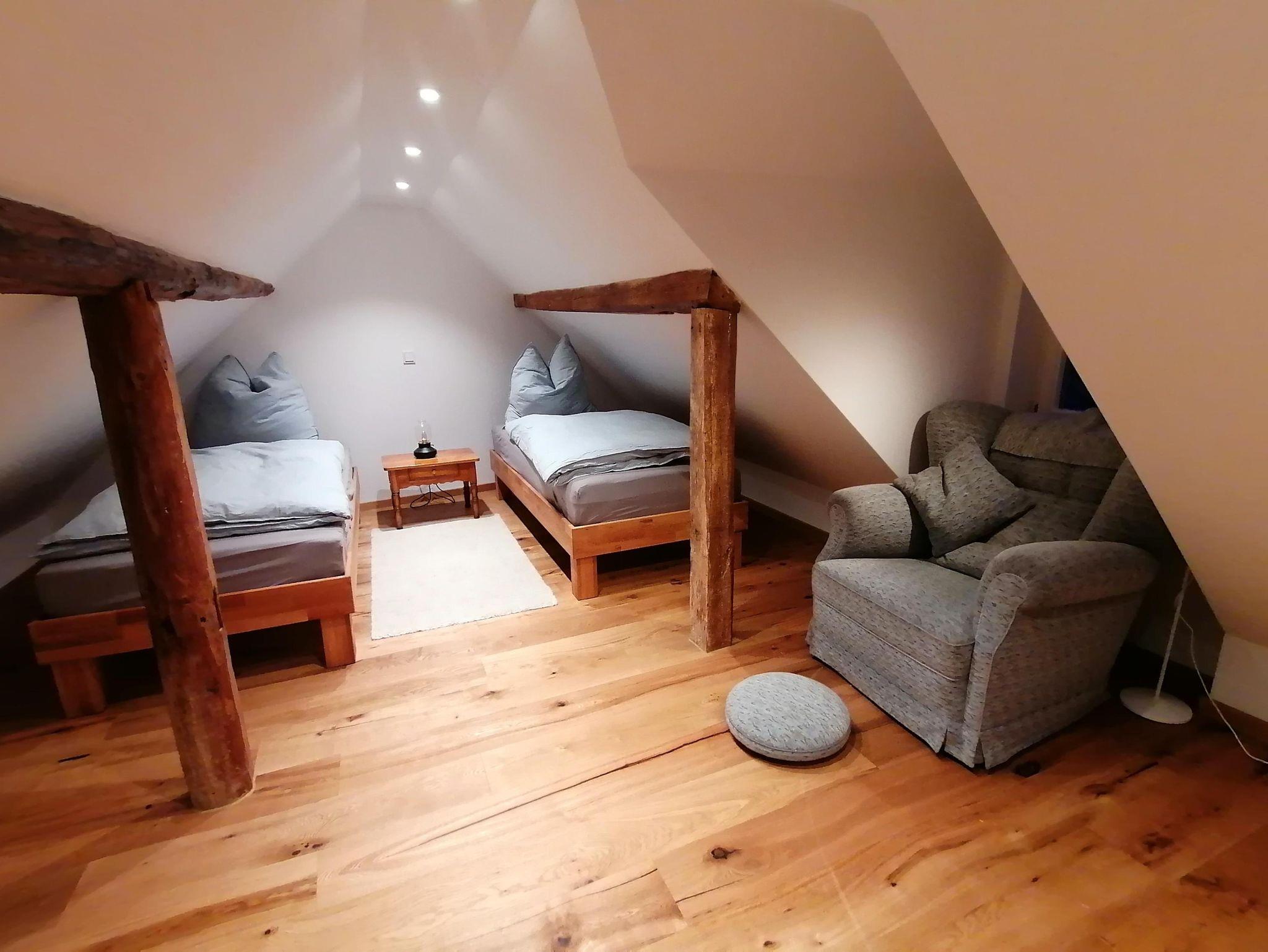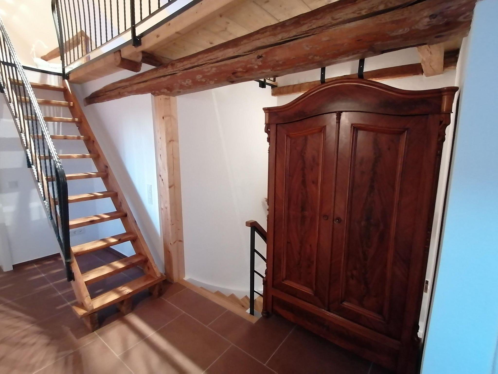 Denkmalgeschützter Vierseitenhof von 1860 mitten in Großseelheim, 2 Ferienwohnungen (65 bzw. 55 qm) mit jeweils einer Galerie (60 bzw. 40 qm), die über den ehemaligen Stallungen neu gebaut und 2023 vollendet wurden. Die Stallungen wurden zu Eingangsbereichen und einem Technikraum umgebaut. Die Beheizung erfolgt über eine Wärmepumpe mit Fussbodenheizung und Photovoltaik.