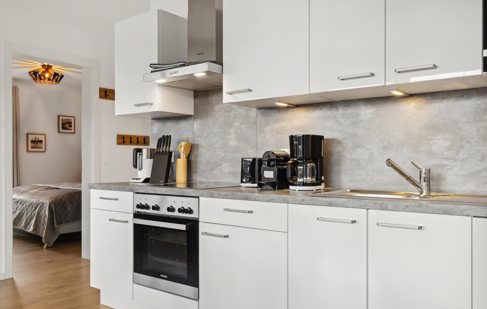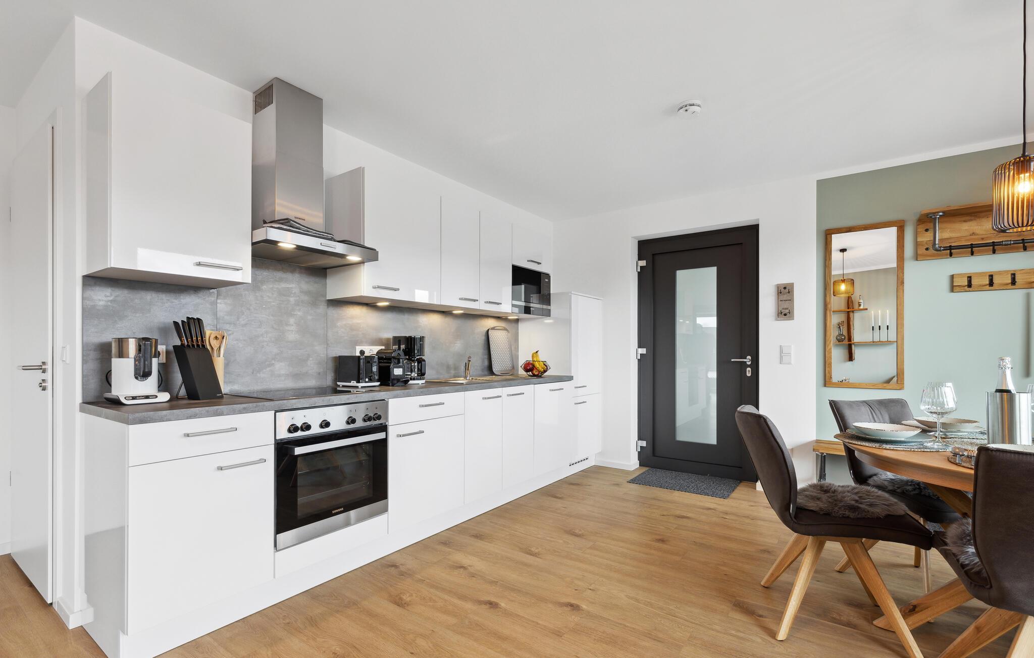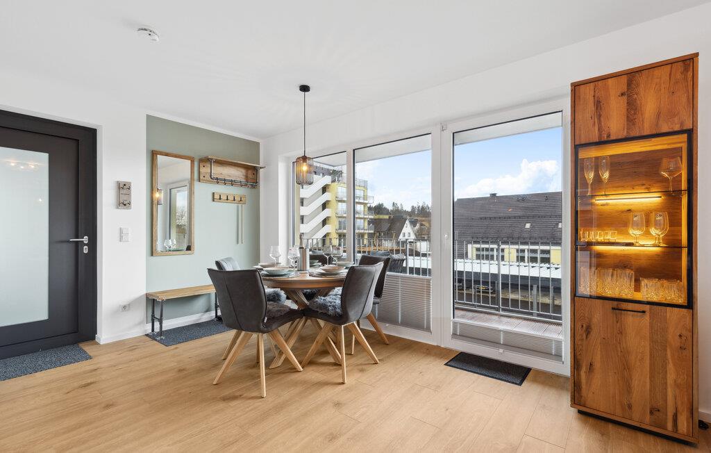 Freuen Sie sich auf einen entspannten und abwechslungsreichen Urlaub in dieser Ferienwohnung in Winterberg nahe herrlicher Natur, hier kommen Mountainbiker und Wintersportfans gleichermaßen auf ihre Kosten. Zu der gehobenen Ausstattung des Apartments gehört ein offener Wohnbereich mit integrierter Küche inklusiver hochwertiger Geräte, beginnen Sie den Tag mit einem leckeren Kaffee aus der Nespresso Kapselmaschine. Die Ferienwohnung bietet viel Platz für gemeinsame Aktivitäten, egal, ob Sie gemeinsam kochen, einen Spieleabend veranstalten, oder auf den Sofas gemütlich plaudern. Das leise Knistern des Kaminofens sorgt dabei für eine besonders behagliche Stimmung. Die geschmackvolle Einrichtung bietet ideale Bedingungen, um hier in stilvollem Ambiente eine tolle gemeinsame Zeit zu verbringen. Ein weiteres Highlight ist das Duschbad, welches neben allem Nützlichen auch eine bodengleiche Dusche und eine Infrarotkabine zum Entspannen bietet. Genießen Sie auf der Terrasse schöne Stunden im Freien.